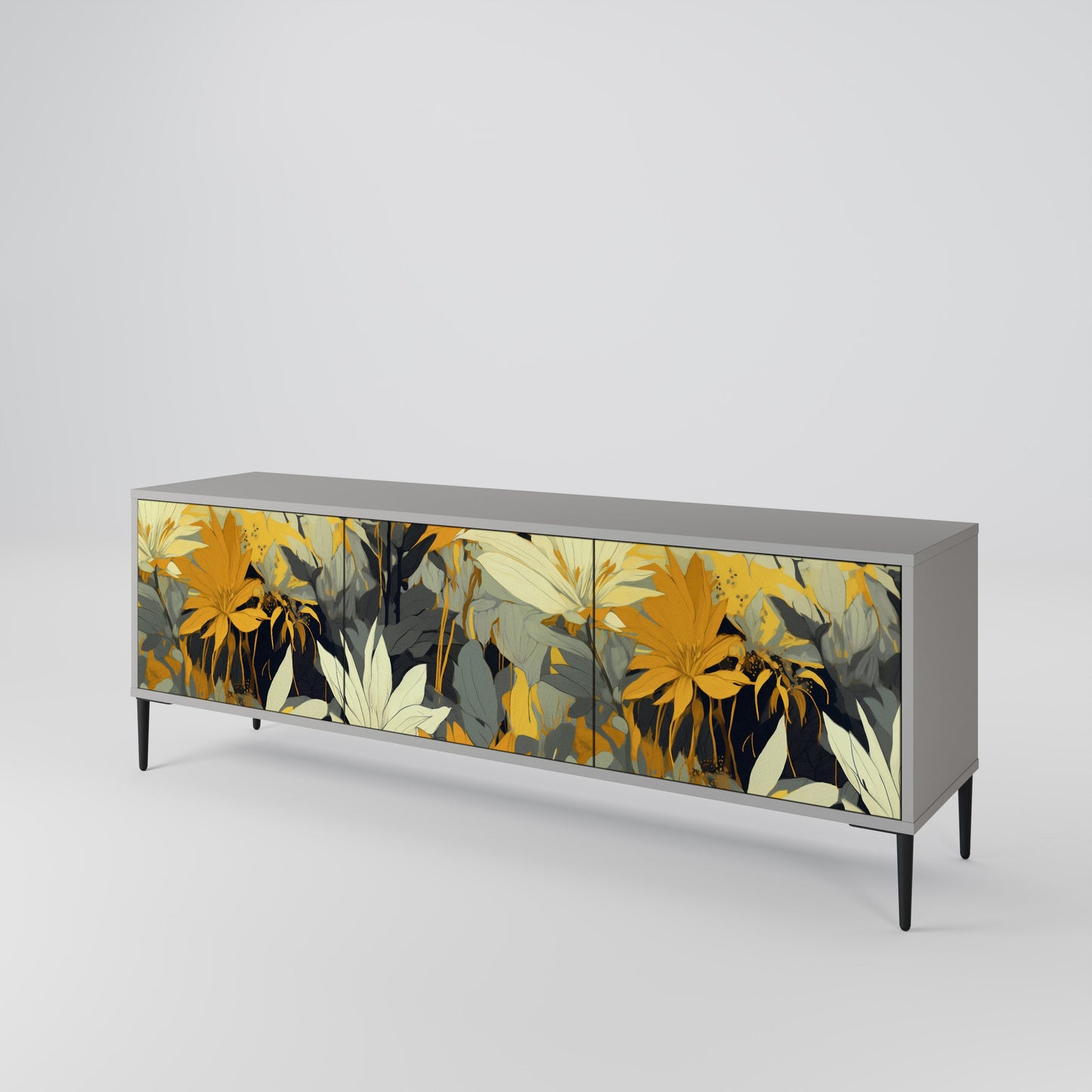 The grey body of the stand creates a refined, modern accent that pairs beautifully with industrial and minimalist arrangements. The fronts with a designer print add character and uniqueness, making this piece not only practical but also a standout decorative element.