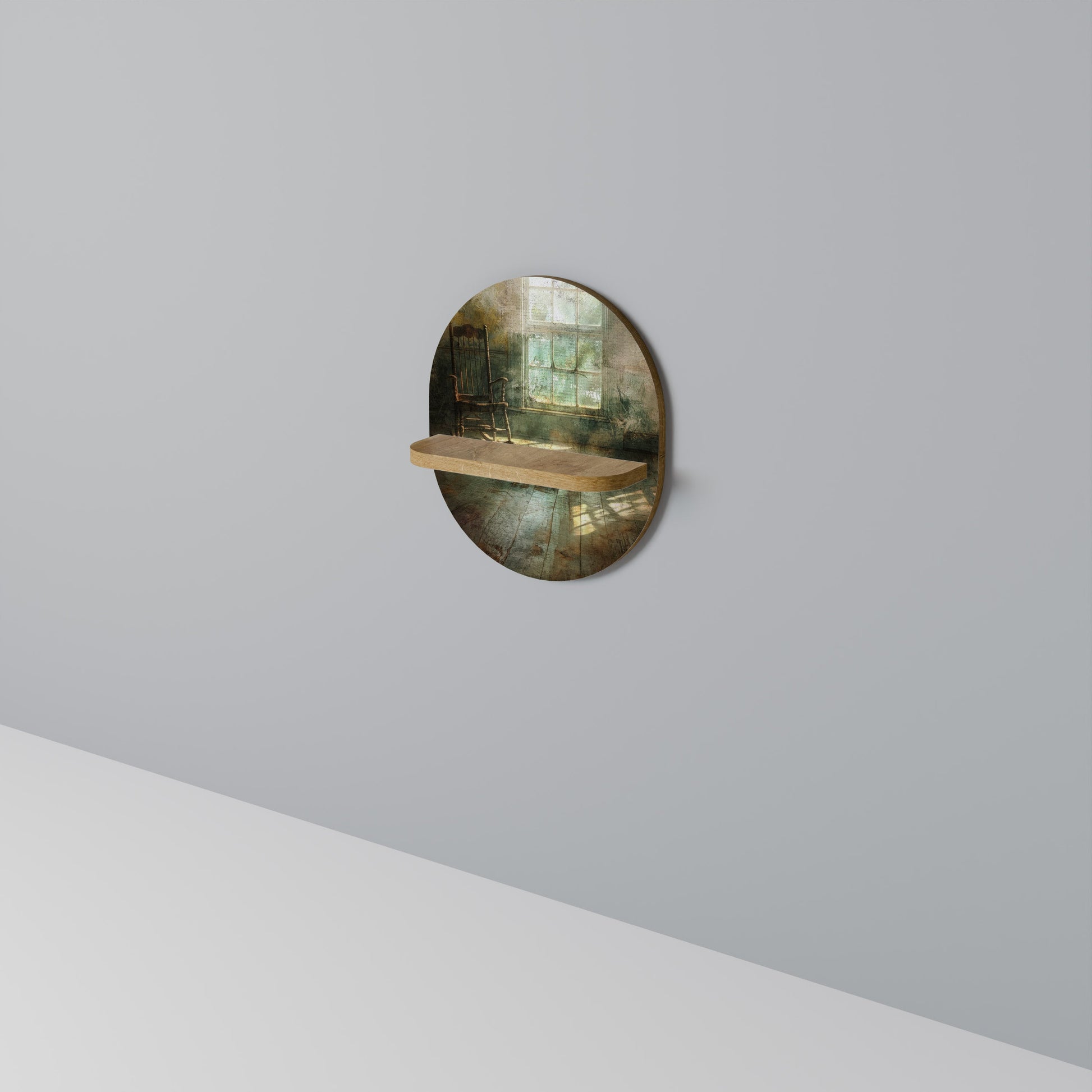 SUNLIT STILLNESS Oval Art Shelf In Oak Effect