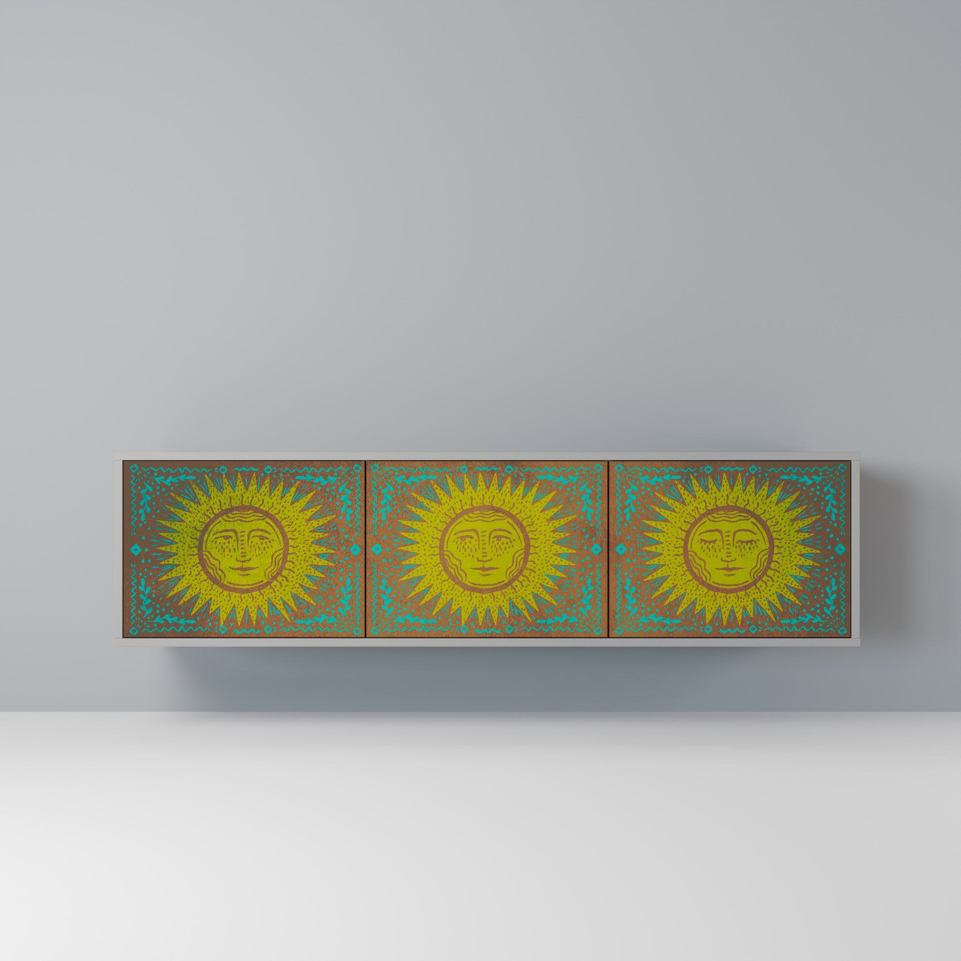The grey body of the stand creates a refined, modern accent that pairs beautifully with industrial and minimalist arrangements. The fronts with a designer print add character and uniqueness, making this piece not only practical but also a standout decorative element.