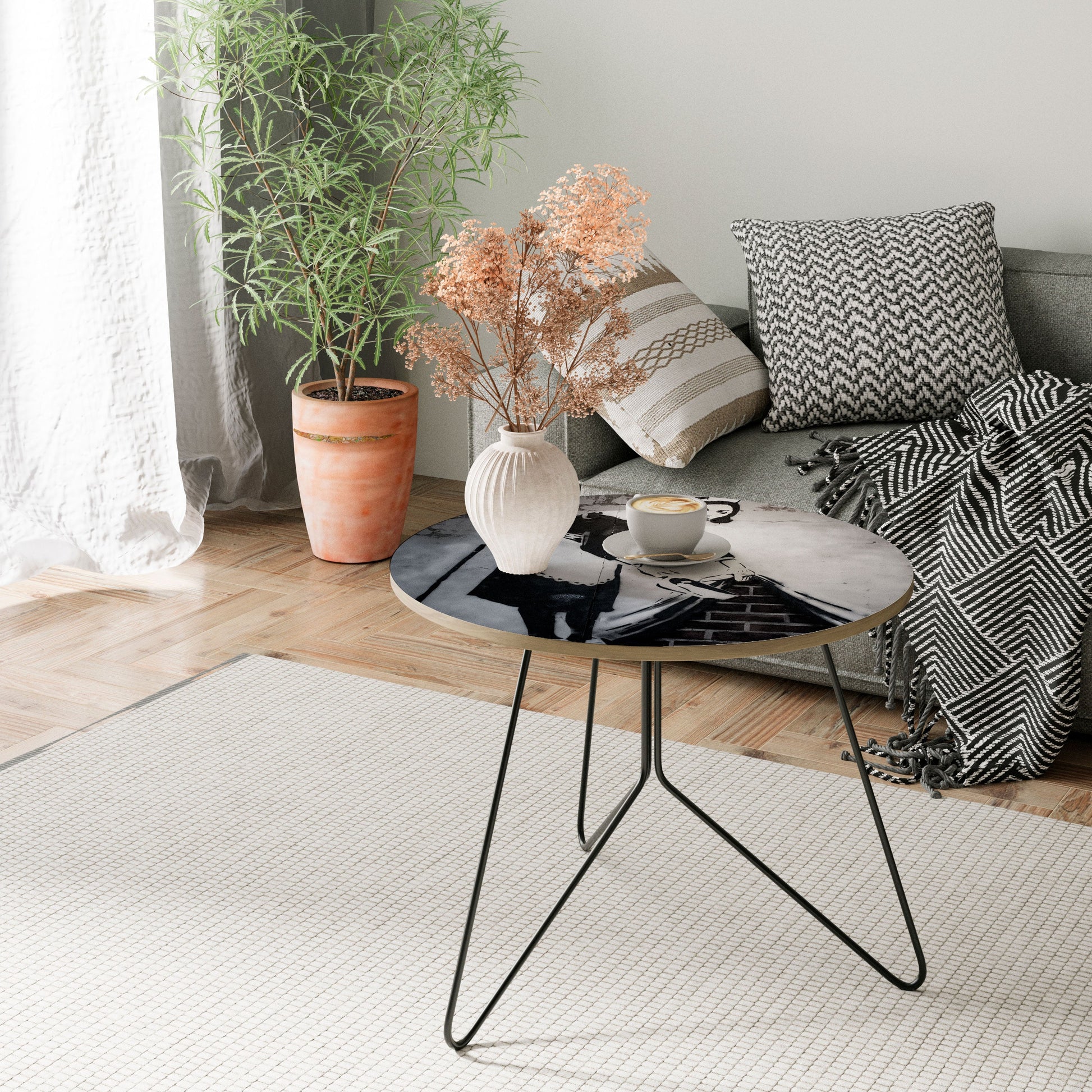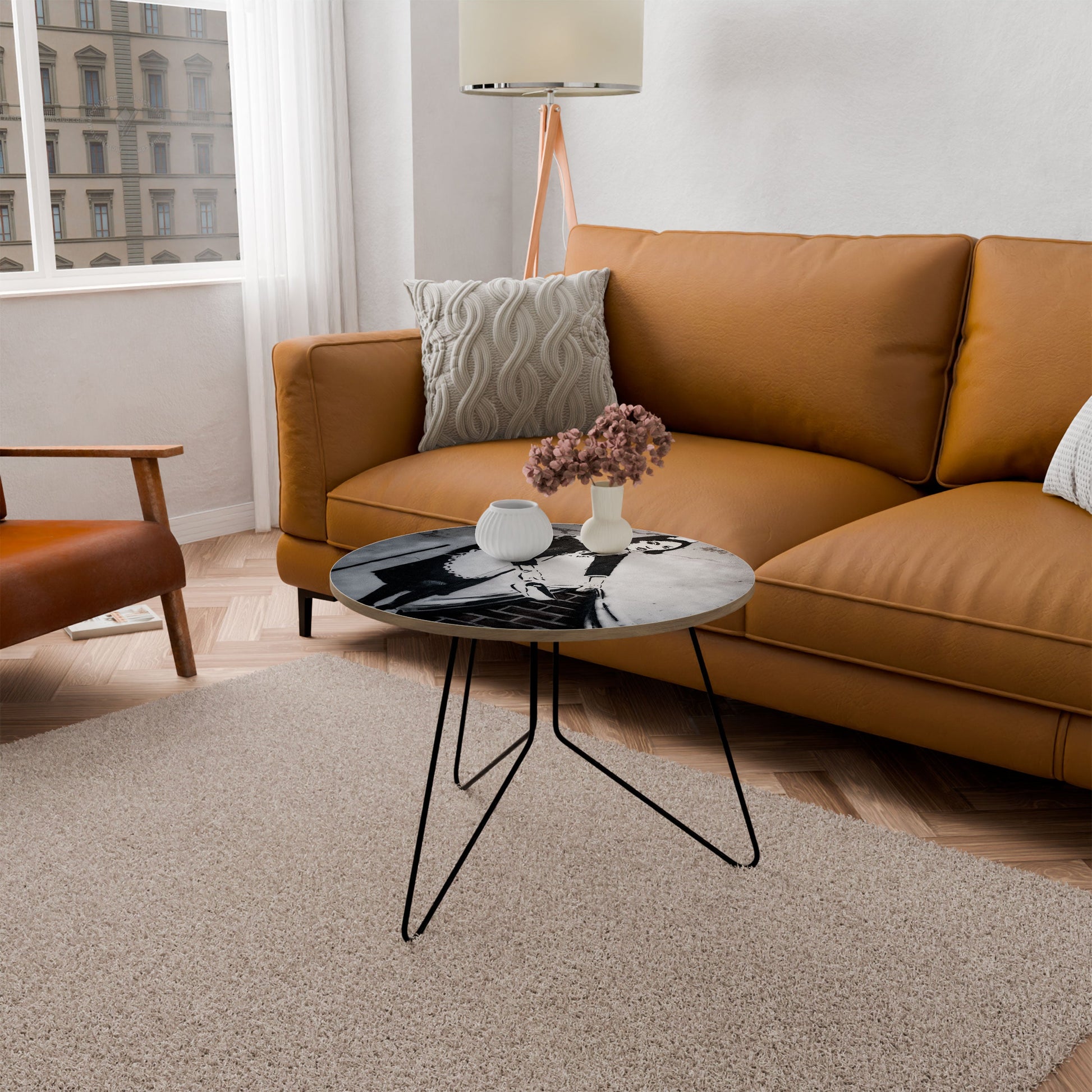 The tabletop features a high-quality printed motif, adding a distinctive artistic accent to your space. Crafted from durable chipboard covered with laminate, it ensures long-lasting use and resistance to daily wear.