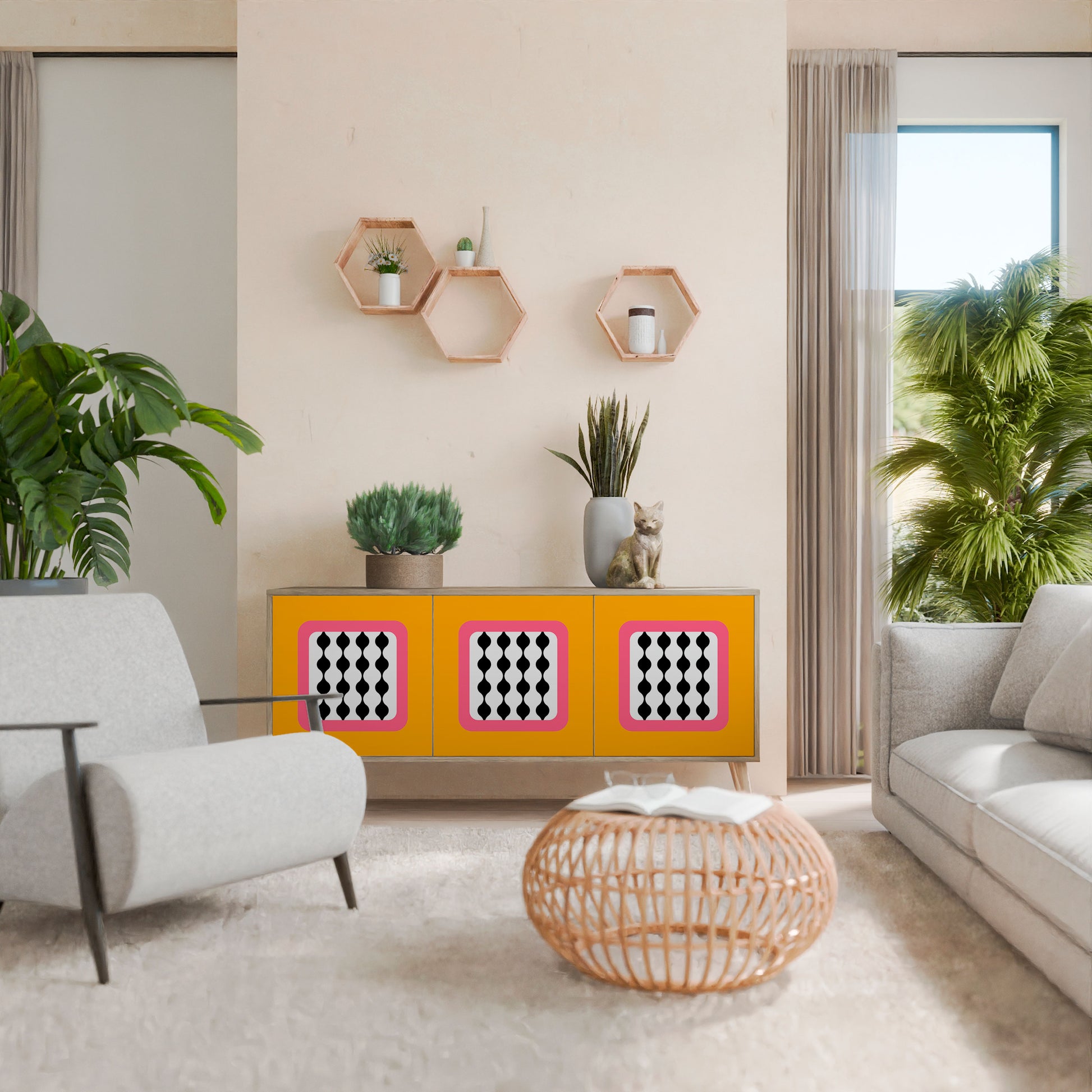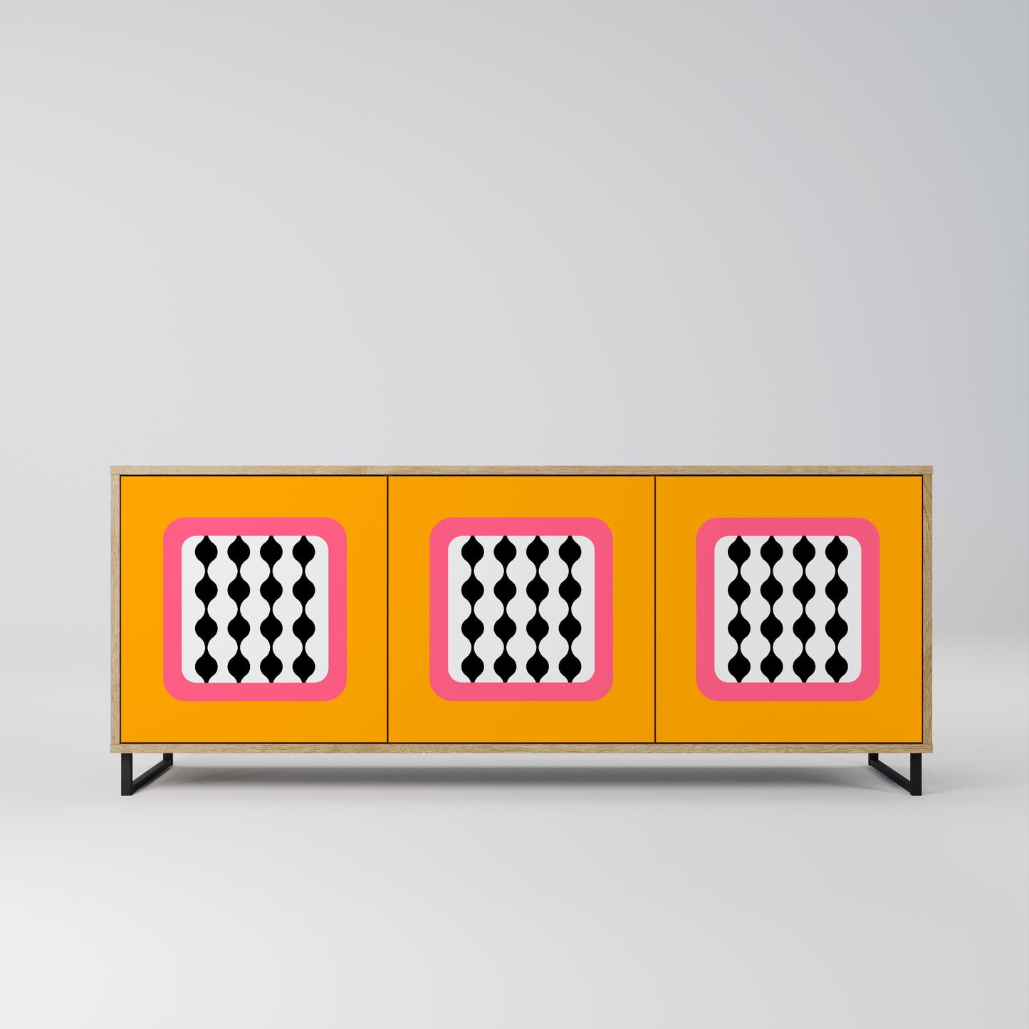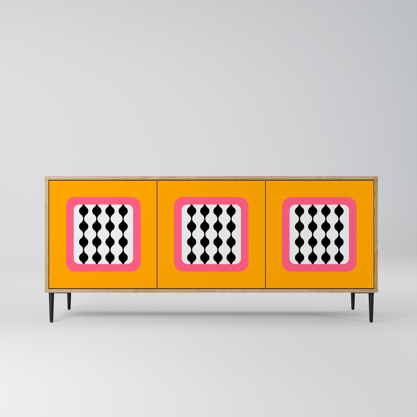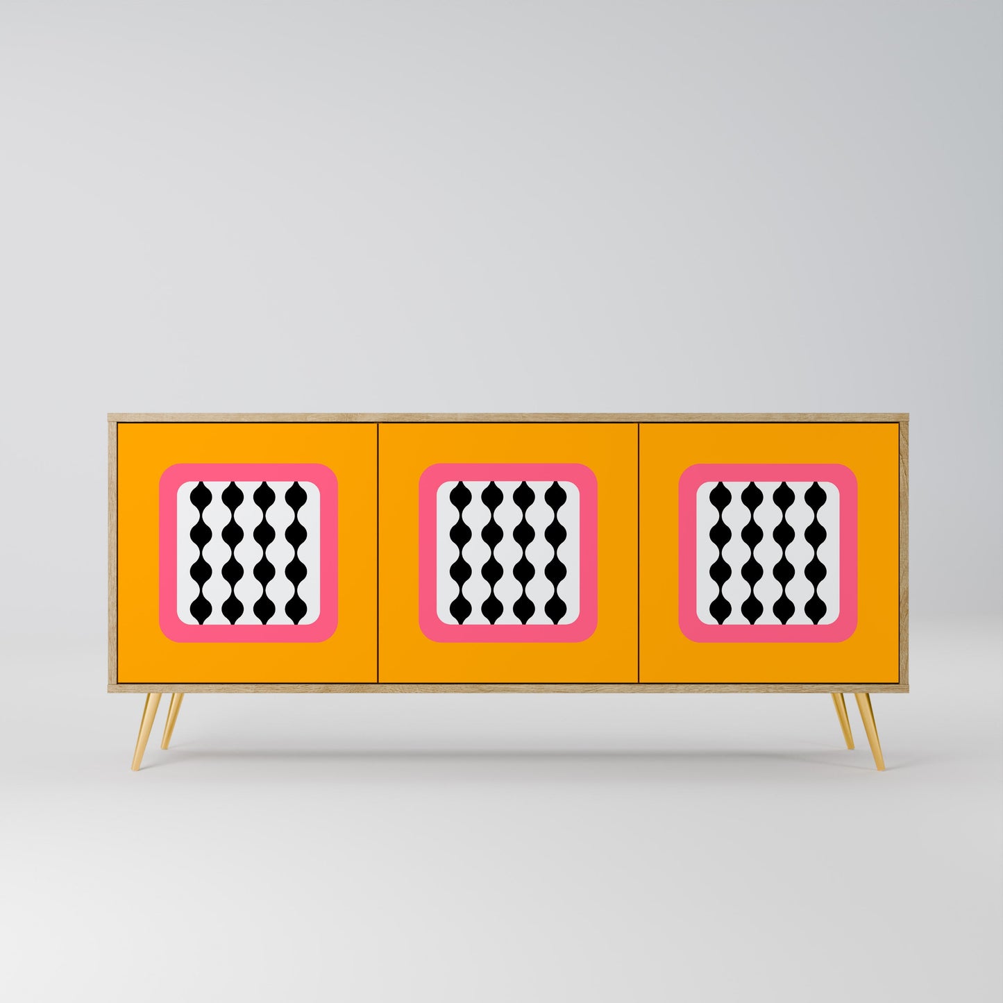 Discover the elegance and natural beauty of wood with our 3-door sideboard in oak finish. This stylish piece combines the sturdiness of a wooden body with the aesthetic detail of printed front doors, creating a cohesive and attractive design. Perfect for both the living room and bedroom, this sideboard adds a touch of class and functionality to any interior.