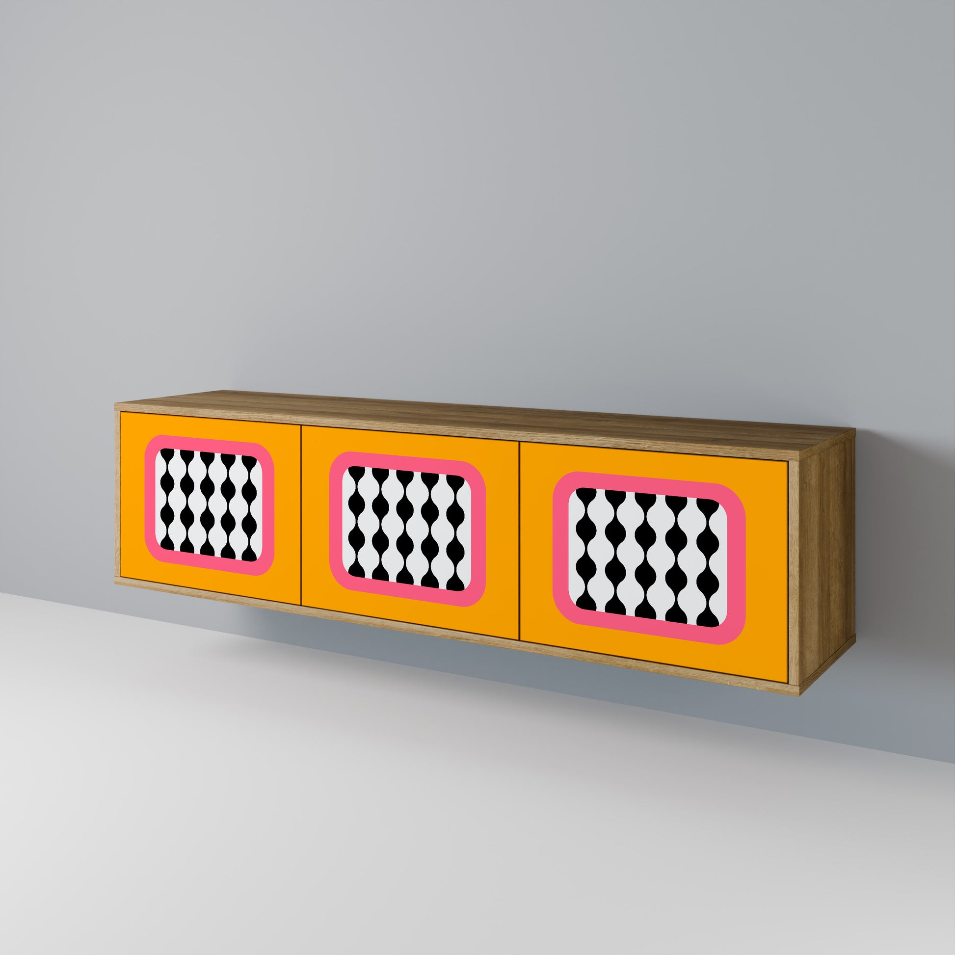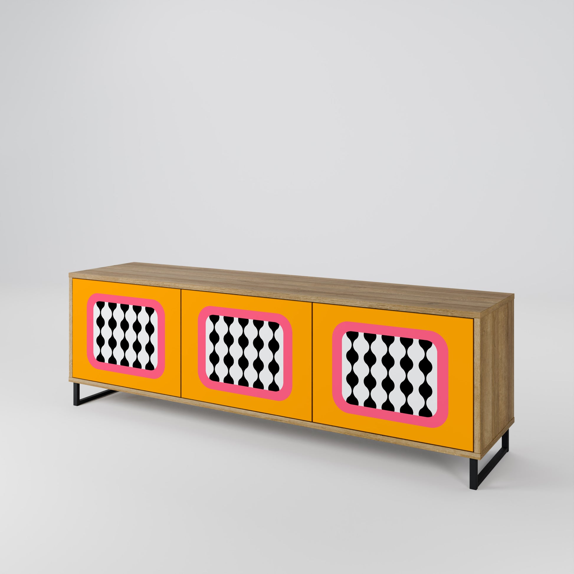 Discover the perfect solution for storage and organization with our 3-door TV stand. Crafted from durable materials, combining wooden legs with a laminated body, this cabinet is both stylish and functional. The wooden doors with an attractive print add a touch of elegance, making it an excellent choice for any interior.
