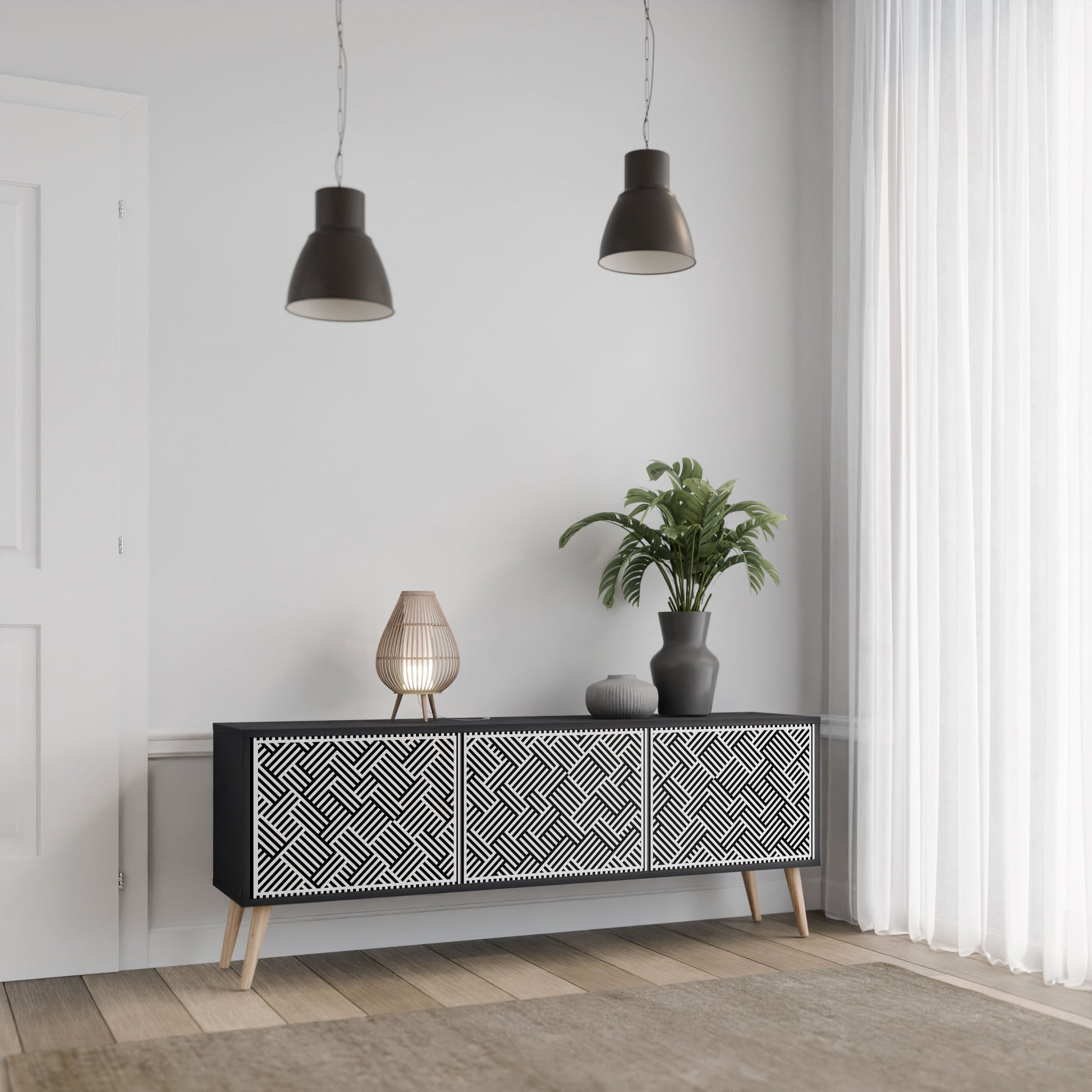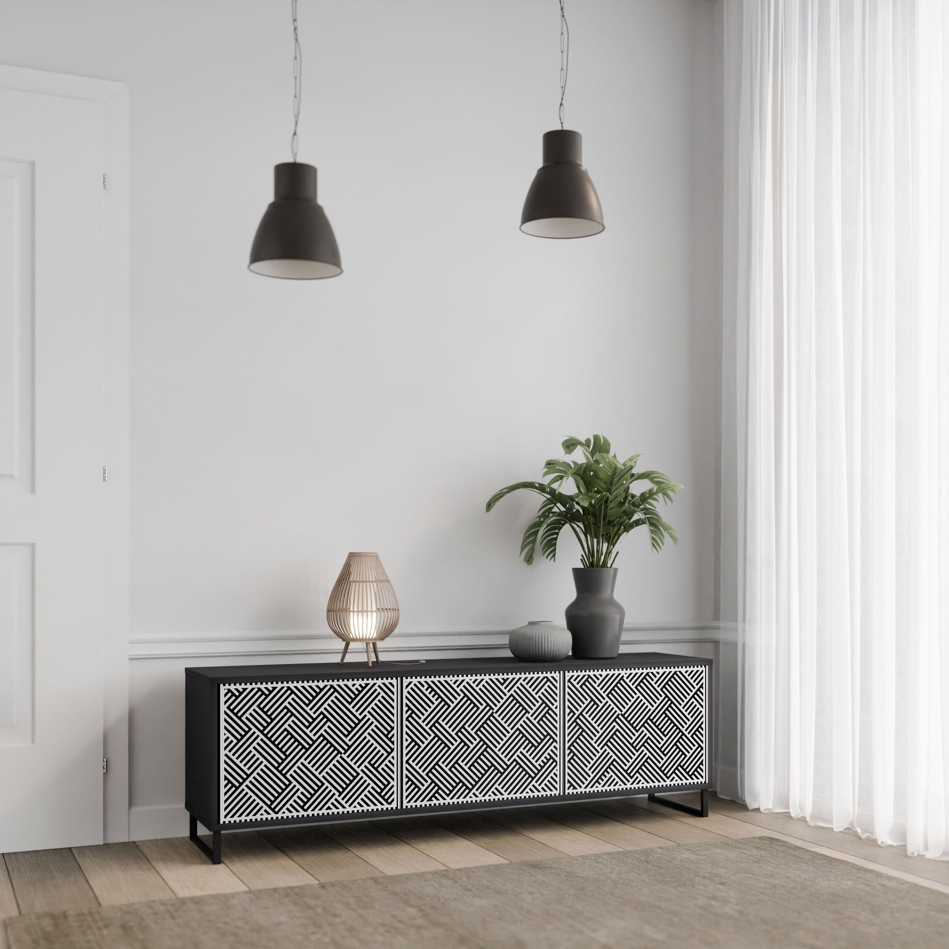 TEMPORARY SEQUENCE 3-Door TV Stand in Black Finish