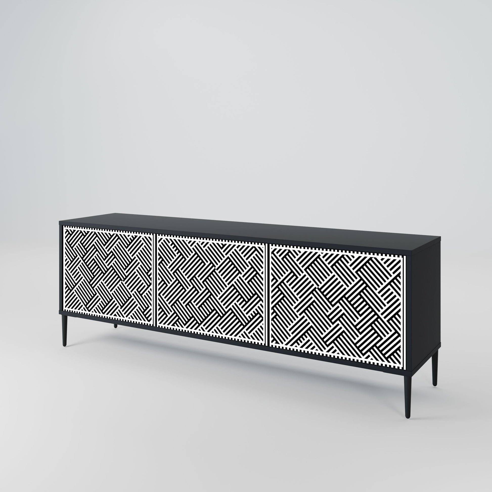 The black body of the stand creates a bold, modern accent that pairs beautifully with industrial and minimalist arrangements. The fronts with a designer print add character and uniqueness, making this piece not only practical but also a standout decorative element.