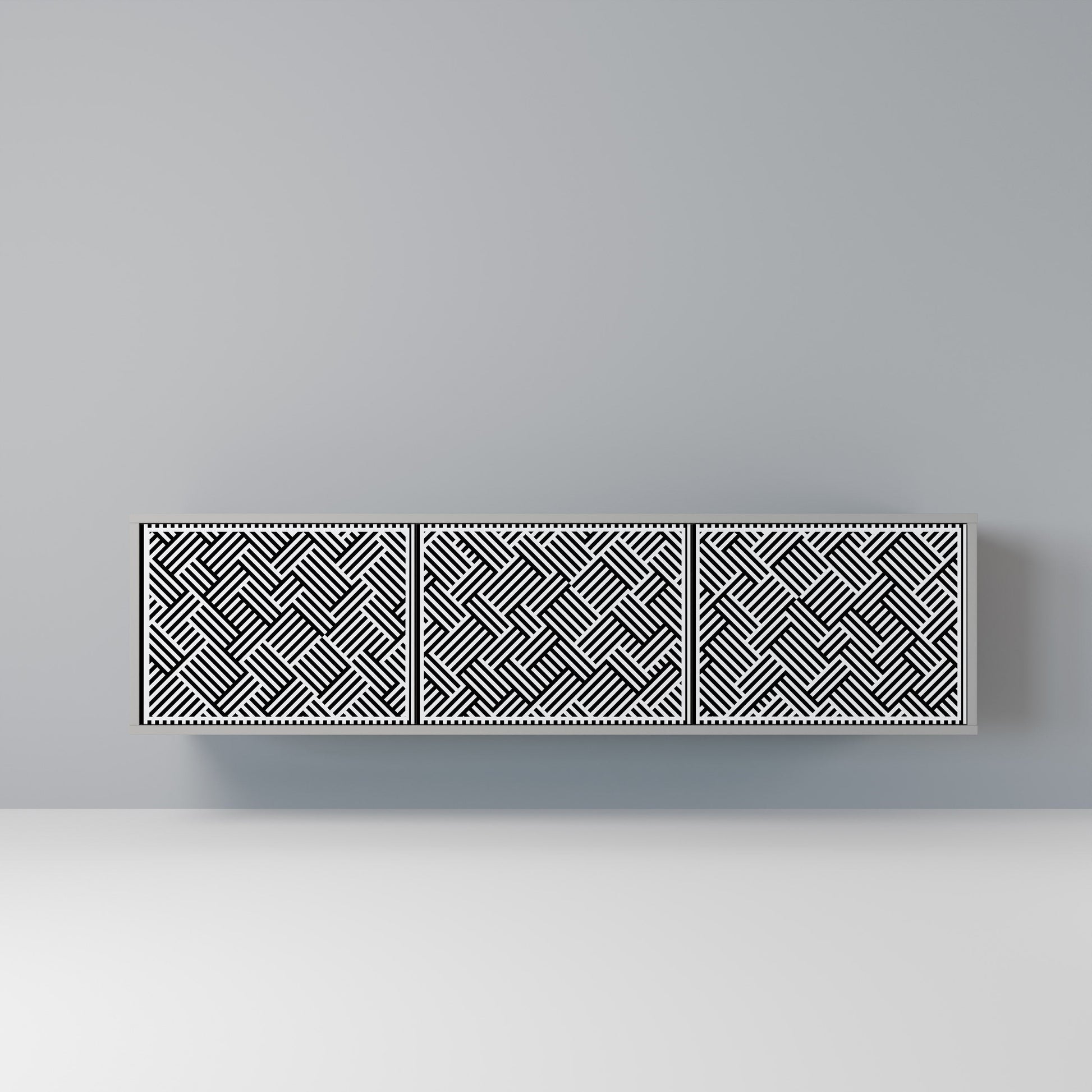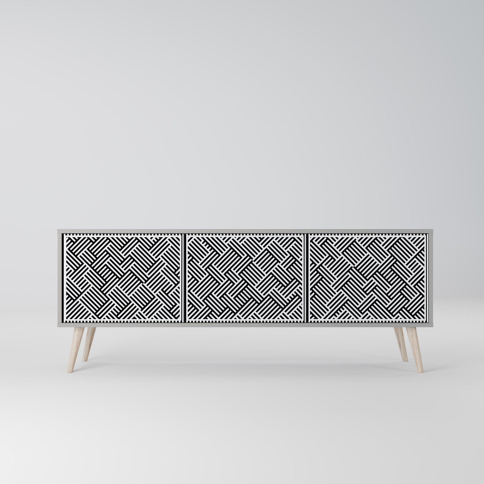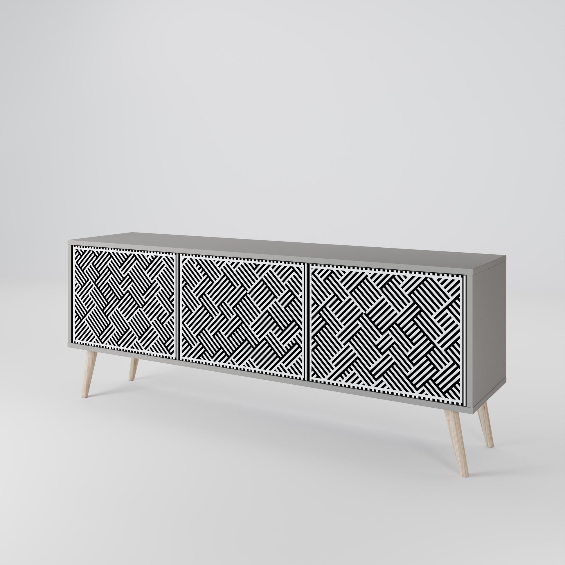 The grey body of the stand creates a refined, modern accent that pairs beautifully with industrial and minimalist arrangements. The fronts with a designer print add character and uniqueness, making this piece not only practical but also a standout decorative element.