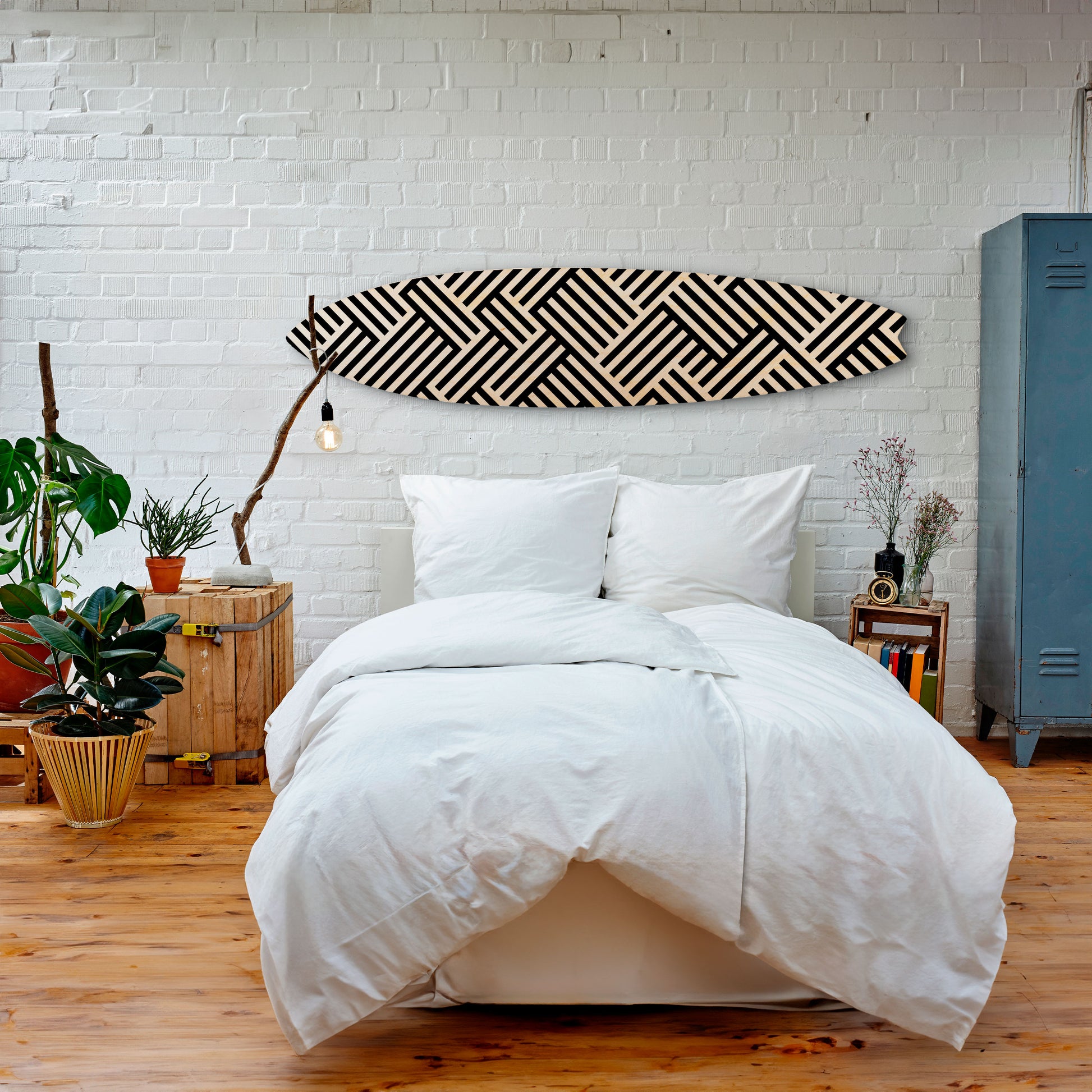 The modern print gives the surfboard a bold yet elegant look, while the subtle matte finish enhances its decorative quality. This surfboard is an excellent choice for living rooms, bedrooms, hallways, offices, and commercial spaces, where it draws attention and adds an individual, stylish touch to the interior.