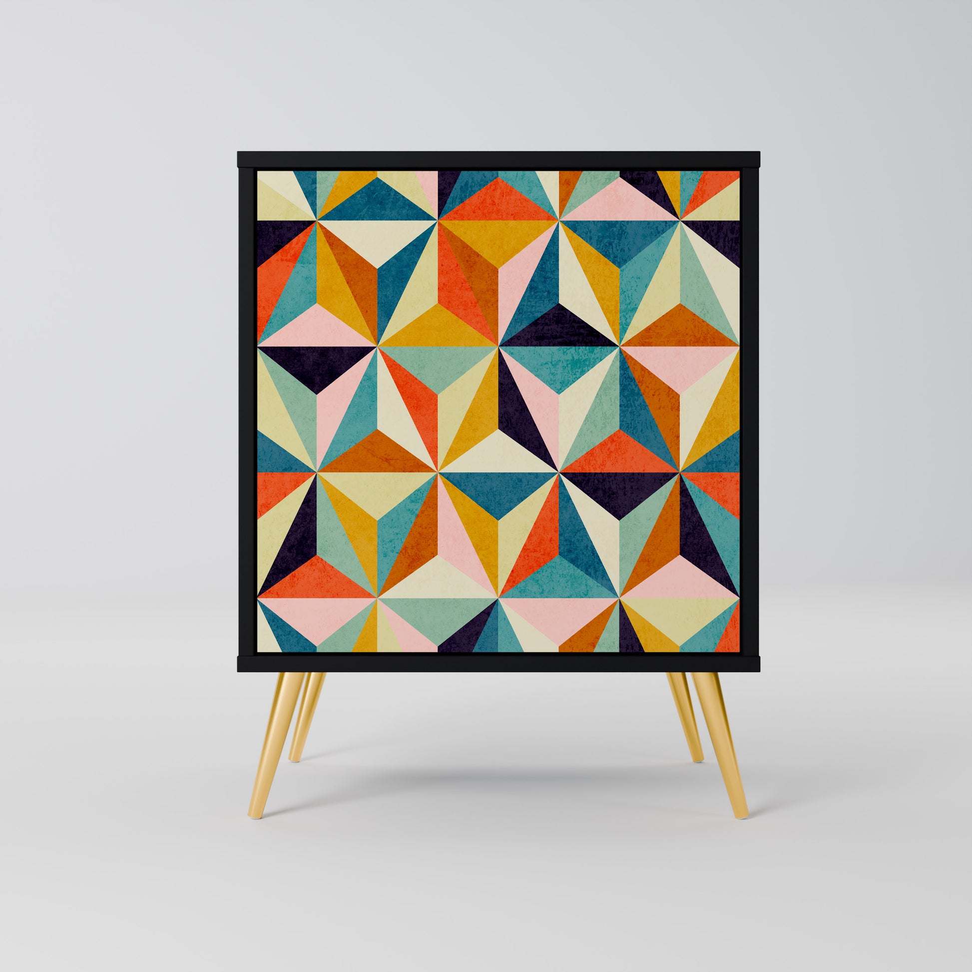 This compact yet remarkably elegant piece of furniture impresses with its minimalist design, perfectly fitting into both modern and classic interiors. The black body emphasizes the furniture’s bold character, while the fronts with a unique print add an artistic touch.