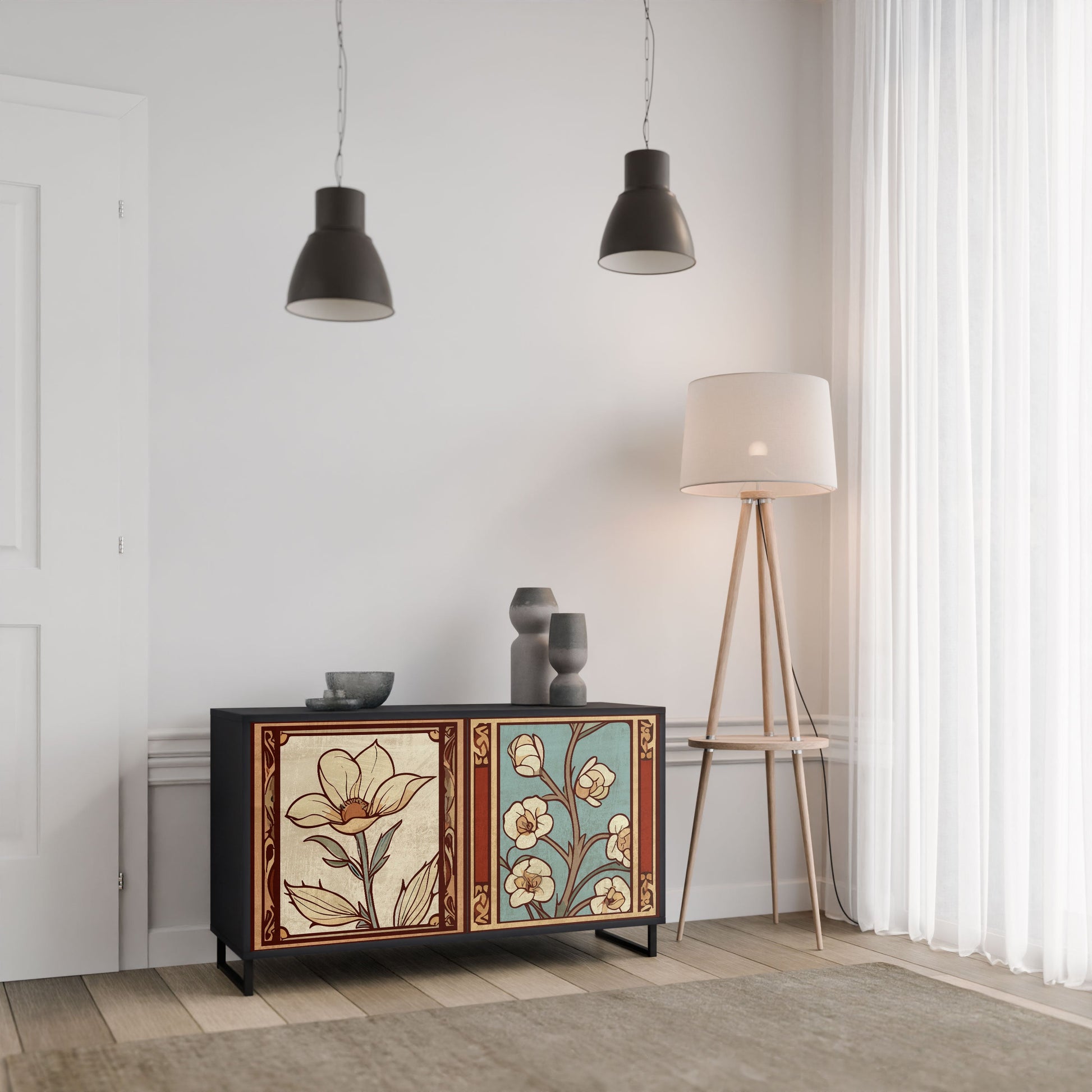 Elegance and functionality in a single piece of furniture – our 2-Door Sideboard with a black body is the perfect solution for lovers of stylish, modern interiors. The black body emphasizes the bold character of the furniture, while the fronts with a unique print add an artistic touch. It fits perfectly in the living room, bedroom, or office, complementing both modern and industrial arrangements.