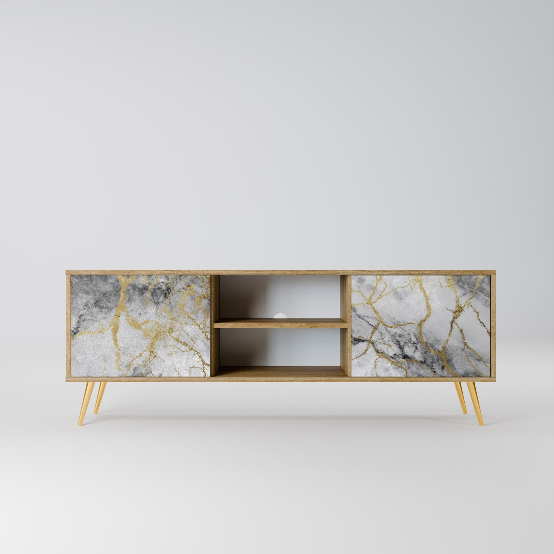 We invite you to discover our 2-door TV stand that combines simplicity with exceptional style. Made from the highest-quality materials, this elegant piece in oak tones, featuring wooden doors with a printed finish, is the perfect addition to any modern living room.