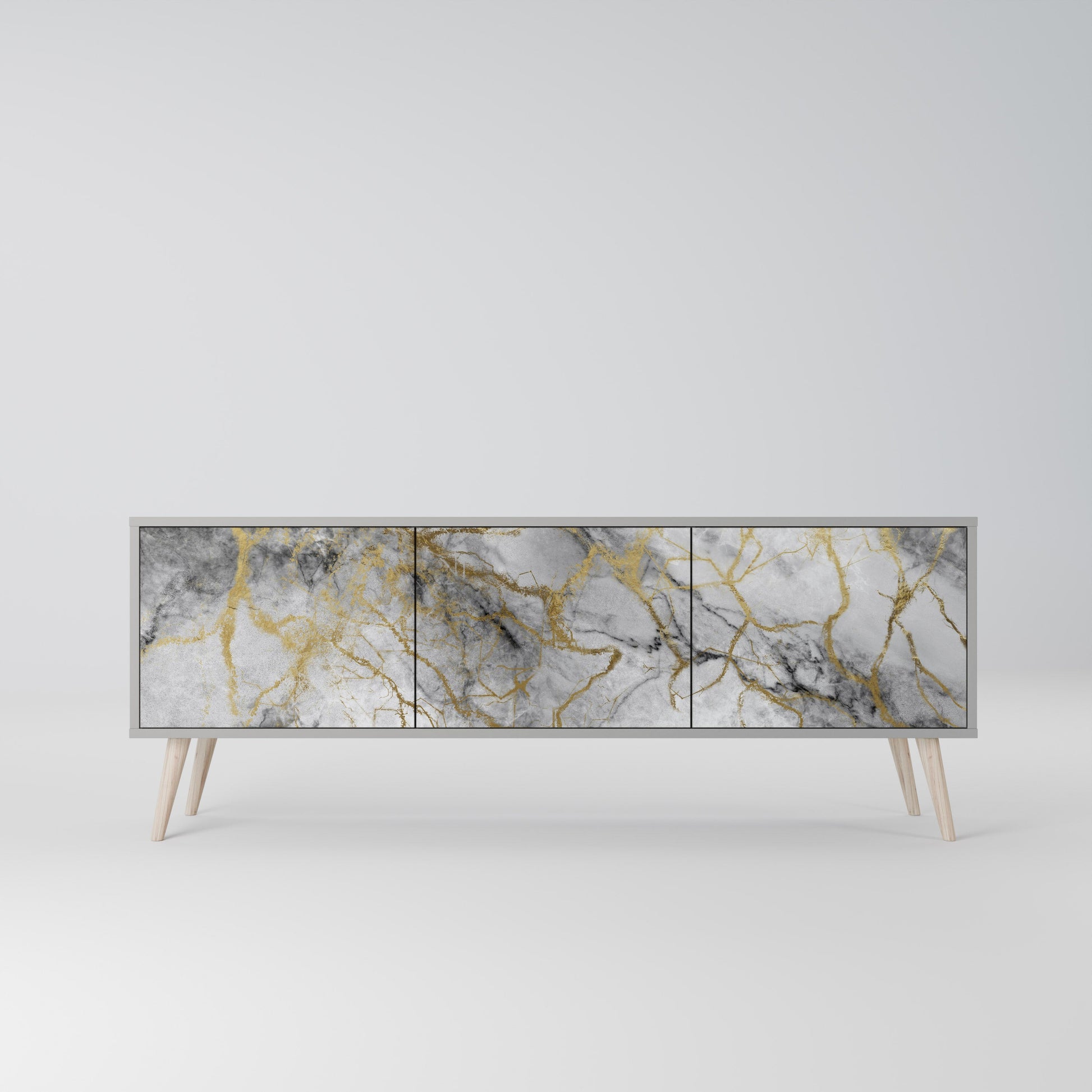 The grey body of the stand creates a refined, modern accent that pairs beautifully with industrial and minimalist arrangements. The fronts with a designer print add character and uniqueness, making this piece not only practical but also a standout decorative element.