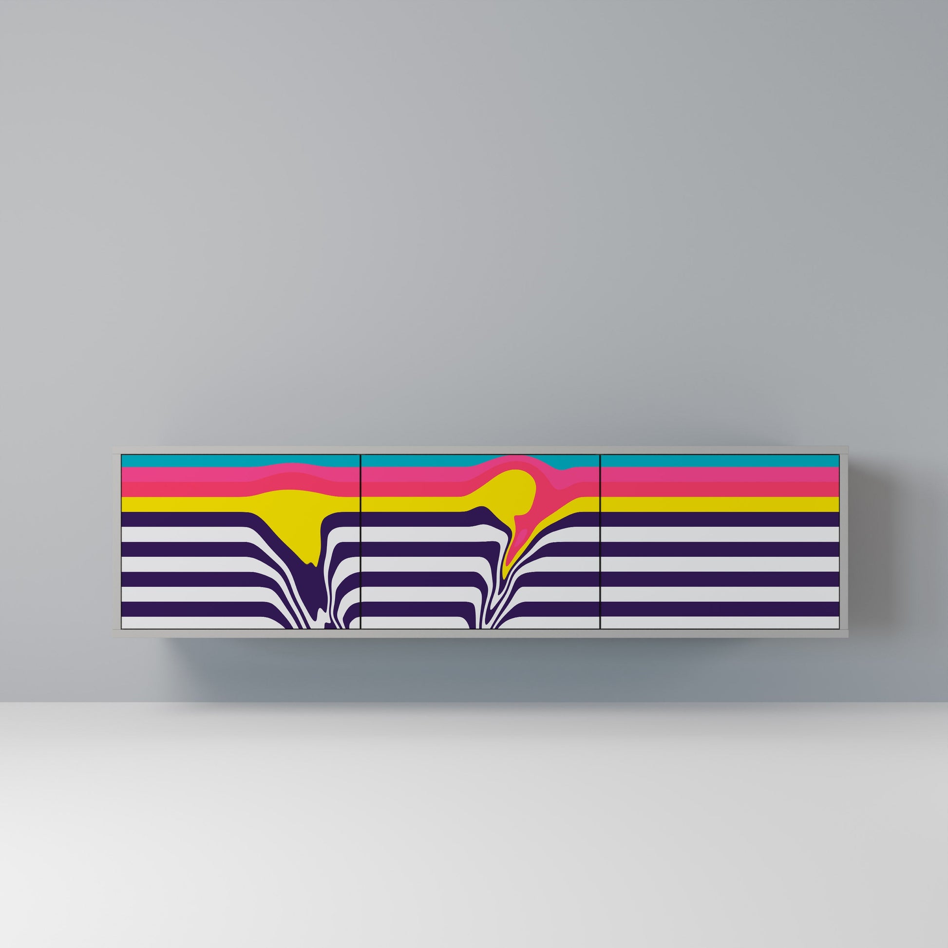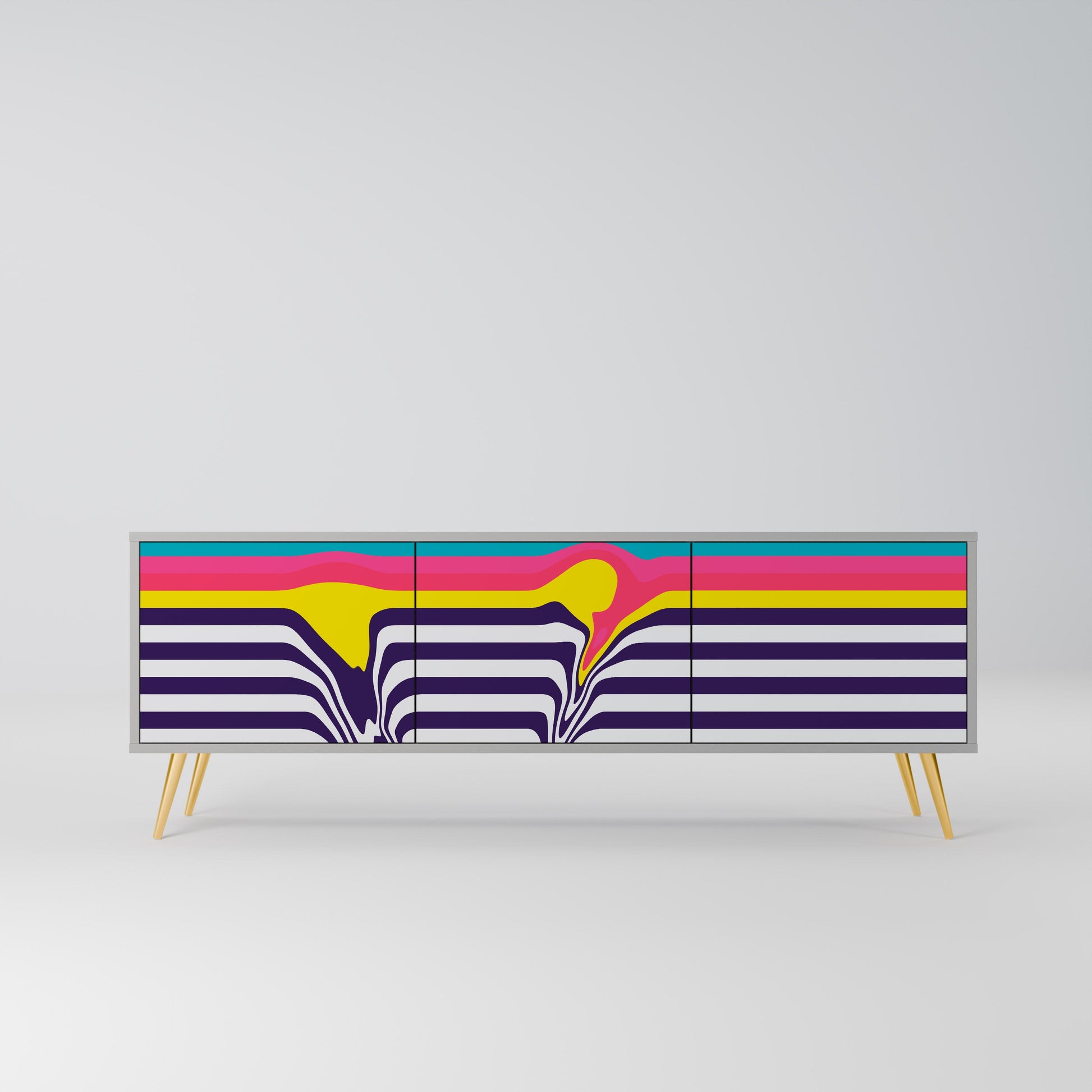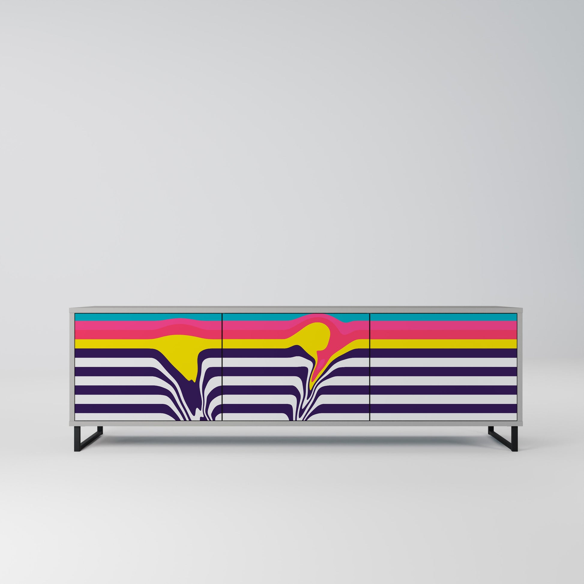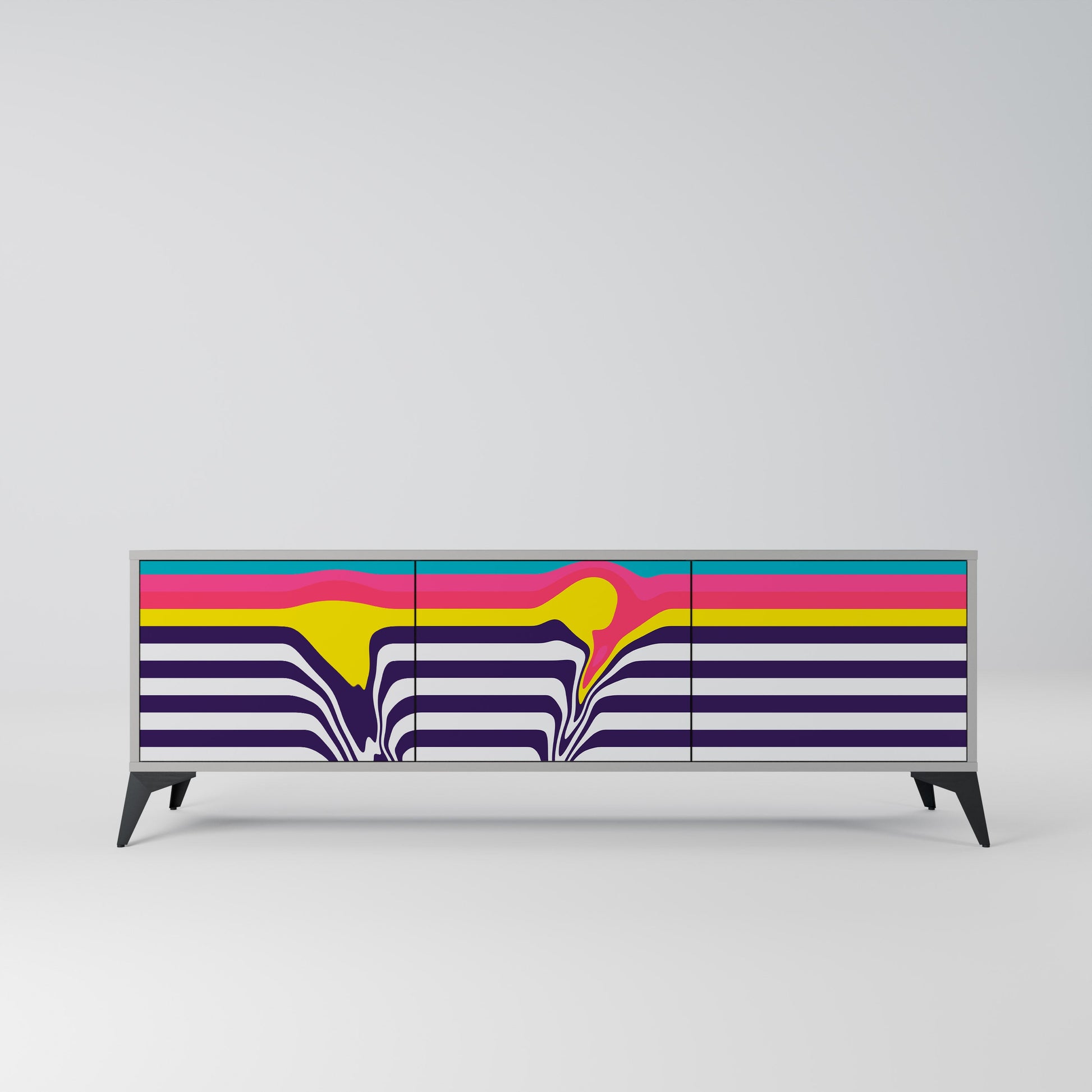 The grey body of the stand creates a refined, modern accent that pairs beautifully with industrial and minimalist arrangements. The fronts with a designer print add character and uniqueness, making this piece not only practical but also a standout decorative element.