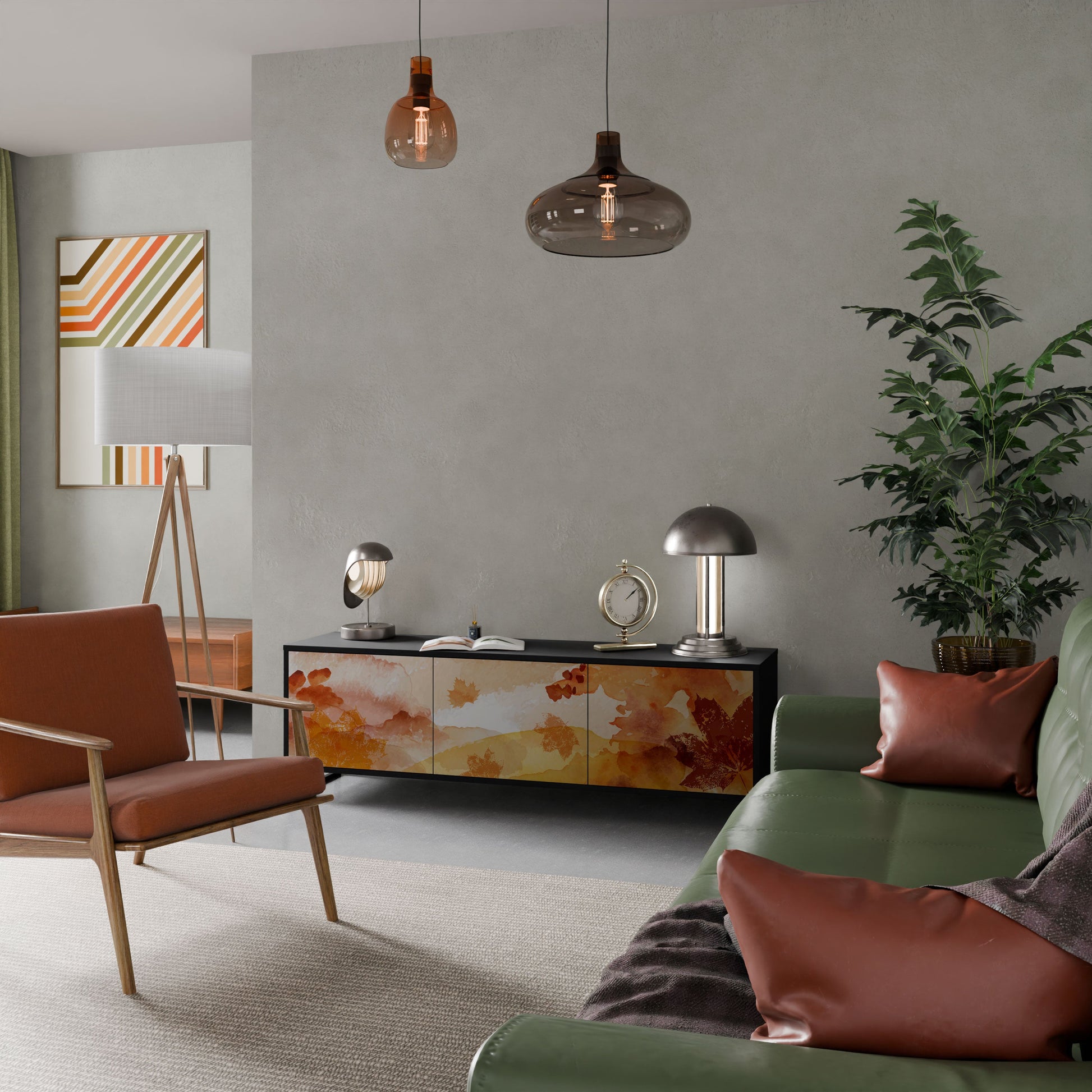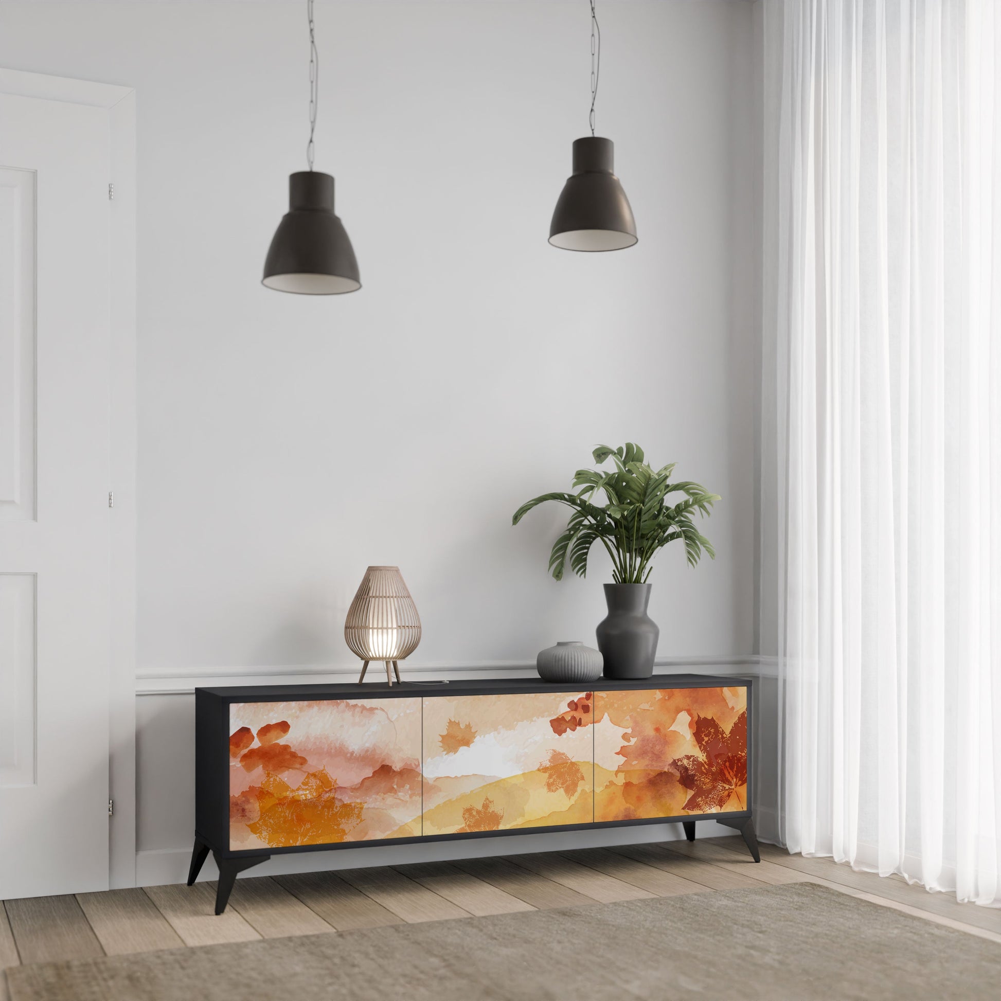 TRACES OF AUTUMN 3-Door TV Stand in Black Finish