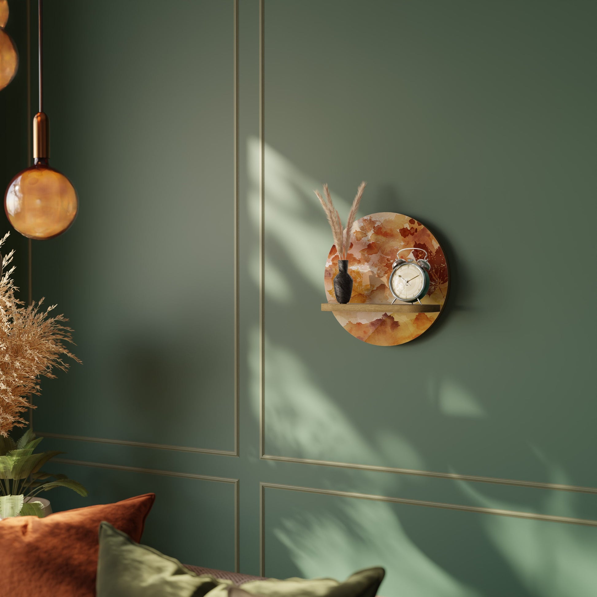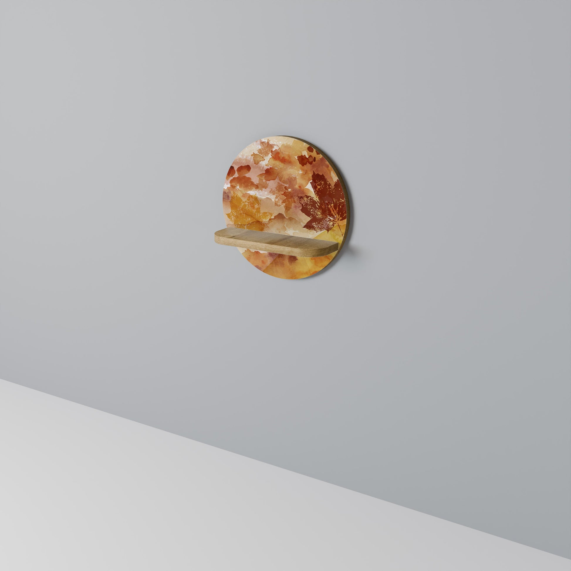 TRACES OF AUTUMN Round Art Shelf In Oak Effect