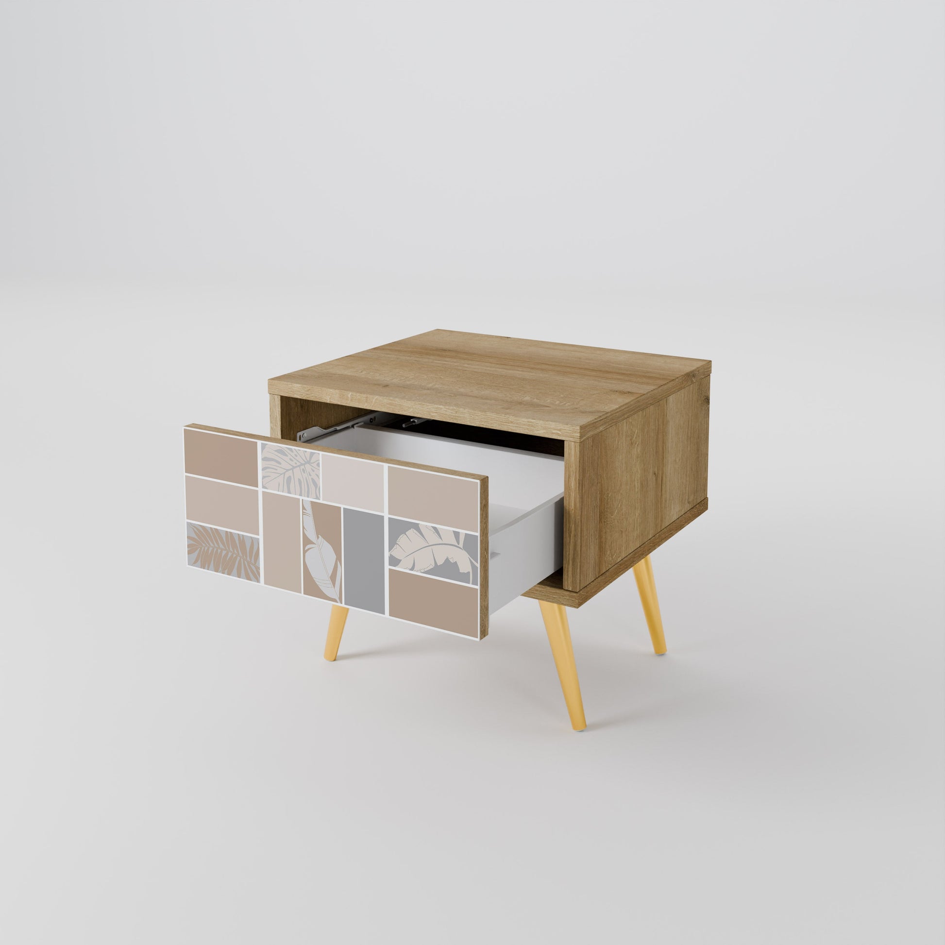 Discover functionality and elegance in a compact form with our bedside unit with a drawer. This practical and stylish piece of furniture perfectly combines the natural beauty of wood with modern design on the drawer front, creating a harmonious element for any bedroom.