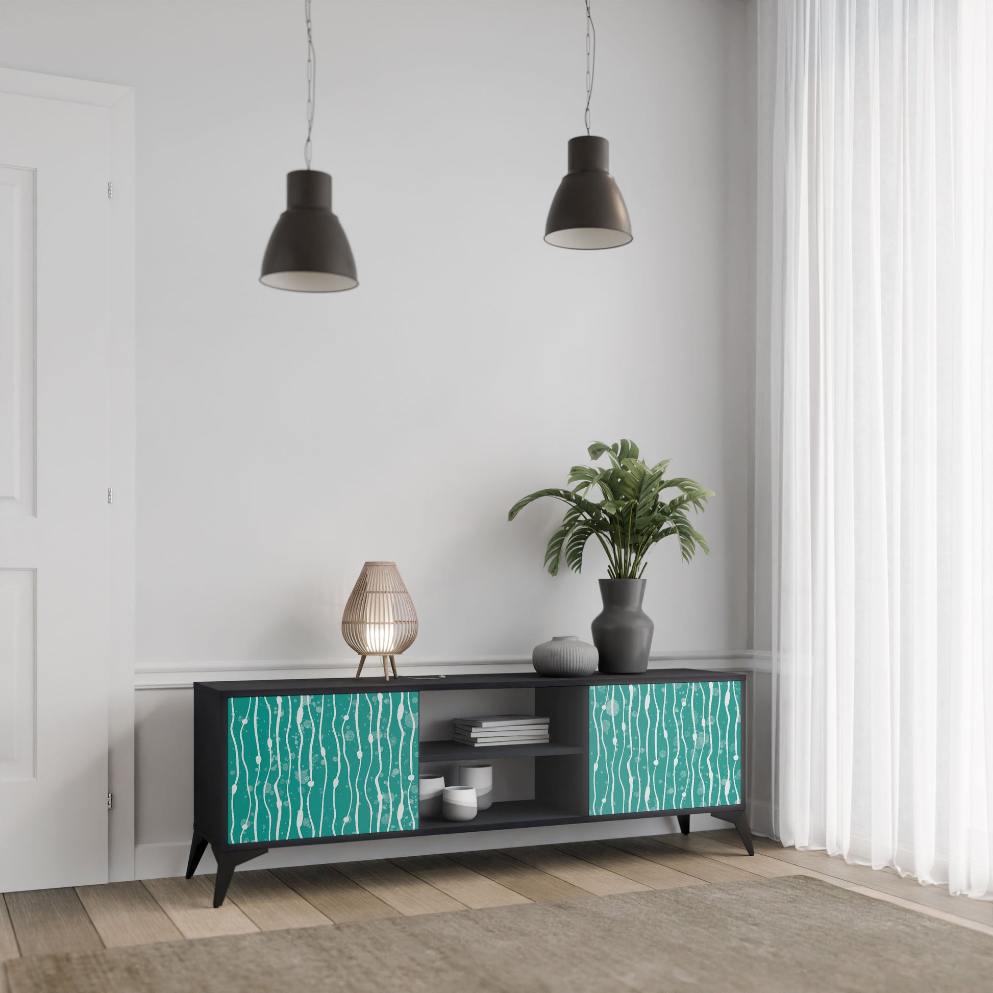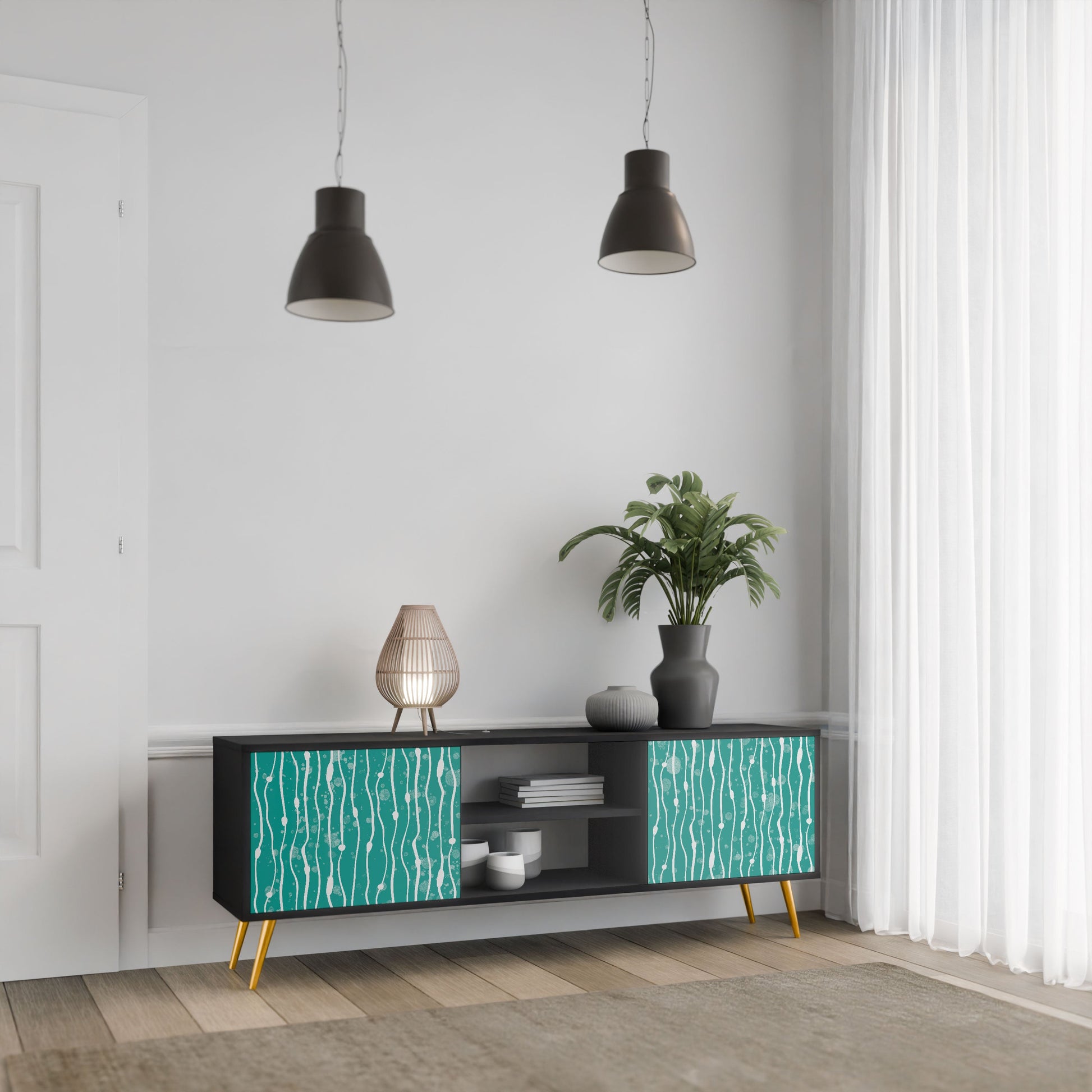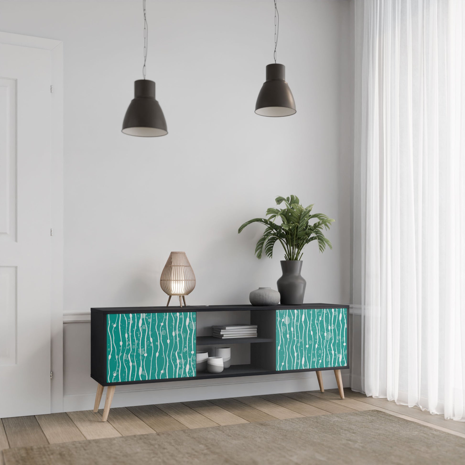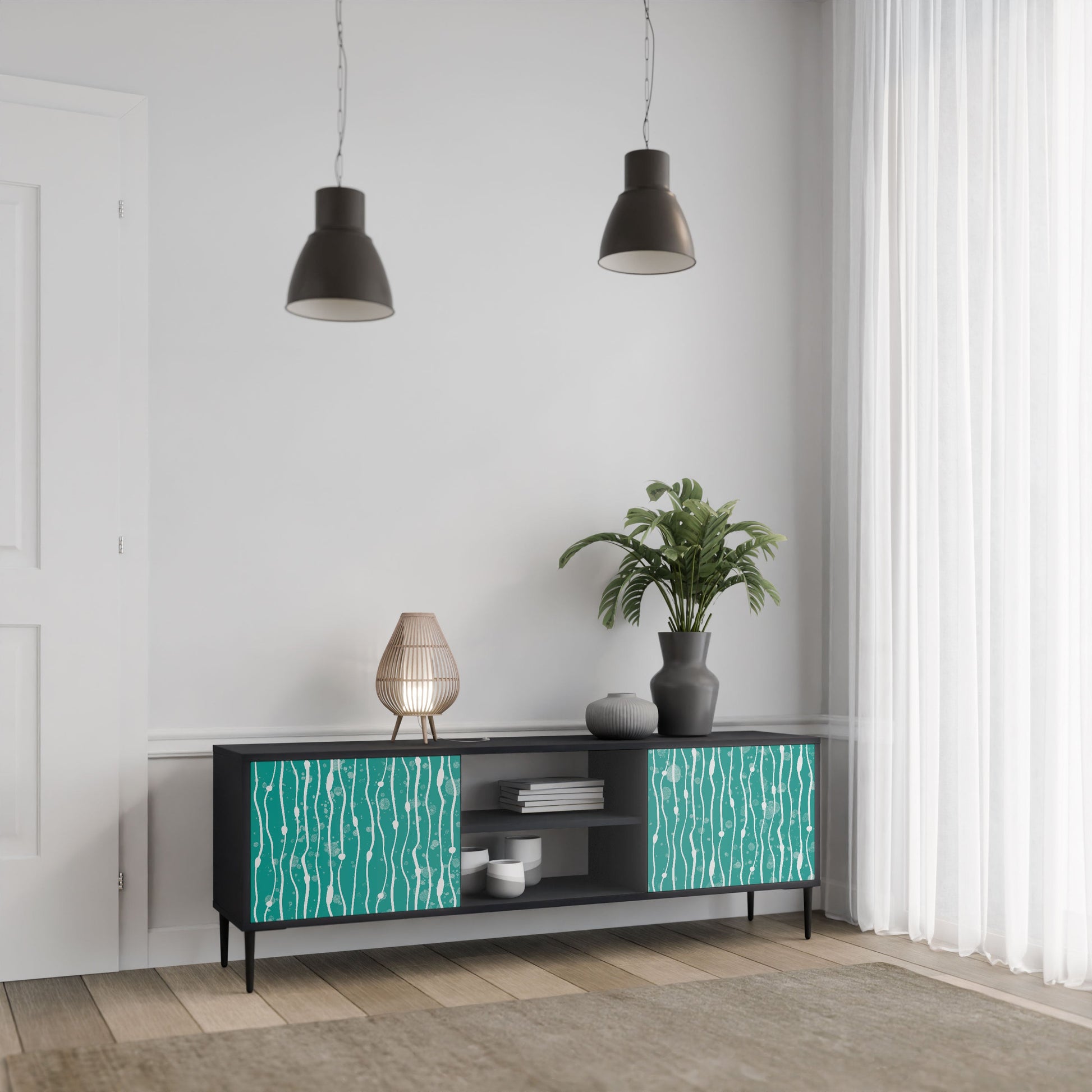 The black body gives the TV stand an elegant, modern look, while the fronts with an exceptional print draw attention, making it the focal point of any room. The spacious interior provides room for electronic devices, cables, remotes, and other accessories, helping you maintain order and organization.