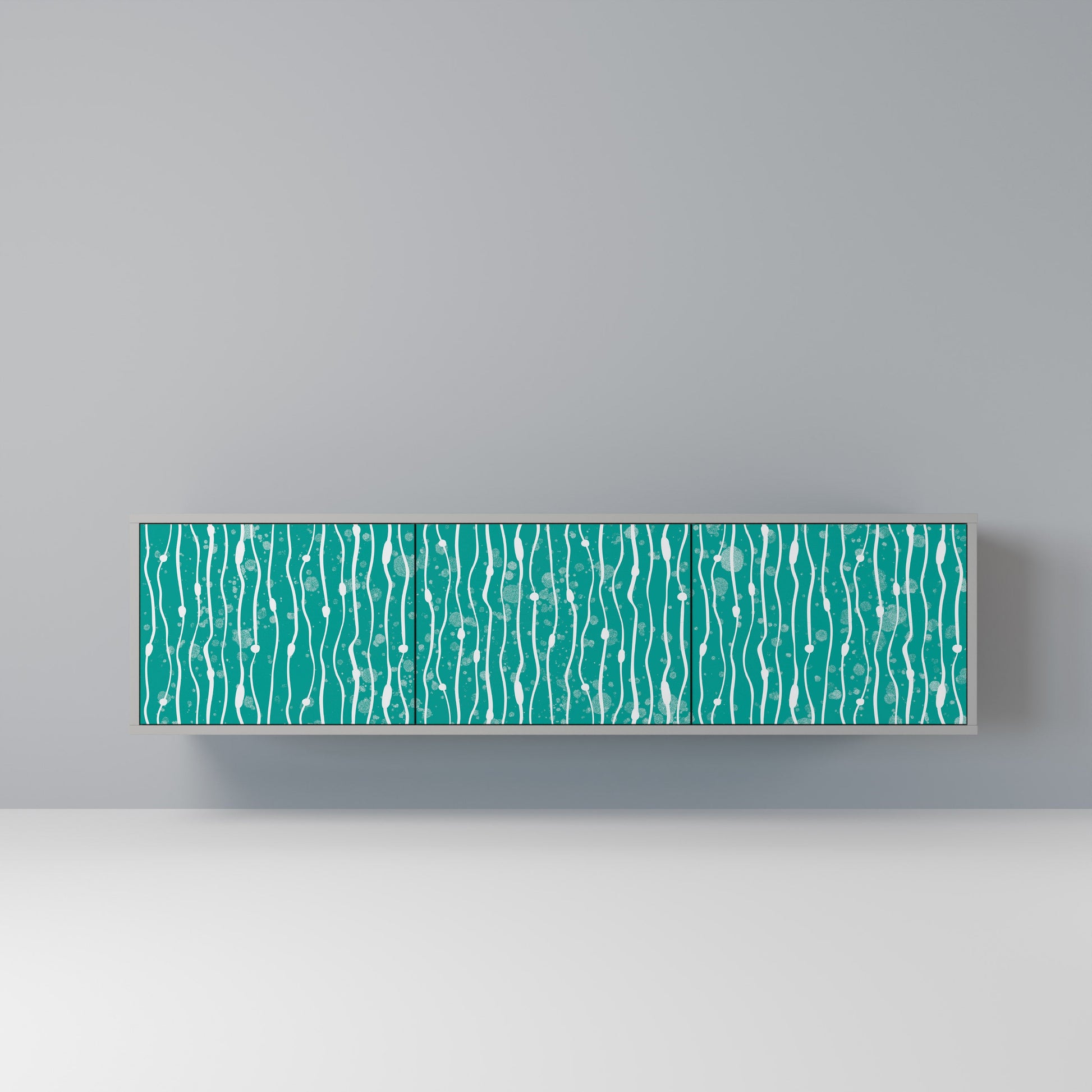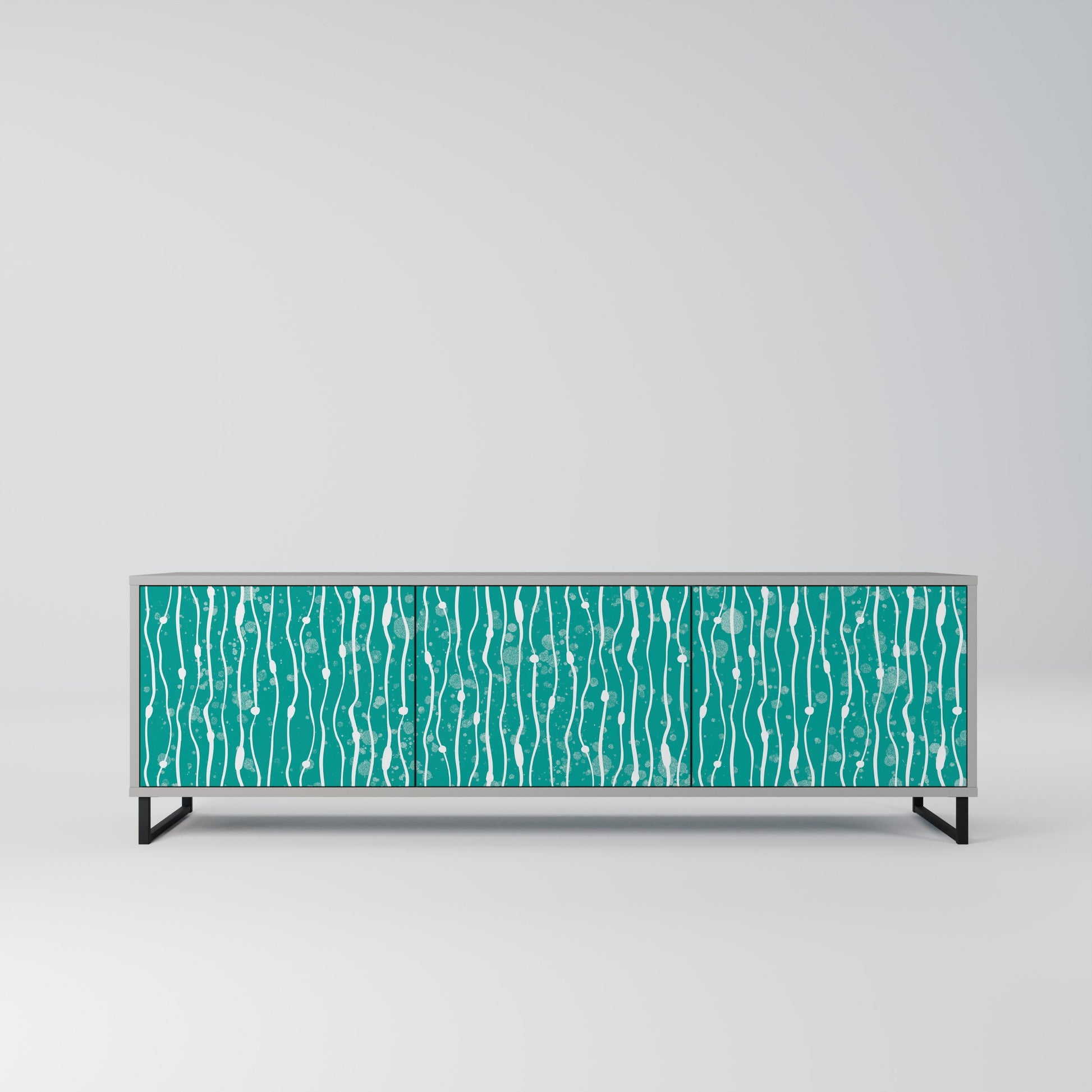 The grey body of the stand creates a refined, modern accent that pairs beautifully with industrial and minimalist arrangements. The fronts with a designer print add character and uniqueness, making this piece not only practical but also a standout decorative element.