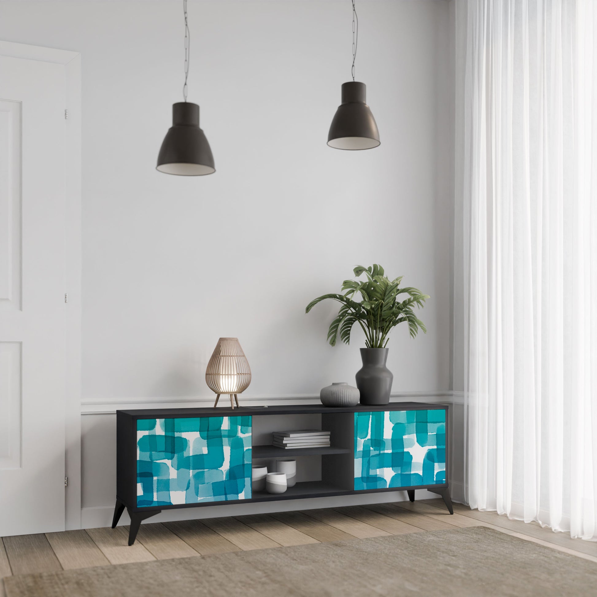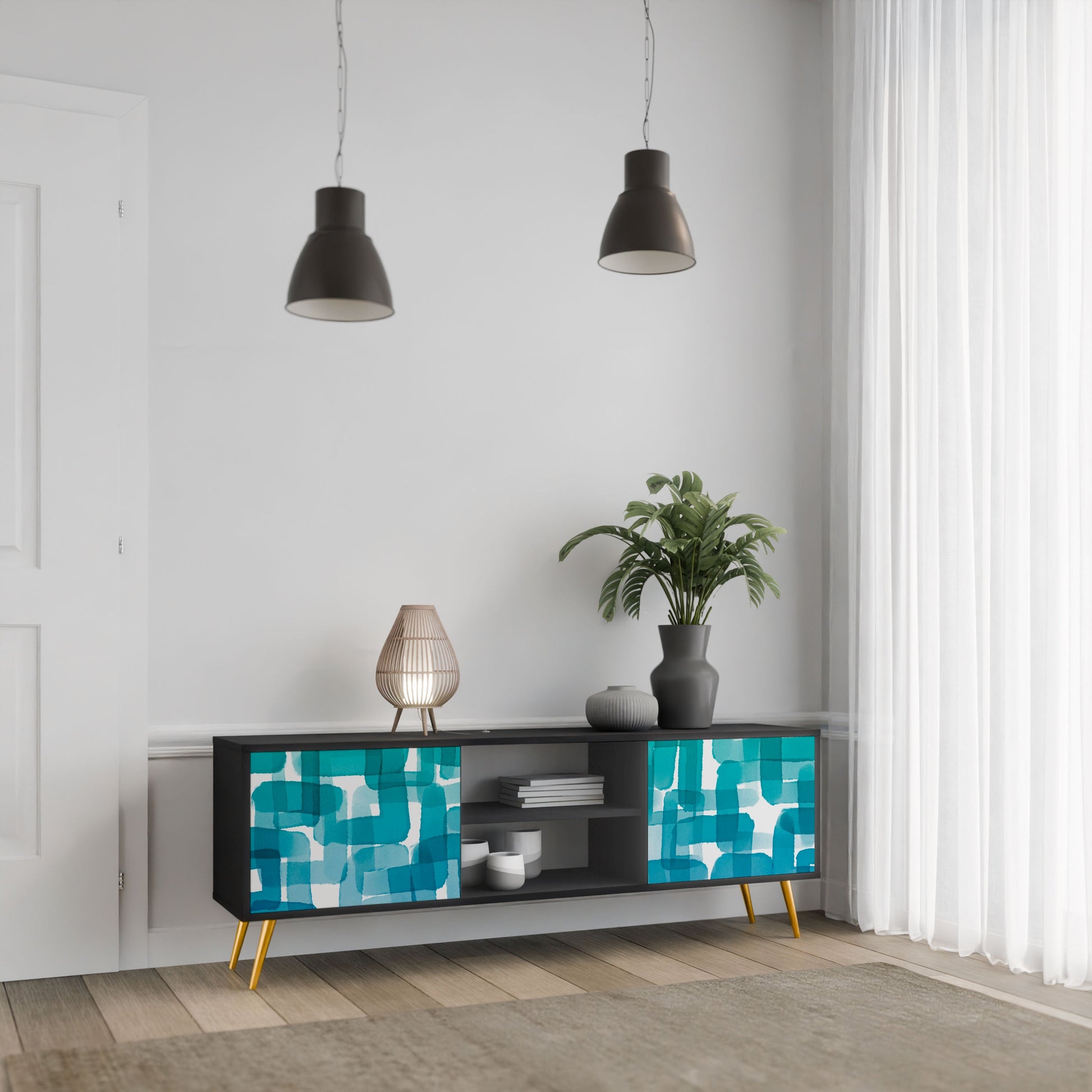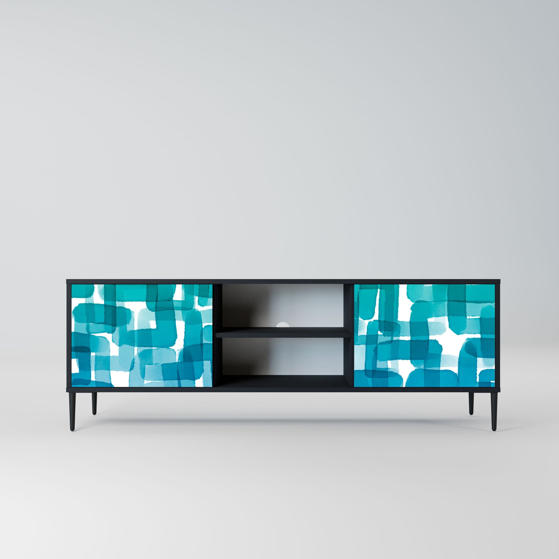 TURQUOISE RECTANGLES 2-Door TV Stand in Black Finish