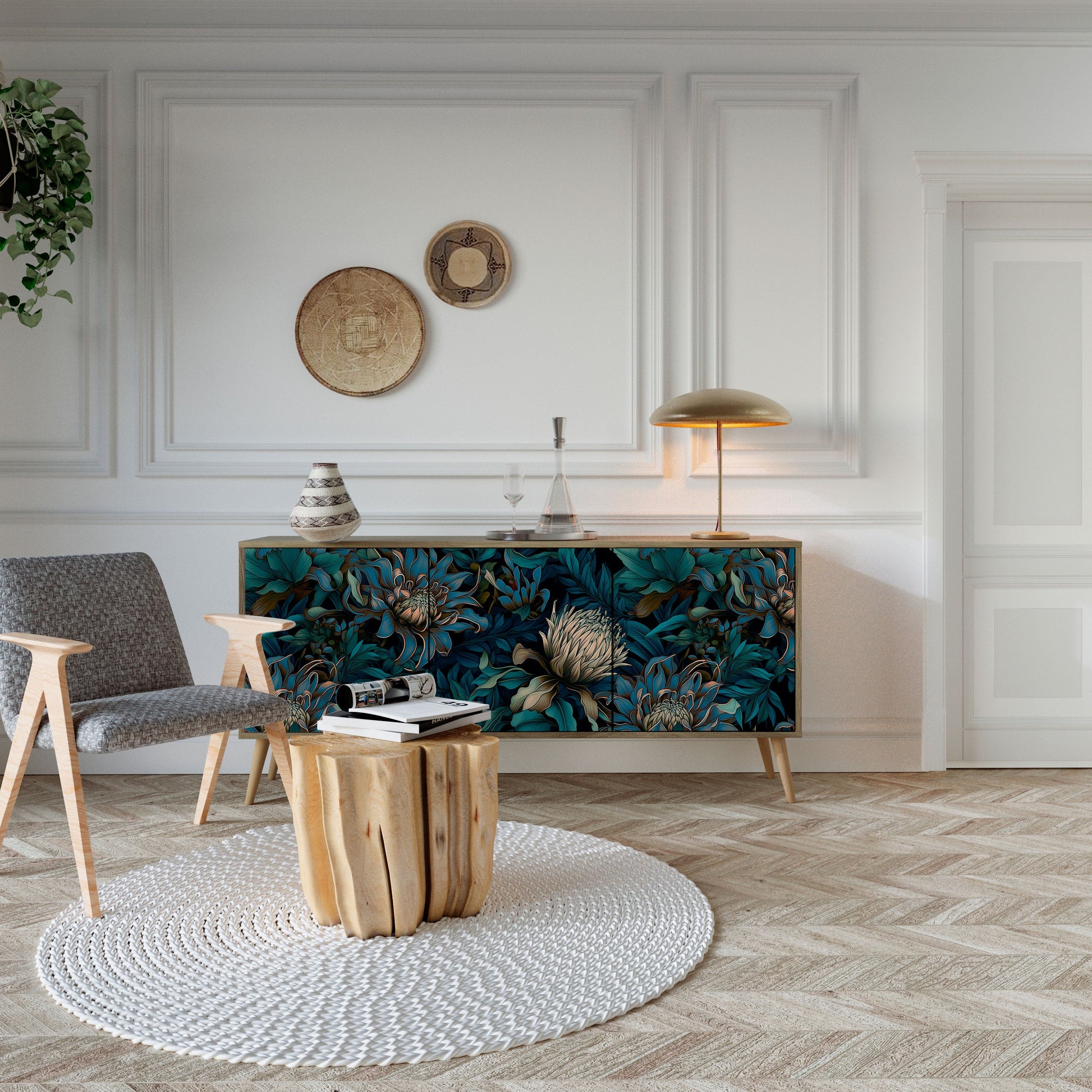 TWILIGHT BLOOM 3-Door Sideboard in Oak Effect