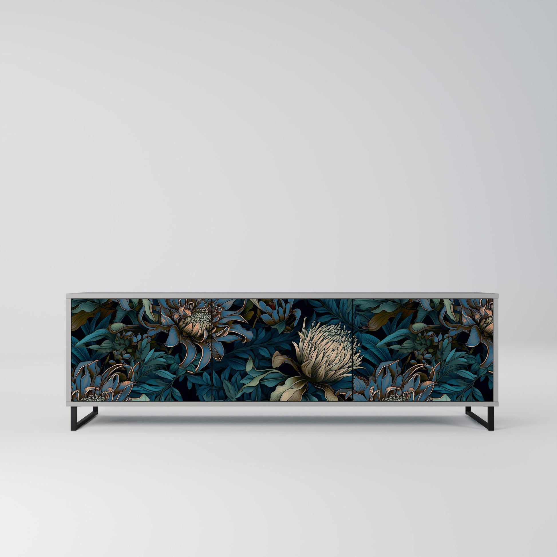 TWILIGHT BLOOM 3-Door TV Stand in Grey Finish