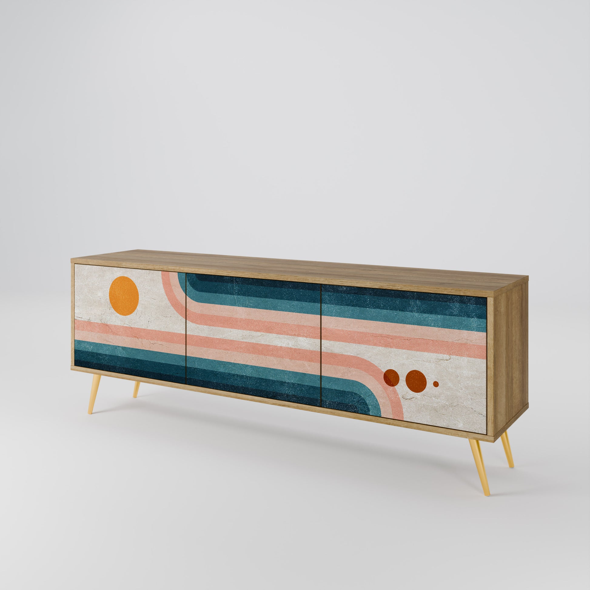 Discover the perfect solution for storage and organization with our 3-door TV stand. Crafted from durable materials, combining wooden legs with a laminated body, this cabinet is both stylish and functional. The wooden doors with an attractive print add a touch of elegance, making it an excellent choice for any interior.