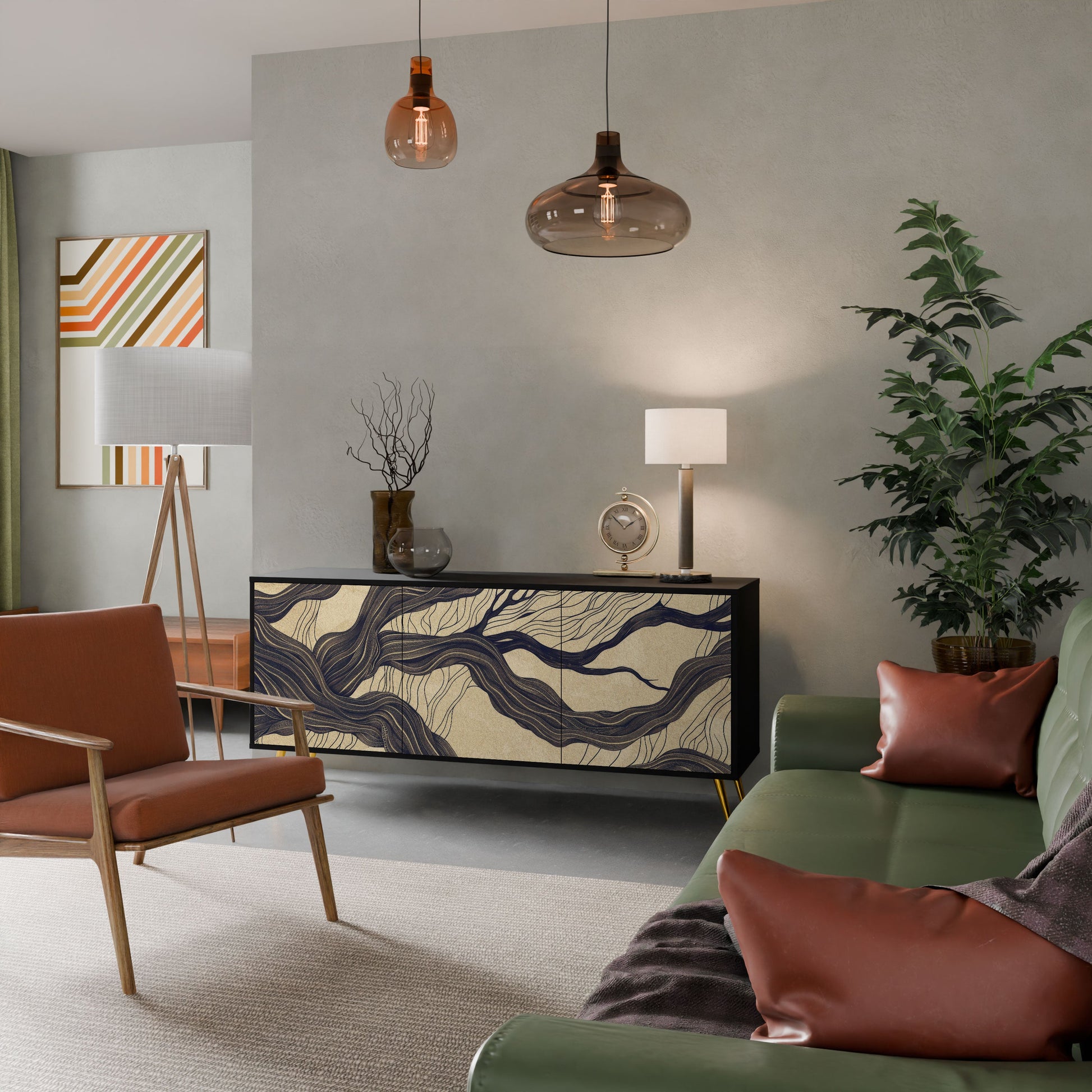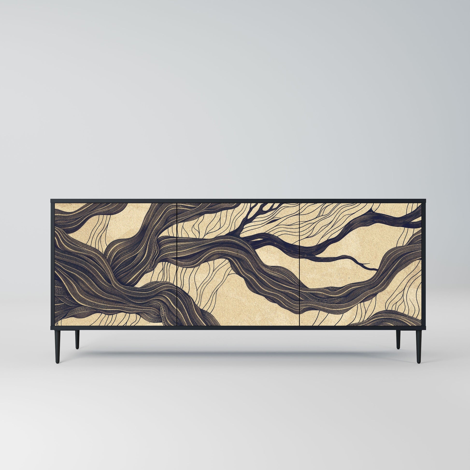Elegance and functionality in a single piece of furniture – our 3-Door Sideboard with a black body is the perfect solution for lovers of stylish, modern interiors. The black body emphasizes the bold character of the furniture, while the fronts with a unique print add an artistic touch. It fits perfectly in the living room, bedroom, or office, complementing both modern and industrial arrangements.