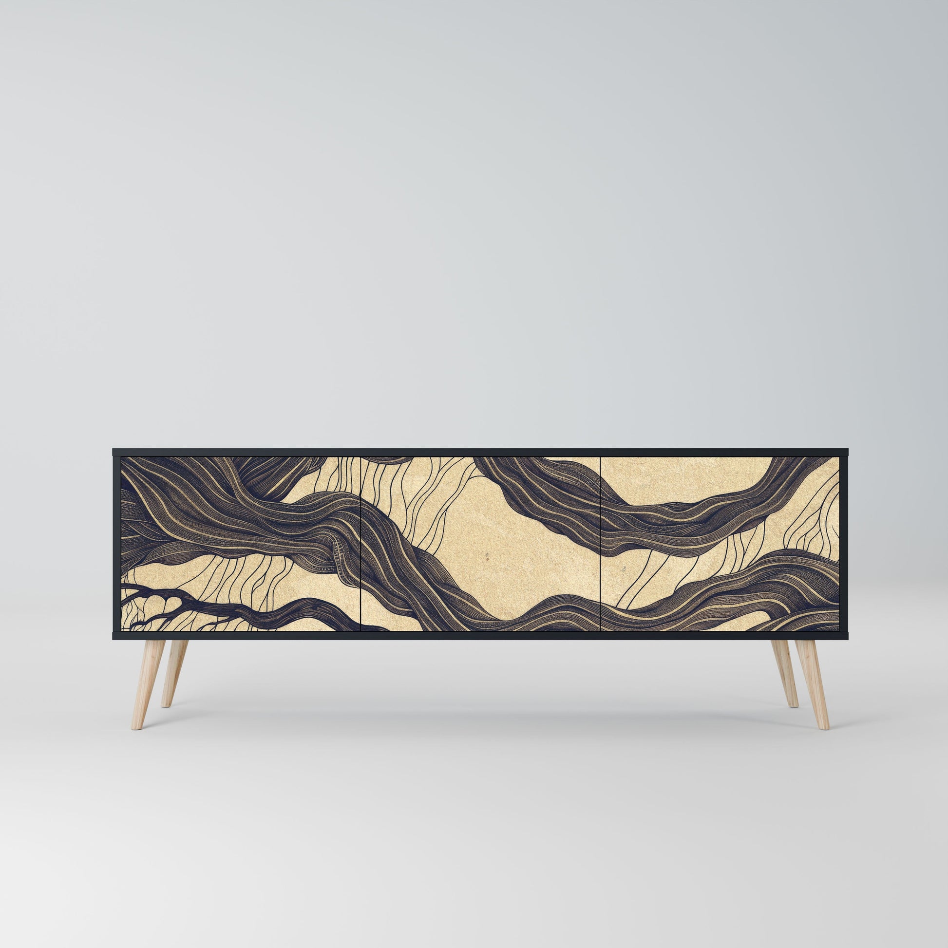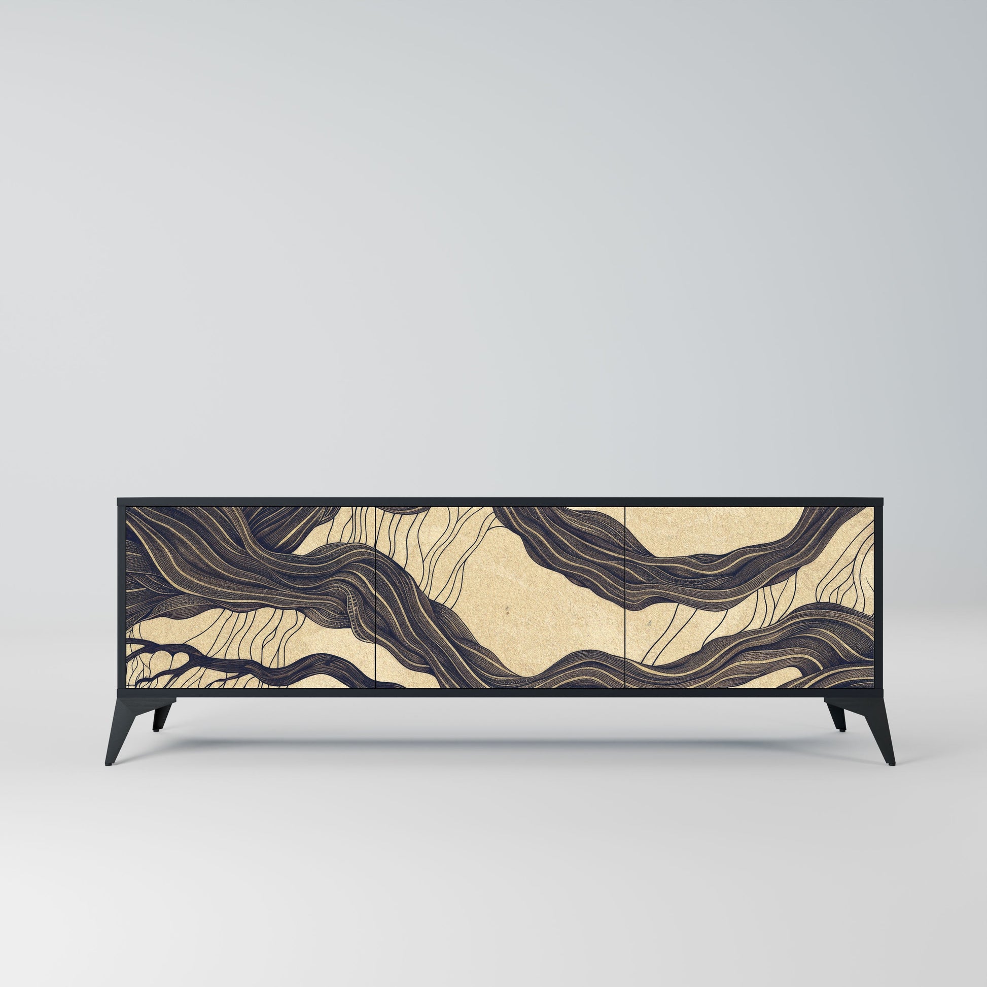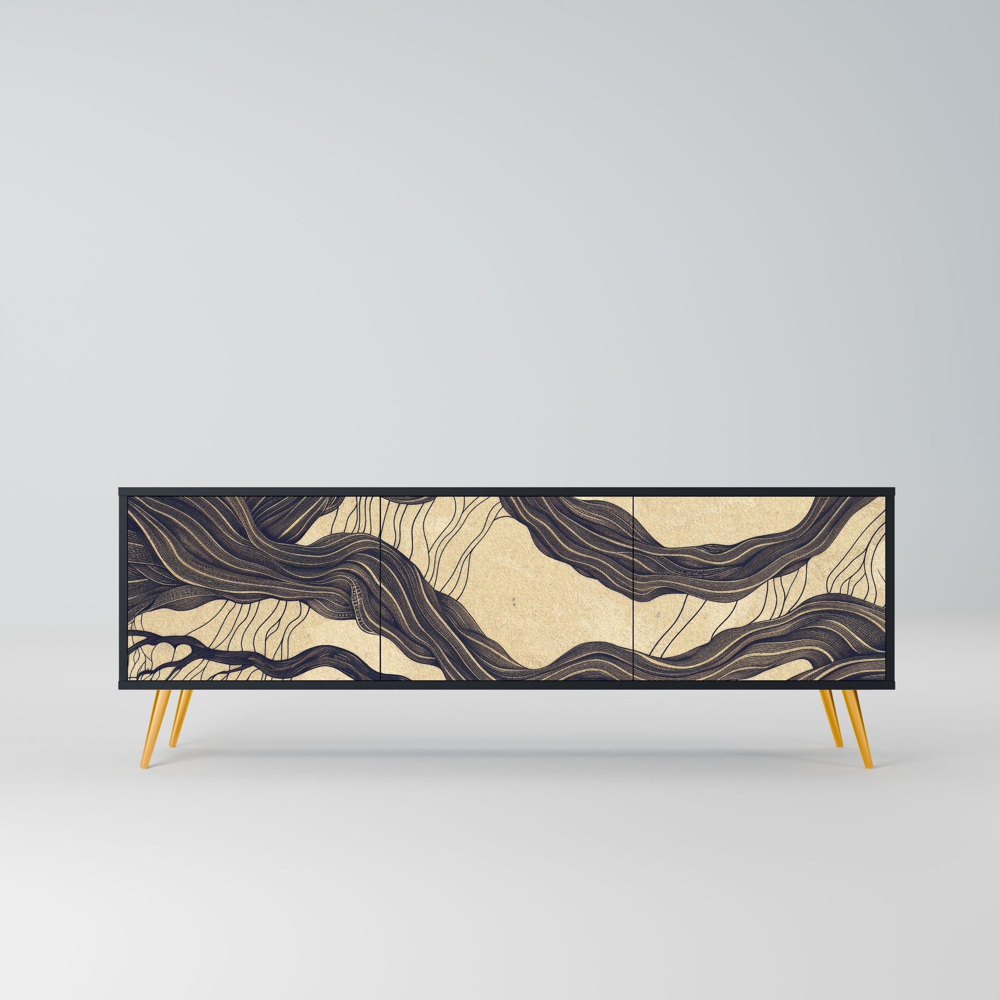 UNIFIED FRAGMENTS 3-Door TV Stand in Black Finish