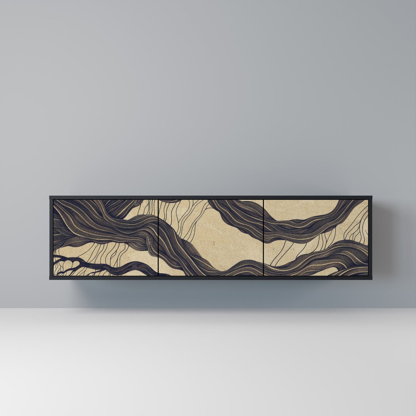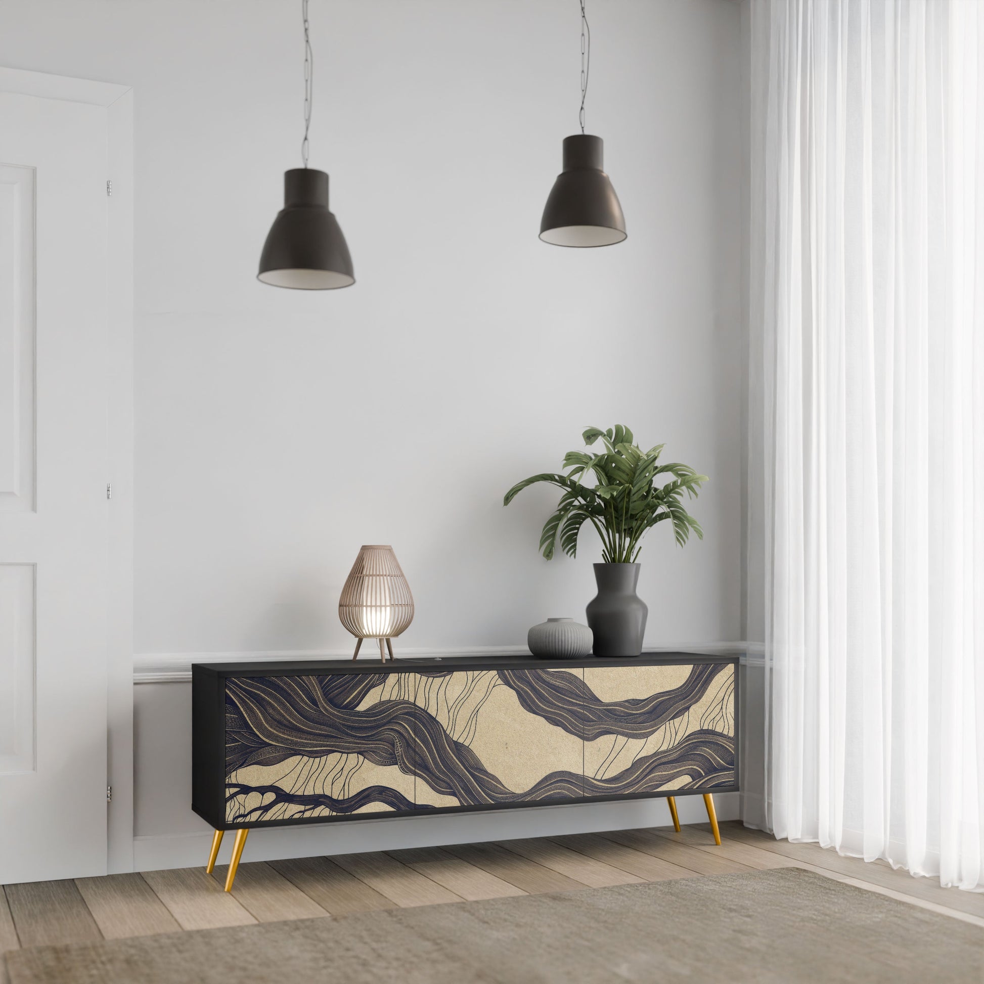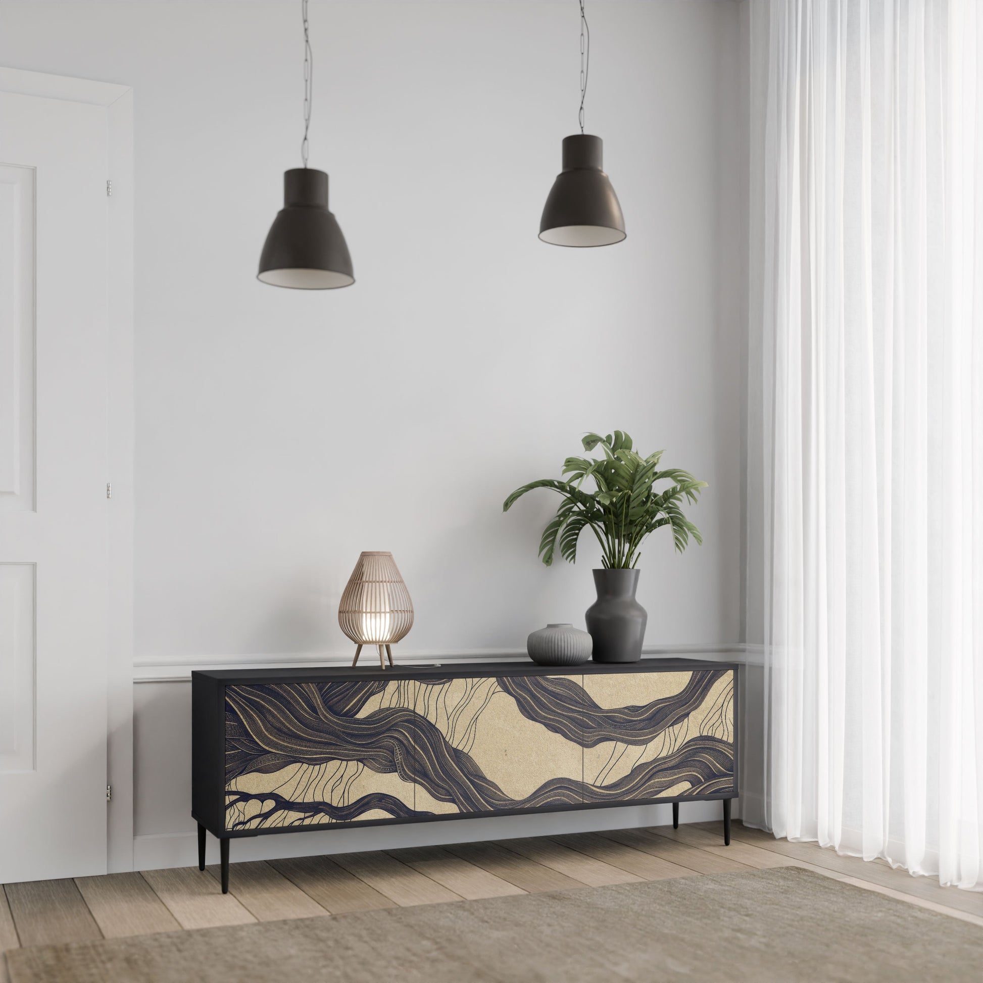 UNIFIED FRAGMENTS 3-Door TV Stand in Black Finish