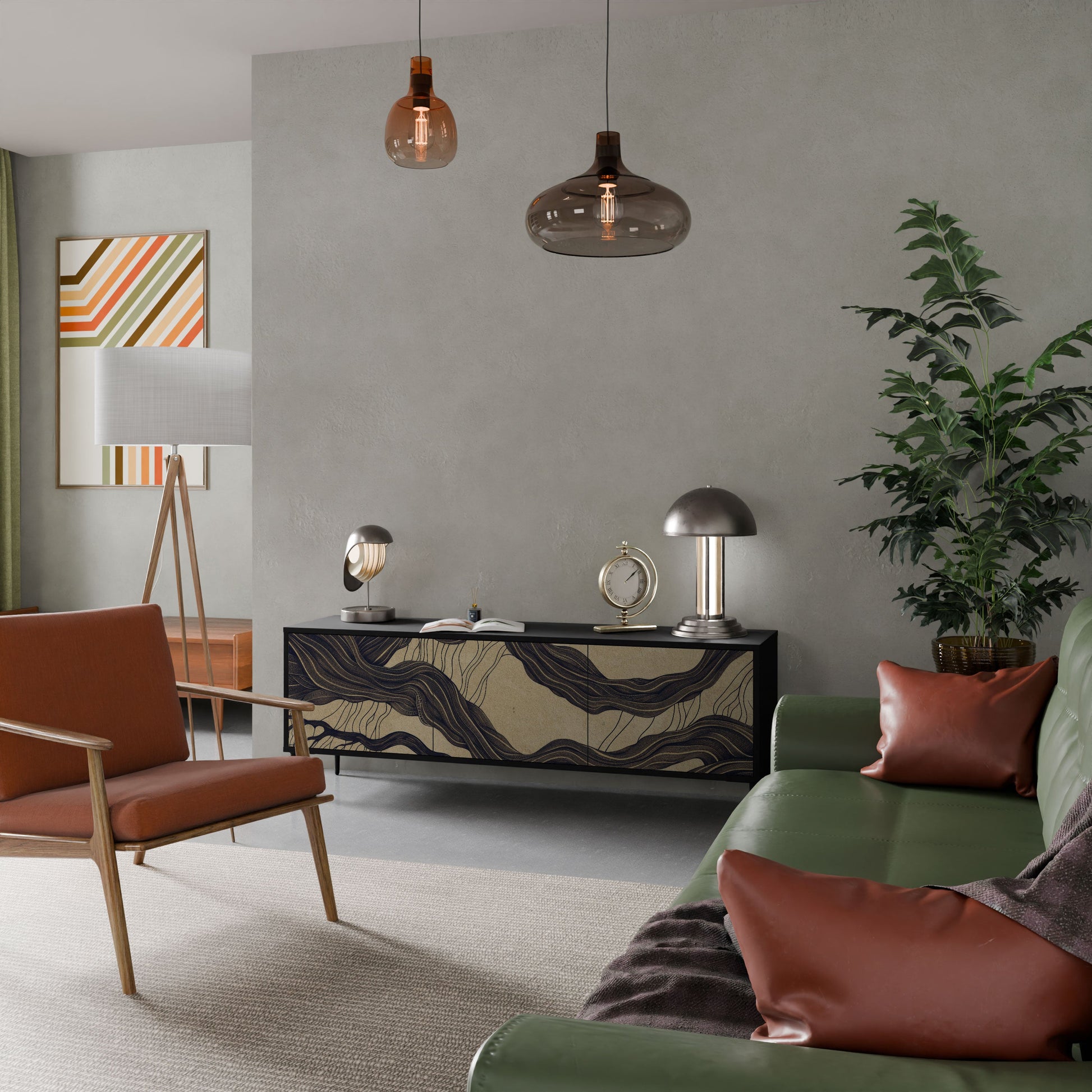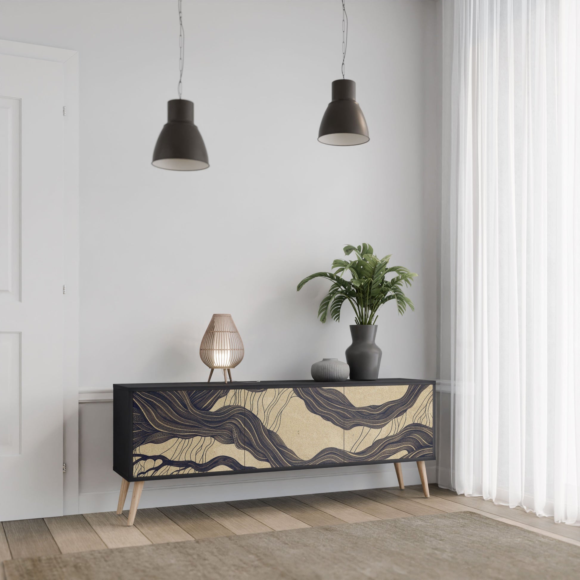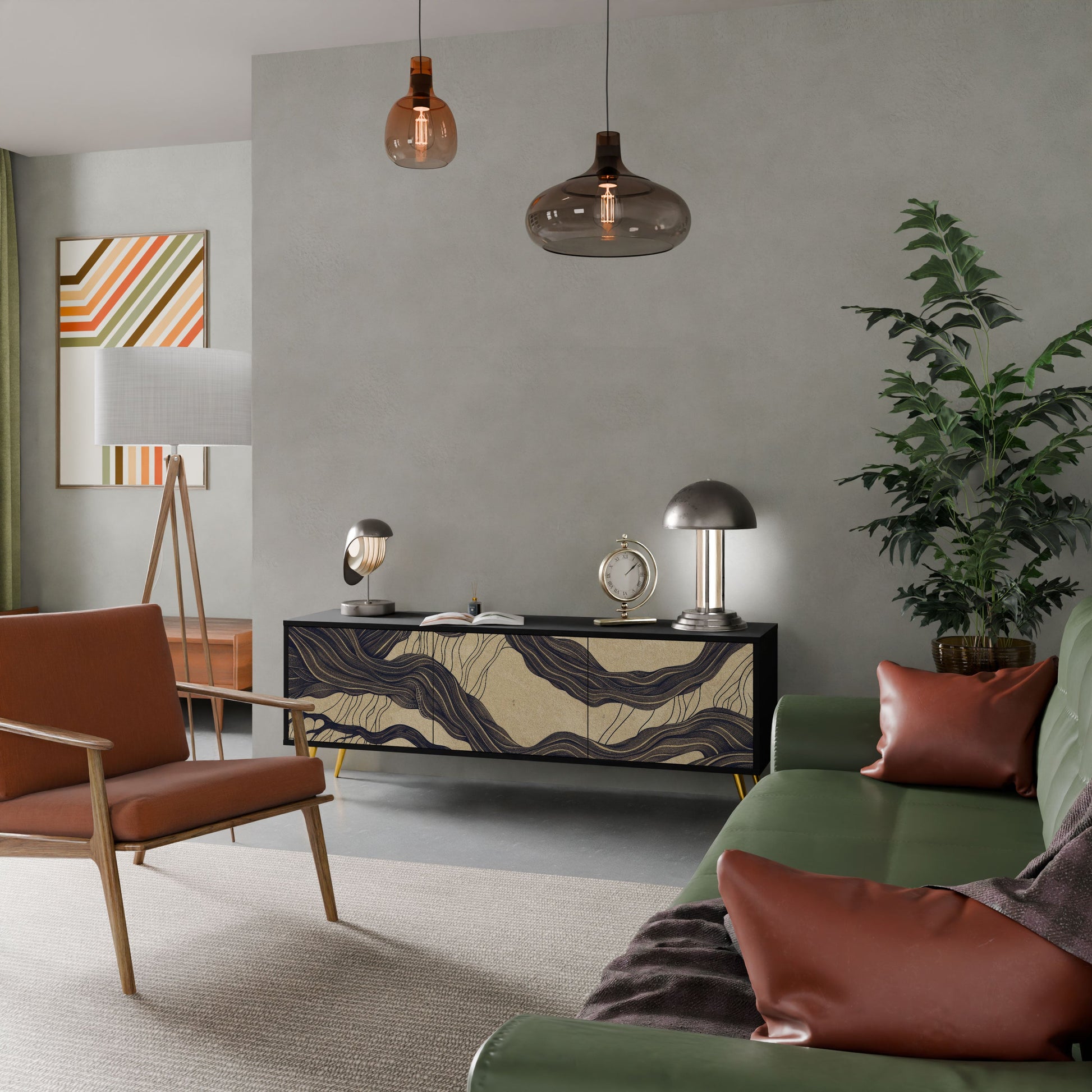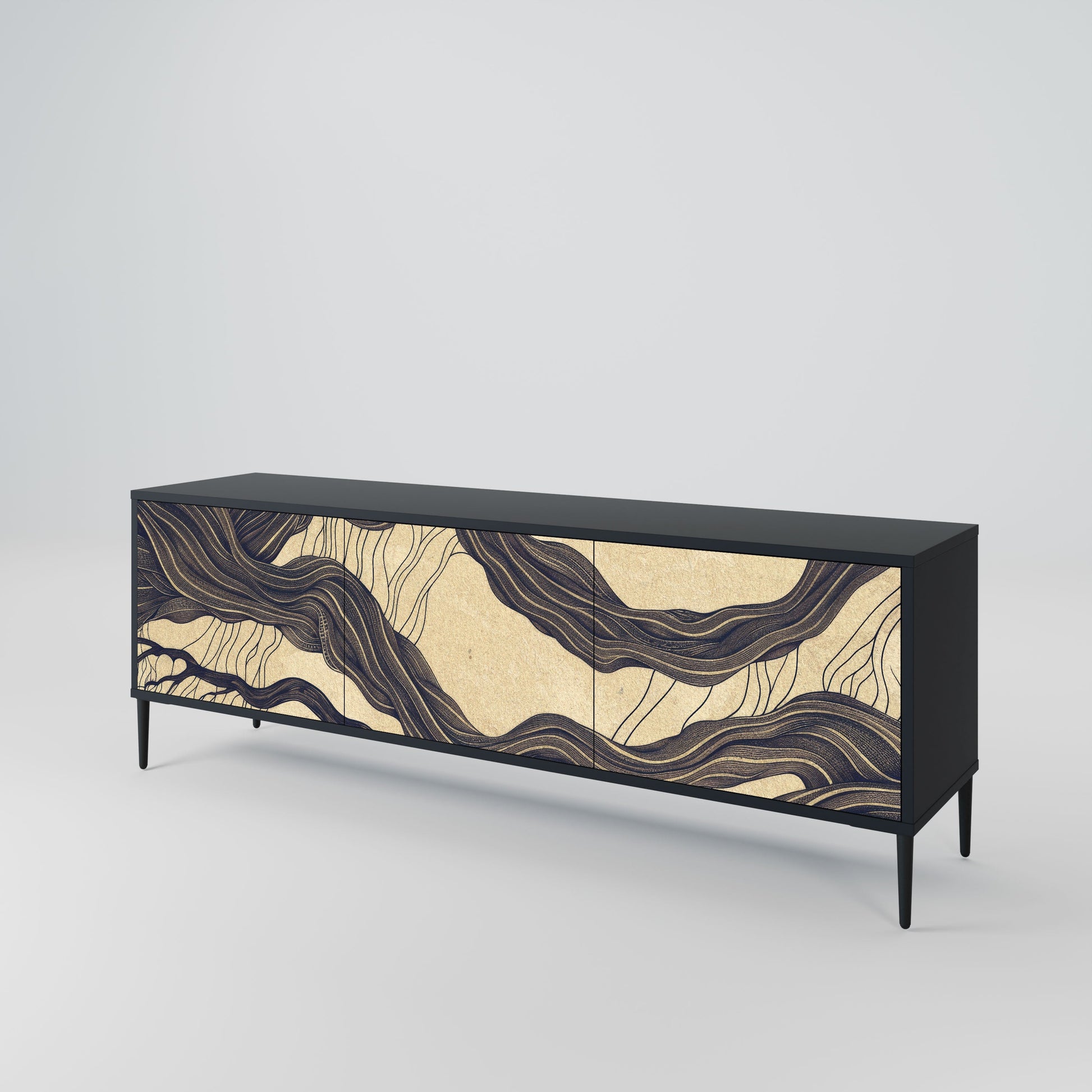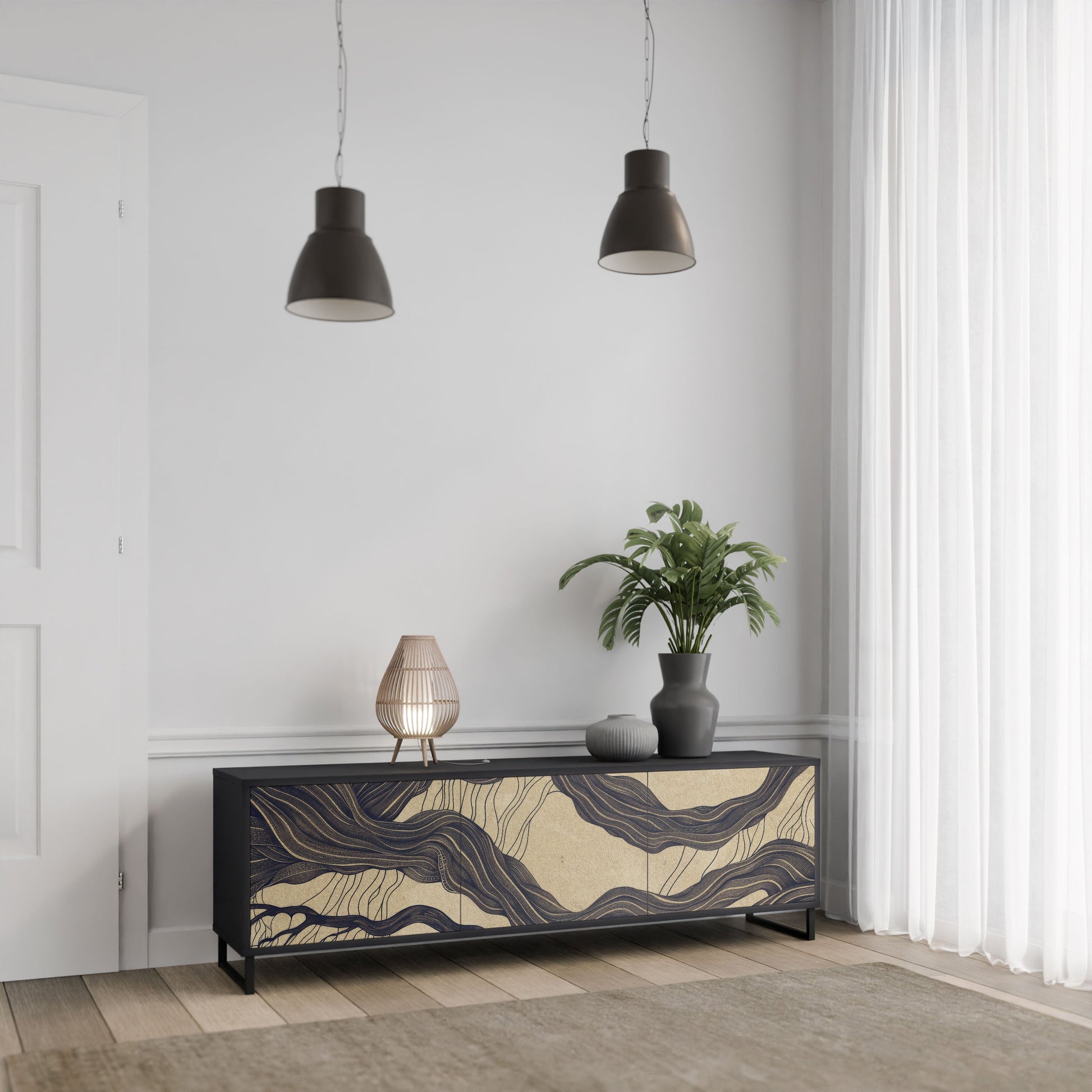 The black body of the stand creates a bold, modern accent that pairs beautifully with industrial and minimalist arrangements. The fronts with a designer print add character and uniqueness, making this piece not only practical but also a standout decorative element.