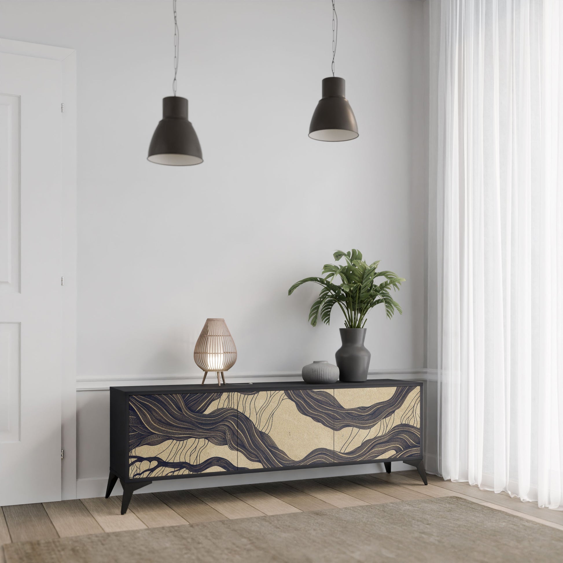 Discover the perfect blend of style and functionality! Our 3-door TV stand with a black body brings modern elegance and maximum storage space to your interior. It’s an ideal choice for the living room, offering a spot for your TV as well as space for electronic devices, accessories, and decorations.