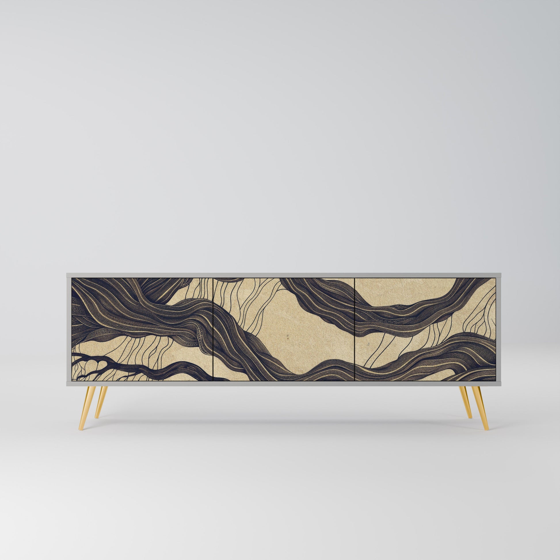 UNIFIED FRAGMENTS 3-Door TV Stand in Grey Finish