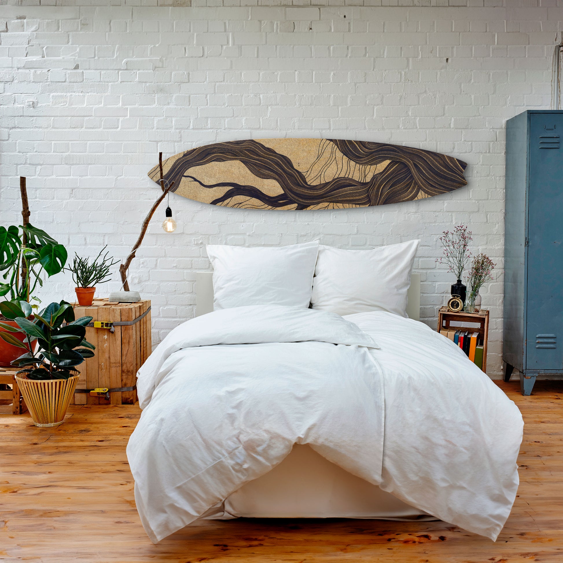 The modern print gives the surfboard a bold yet elegant look, while the subtle matte finish enhances its decorative quality. This surfboard is an excellent choice for living rooms, bedrooms, hallways, offices, and commercial spaces, where it draws attention and adds an individual, stylish touch to the interior.
