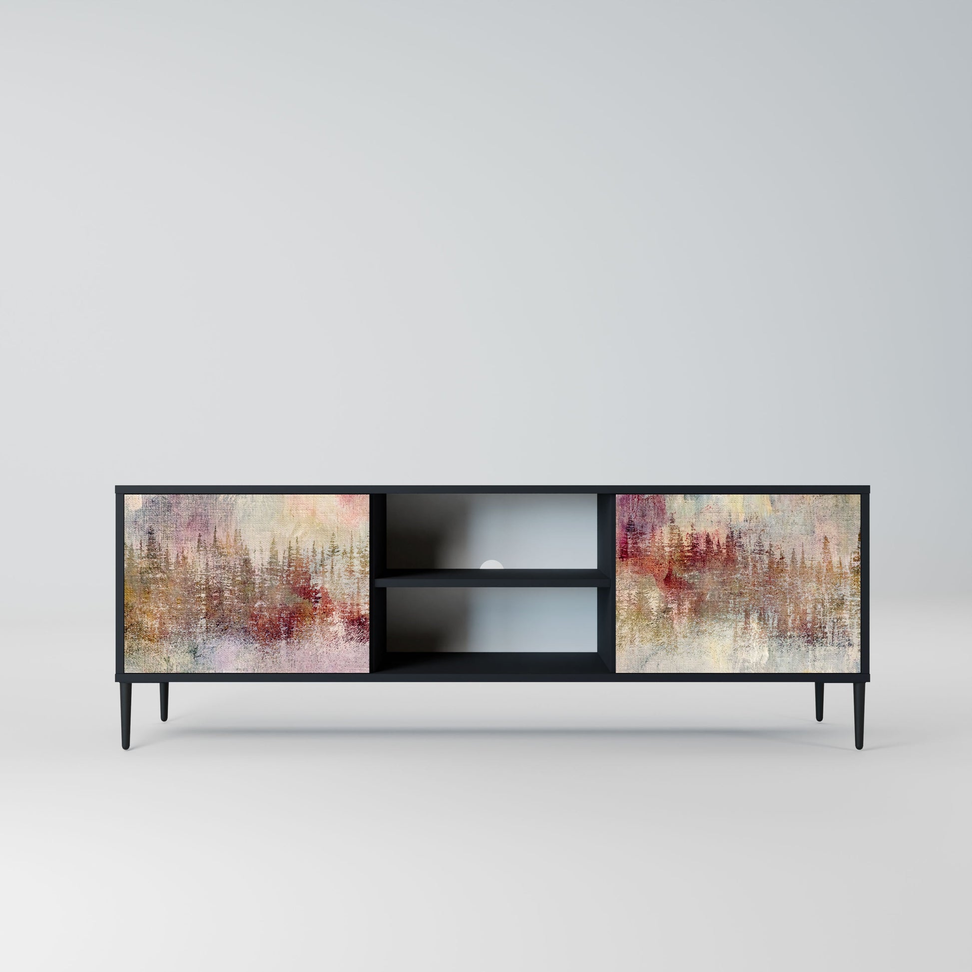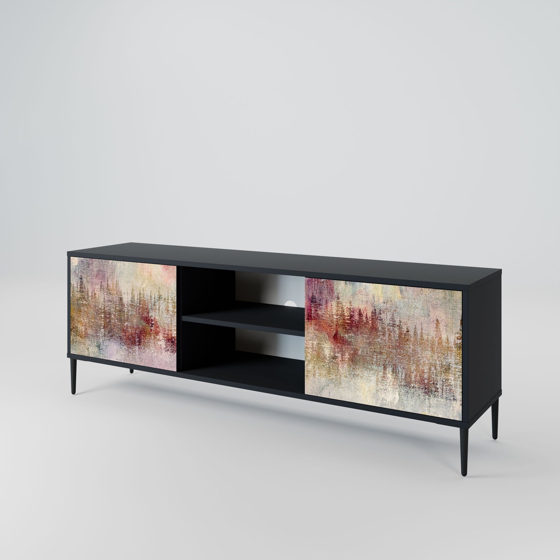 The black body gives the TV stand an elegant, modern look, while the fronts with an exceptional print draw attention, making it the focal point of any room. The spacious interior provides room for electronic devices, cables, remotes, and other accessories, helping you maintain order and organization.