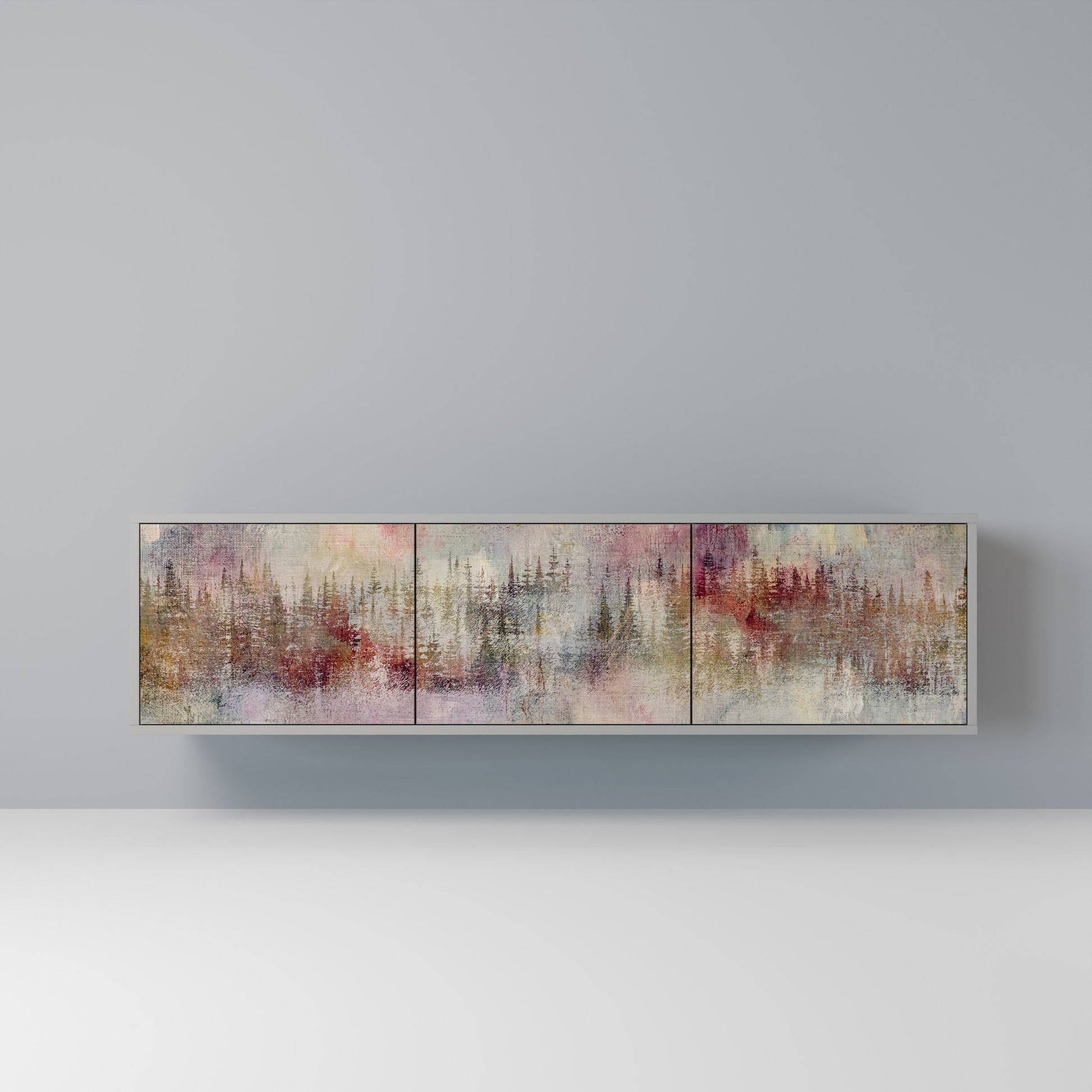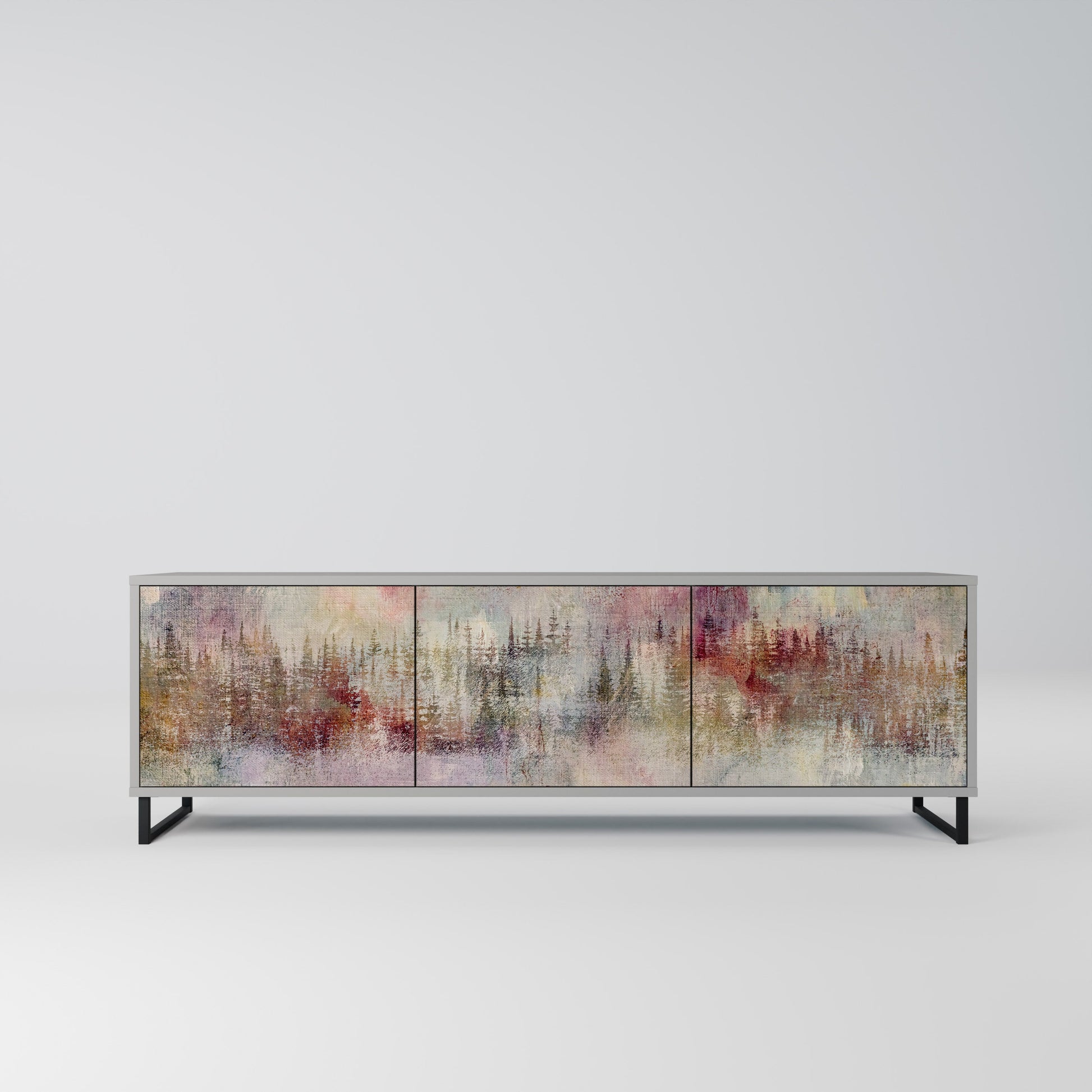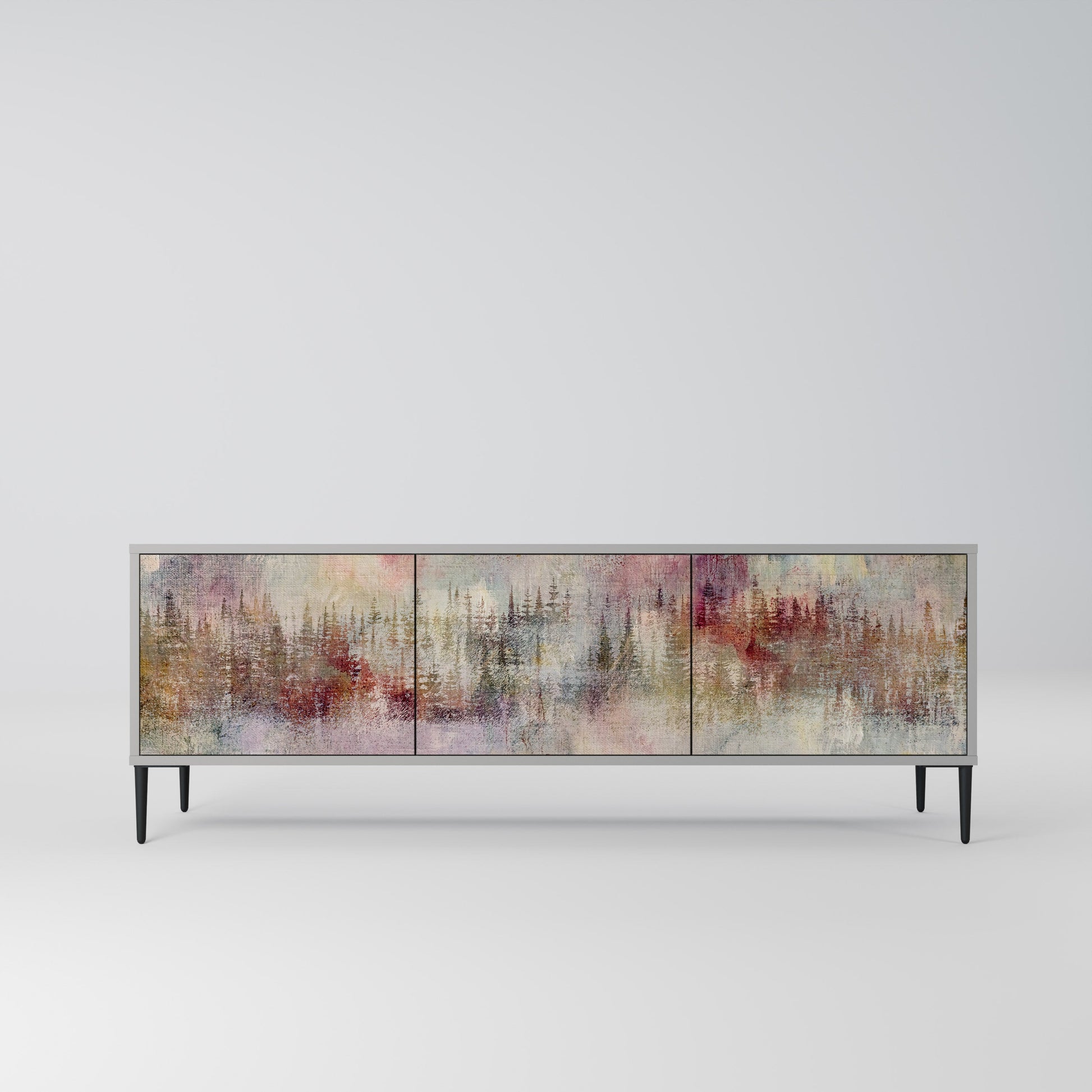 The grey body of the stand creates a refined, modern accent that pairs beautifully with industrial and minimalist arrangements. The fronts with a designer print add character and uniqueness, making this piece not only practical but also a standout decorative element.