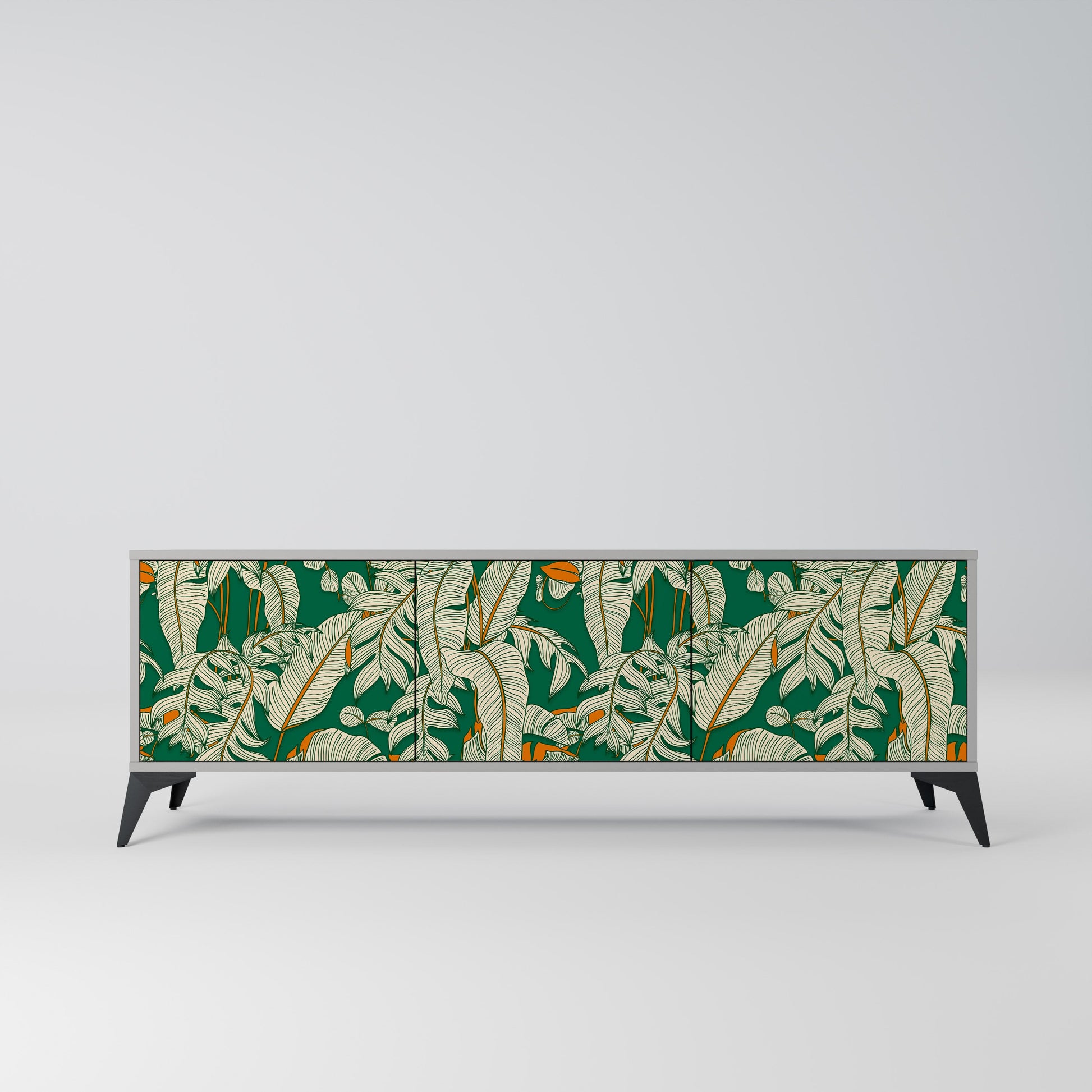 The grey body of the stand creates a refined, modern accent that pairs beautifully with industrial and minimalist arrangements. The fronts with a designer print add character and uniqueness, making this piece not only practical but also a standout decorative element.