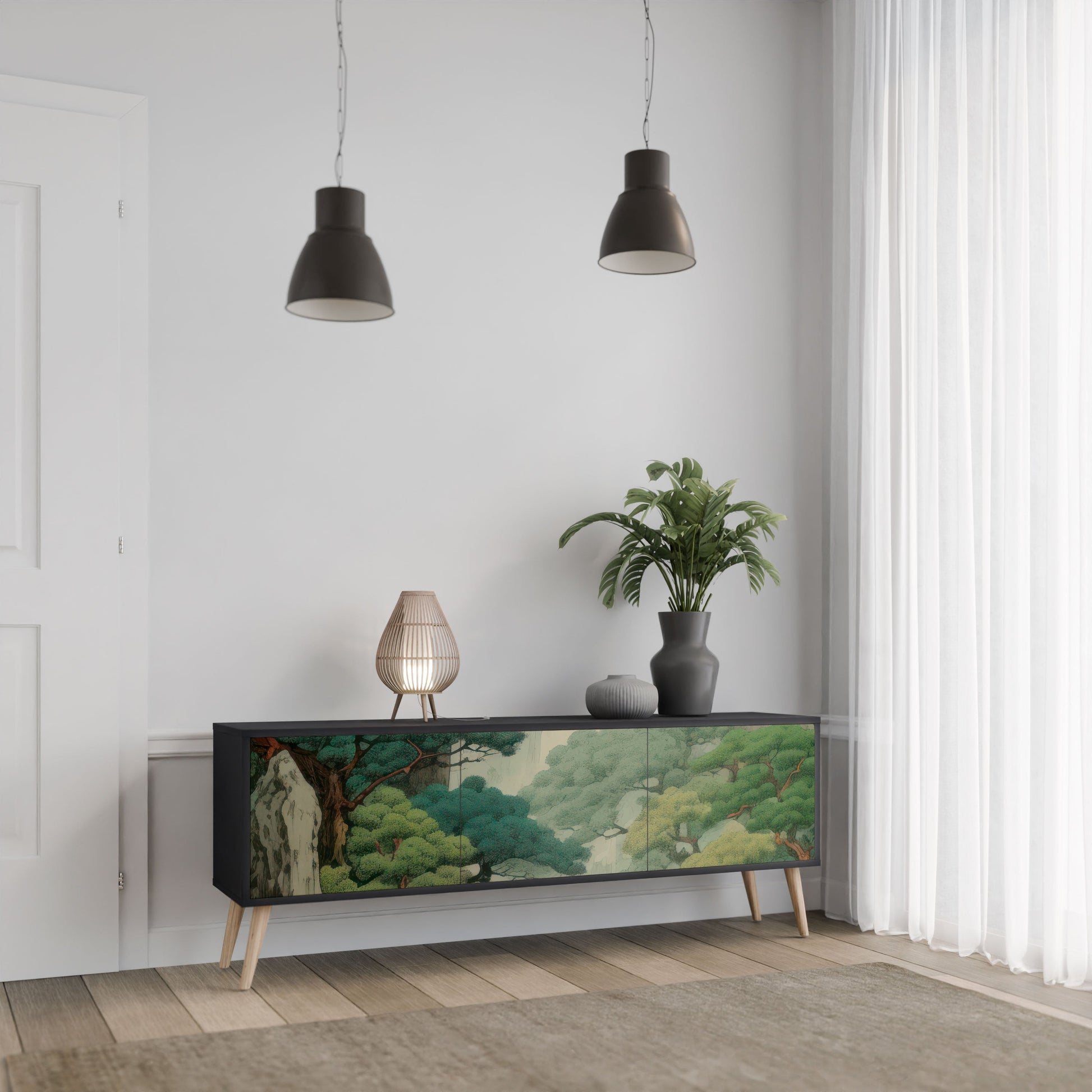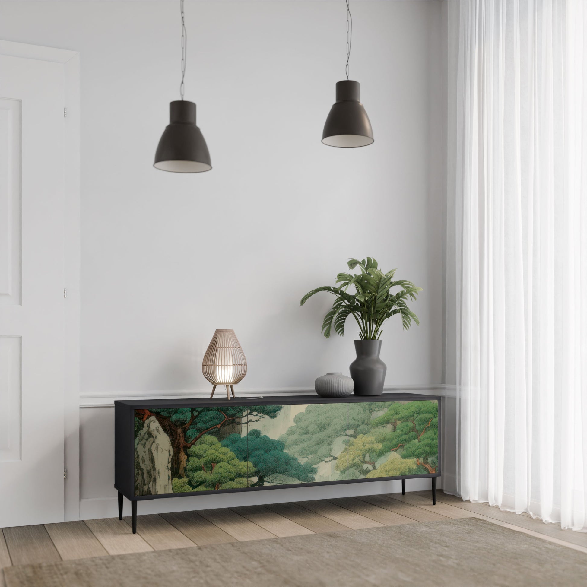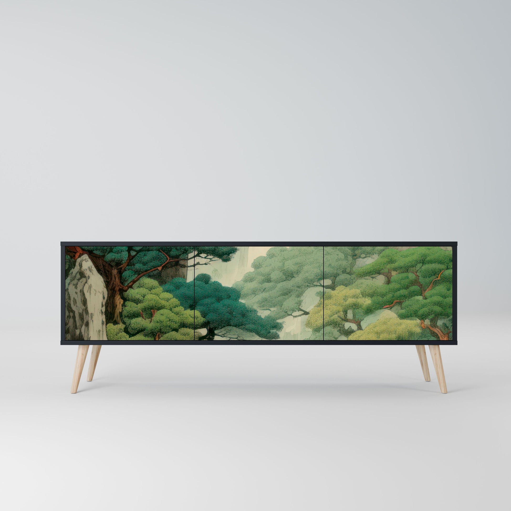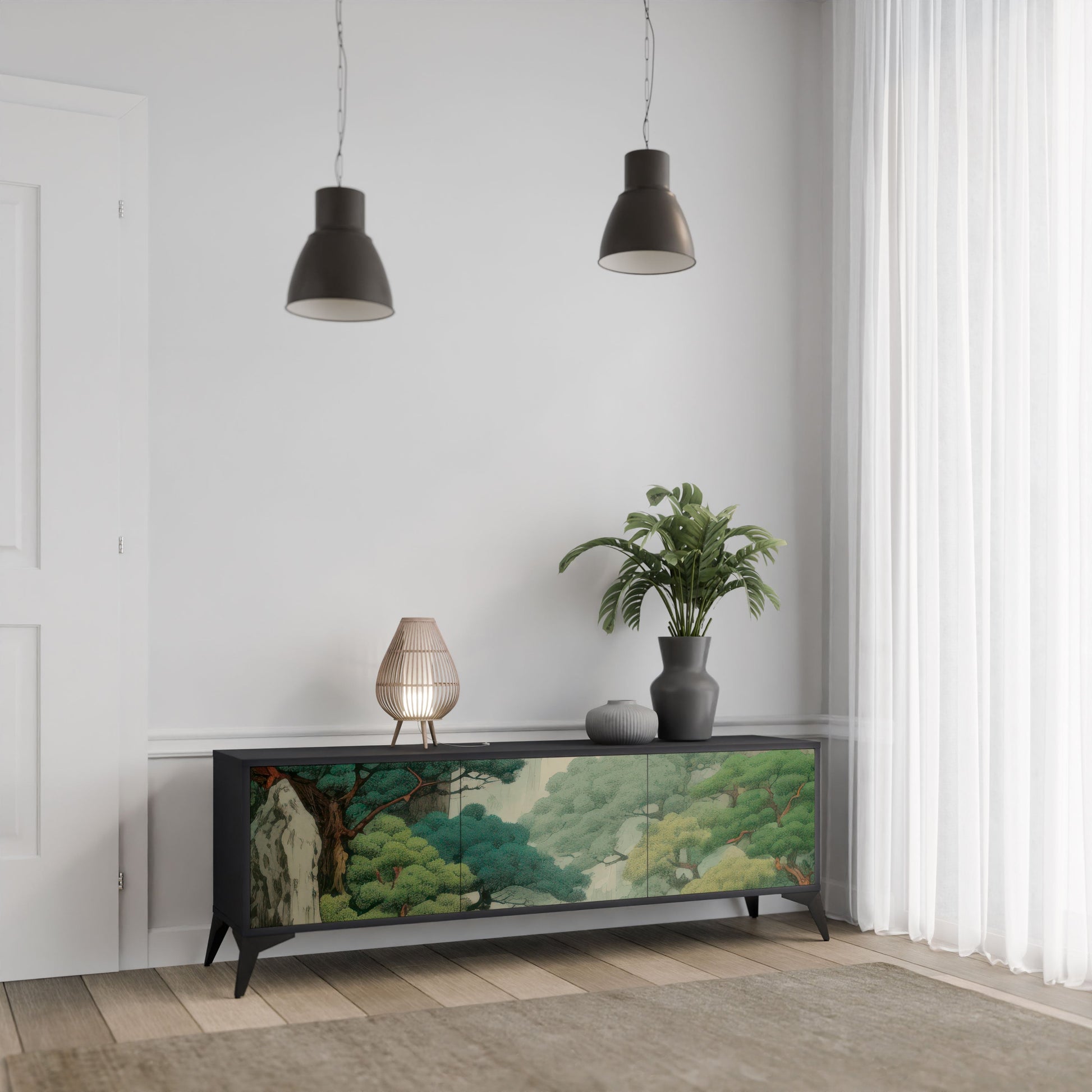 VERDURE ABYSS 3-Door TV Stand in Black Finish