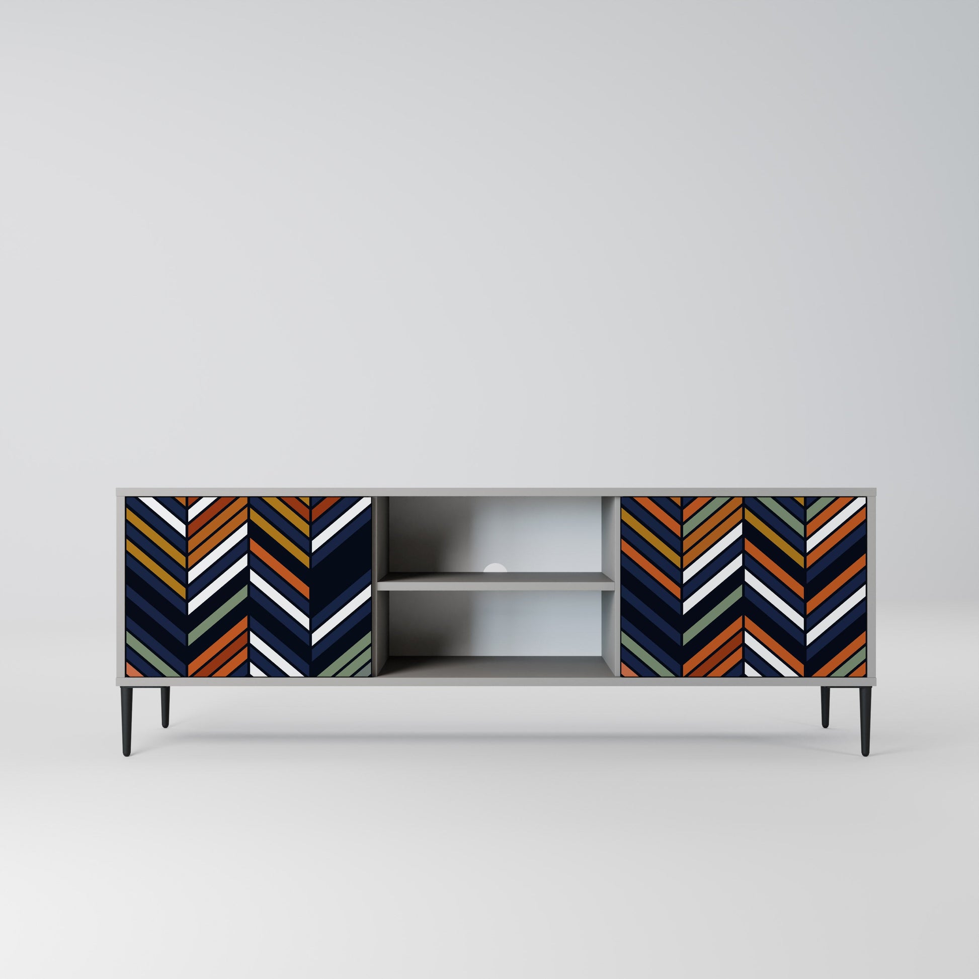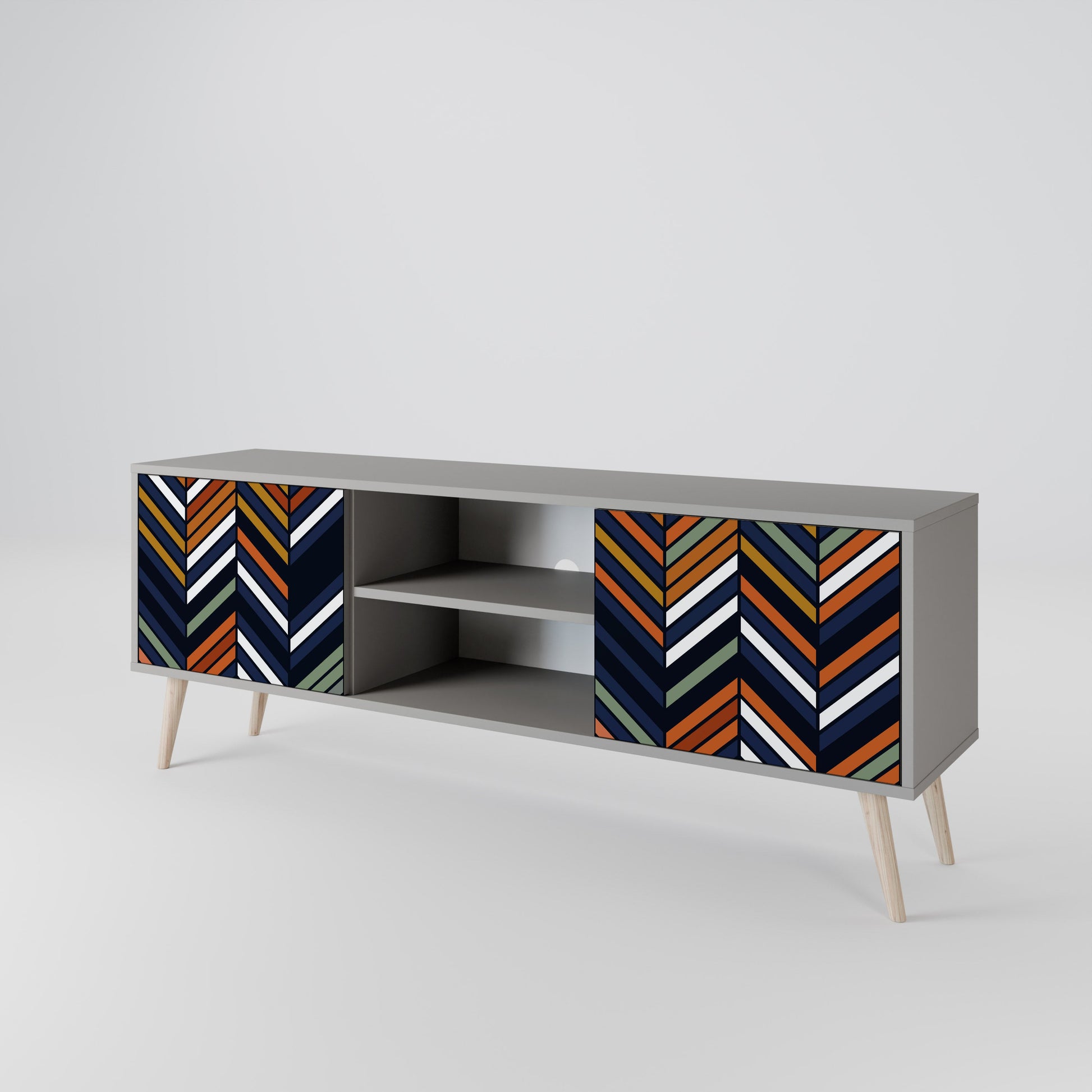 The grey body lends the TV stand a contemporary, refined look, while the fronts with an exceptional print capture attention, becoming the focal point of any room. The spacious interior provides room for electronic devices, cables, remotes, and other accessories, helping you maintain order and organization.