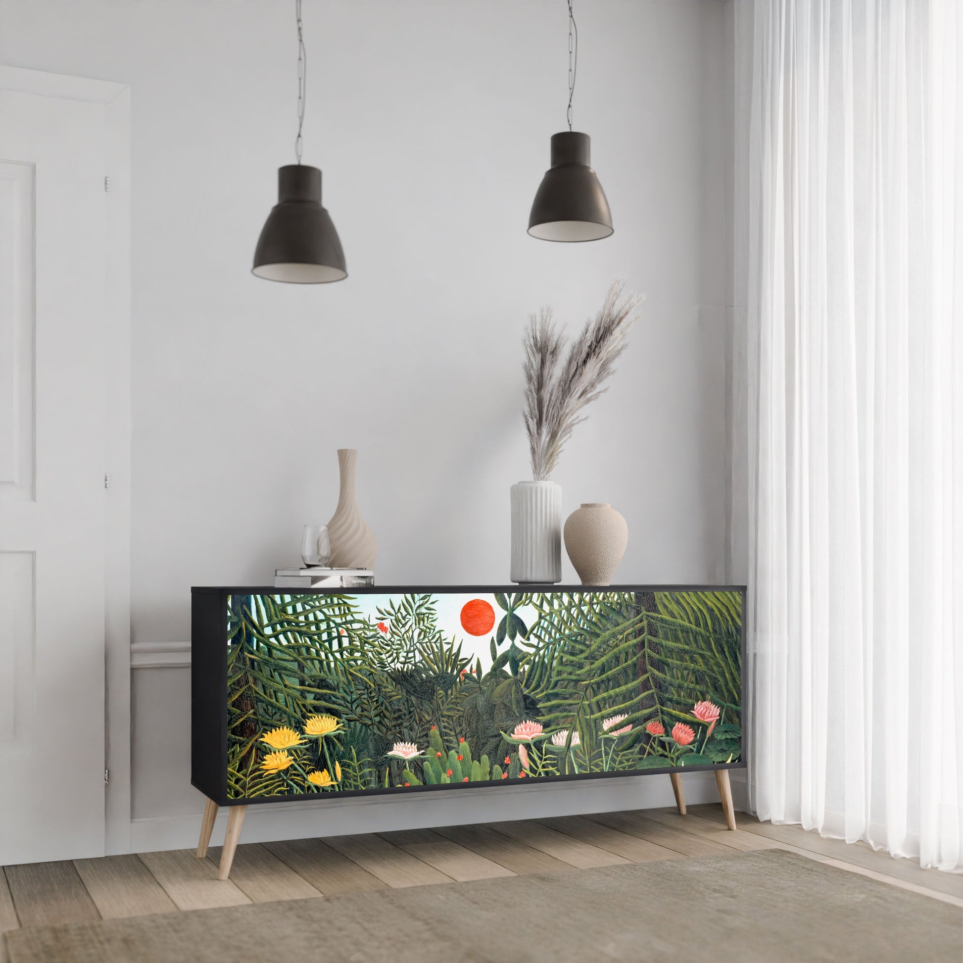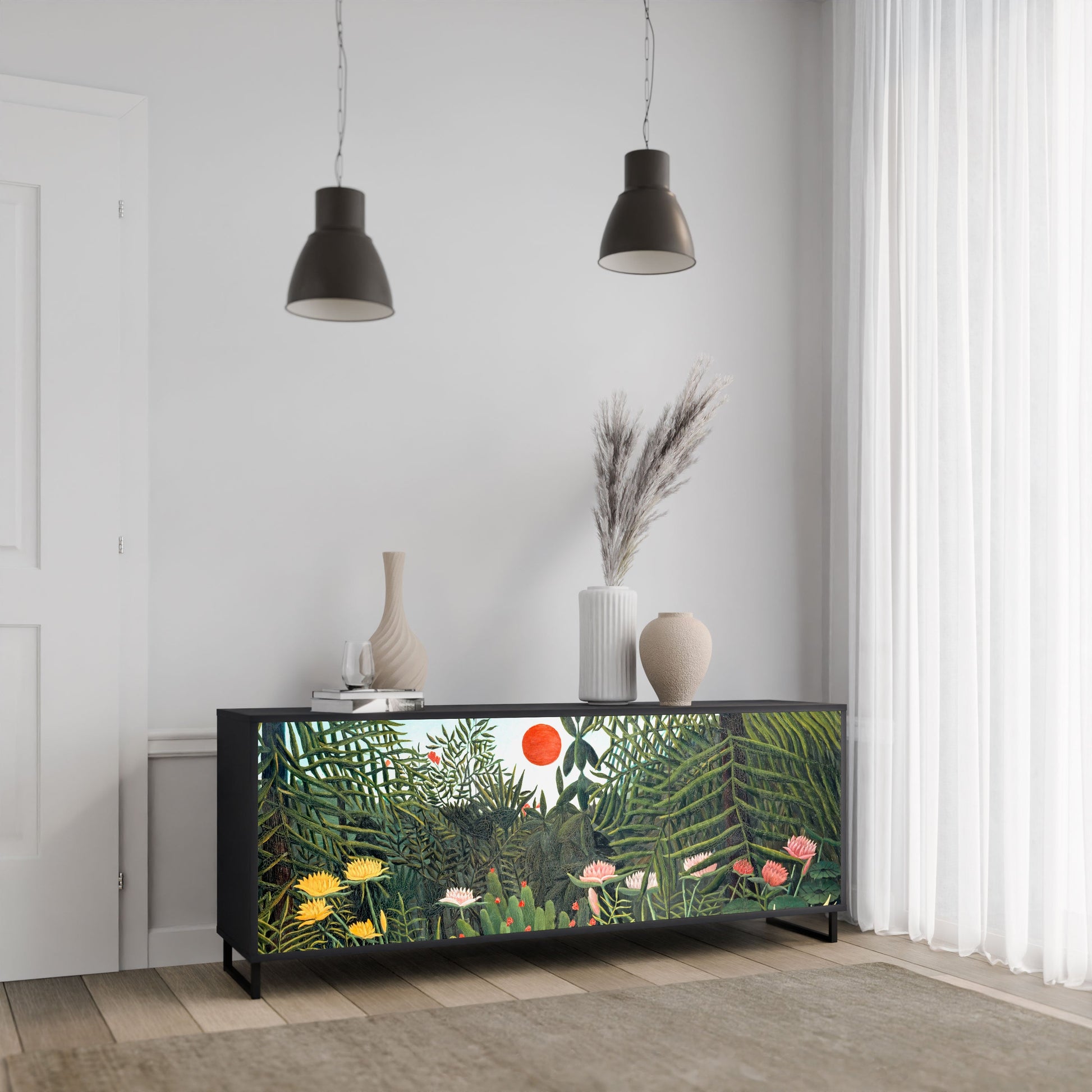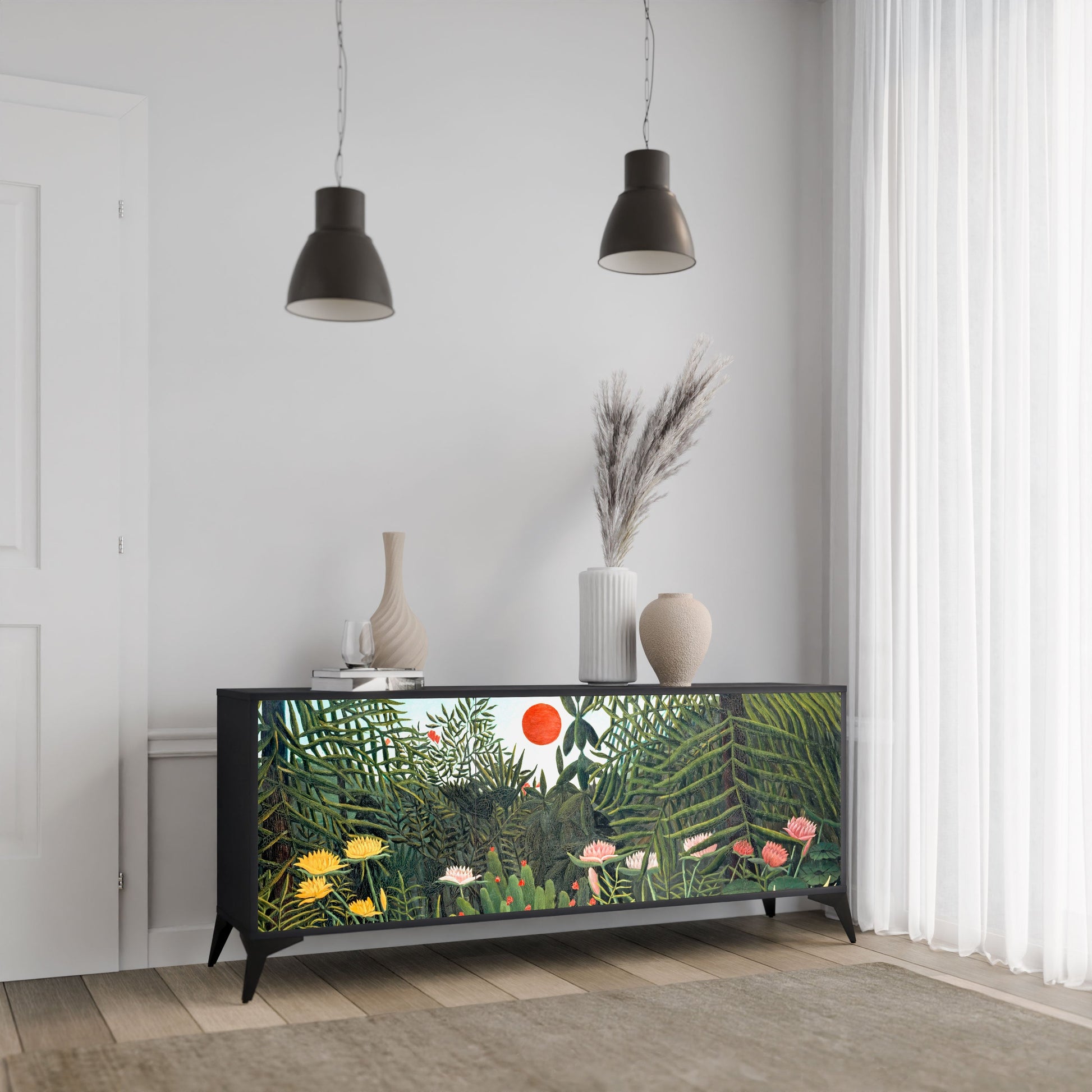 VIRGIN FOREST WITH SUNSET 3-Door Sideboard in Black Finish