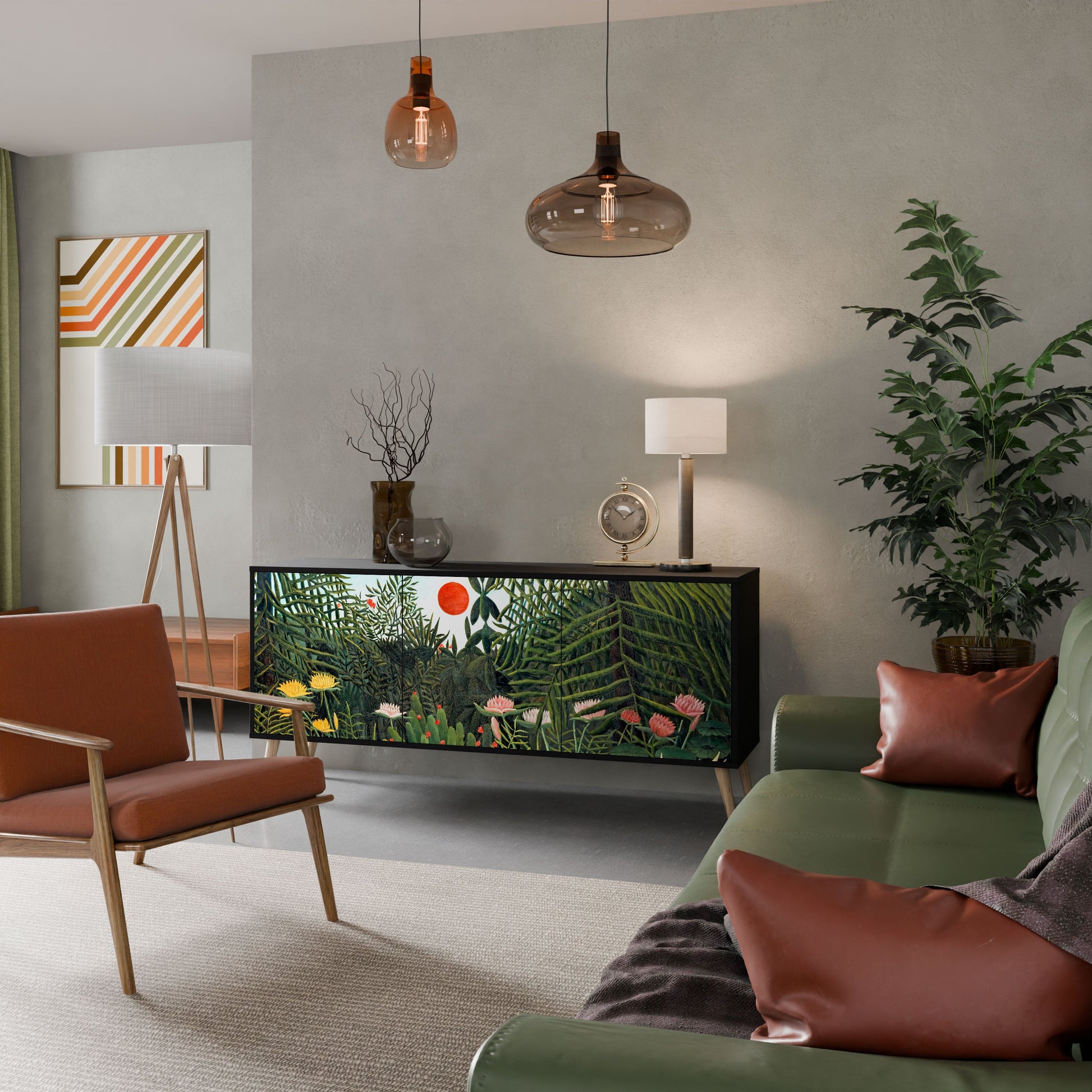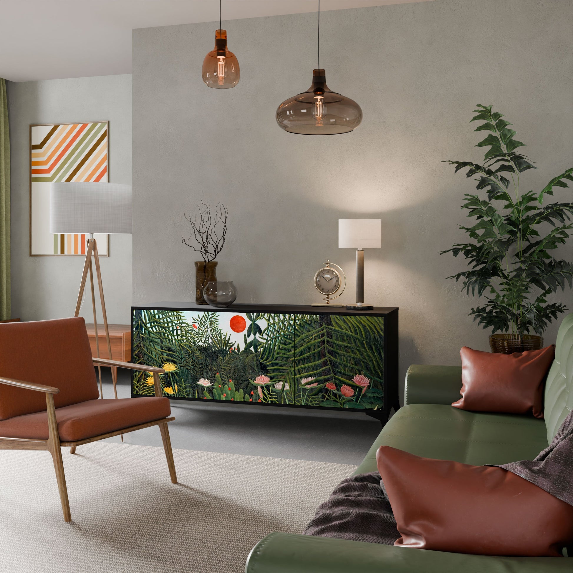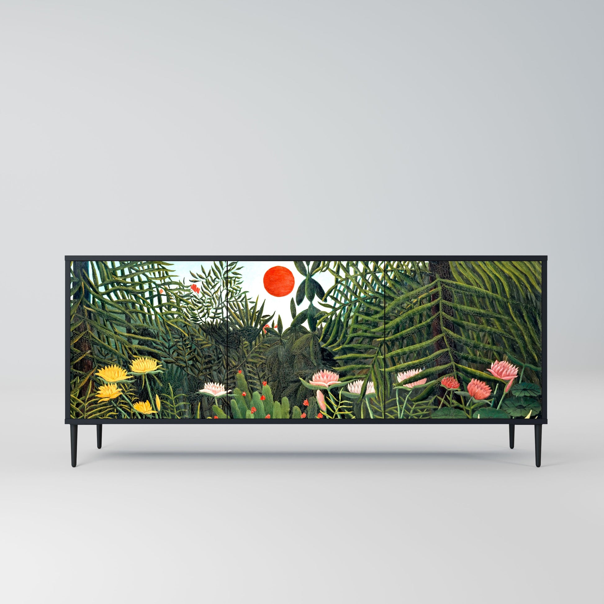VIRGIN FOREST WITH SUNSET 3-Door Sideboard in Black Finish