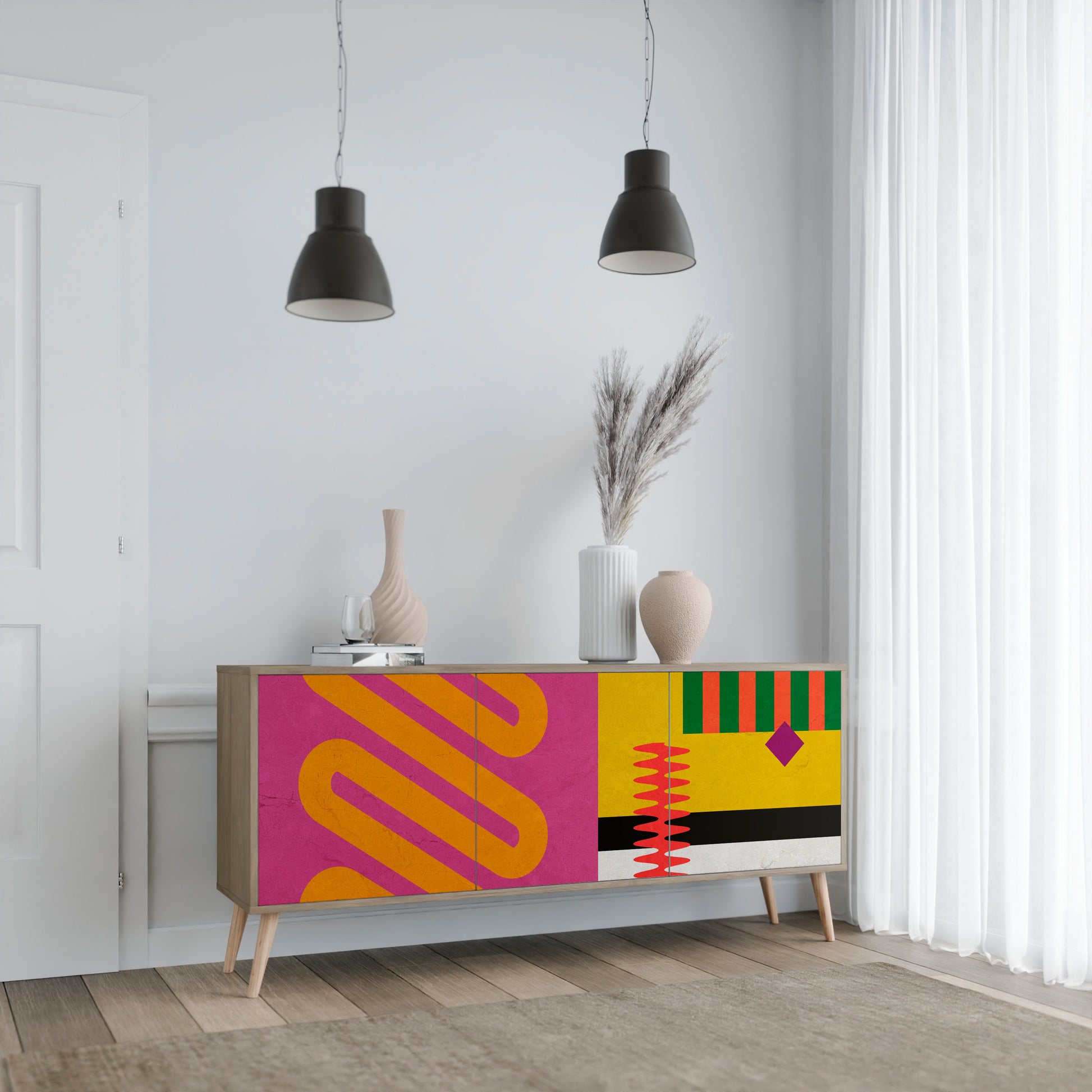 Discover the elegance and natural beauty of wood with our 3-door sideboard in oak finish. This stylish piece combines the sturdiness of a wooden body with the aesthetic detail of printed front doors, creating a cohesive and attractive design. Perfect for both the living room and bedroom, this sideboard adds a touch of class and functionality to any interior.