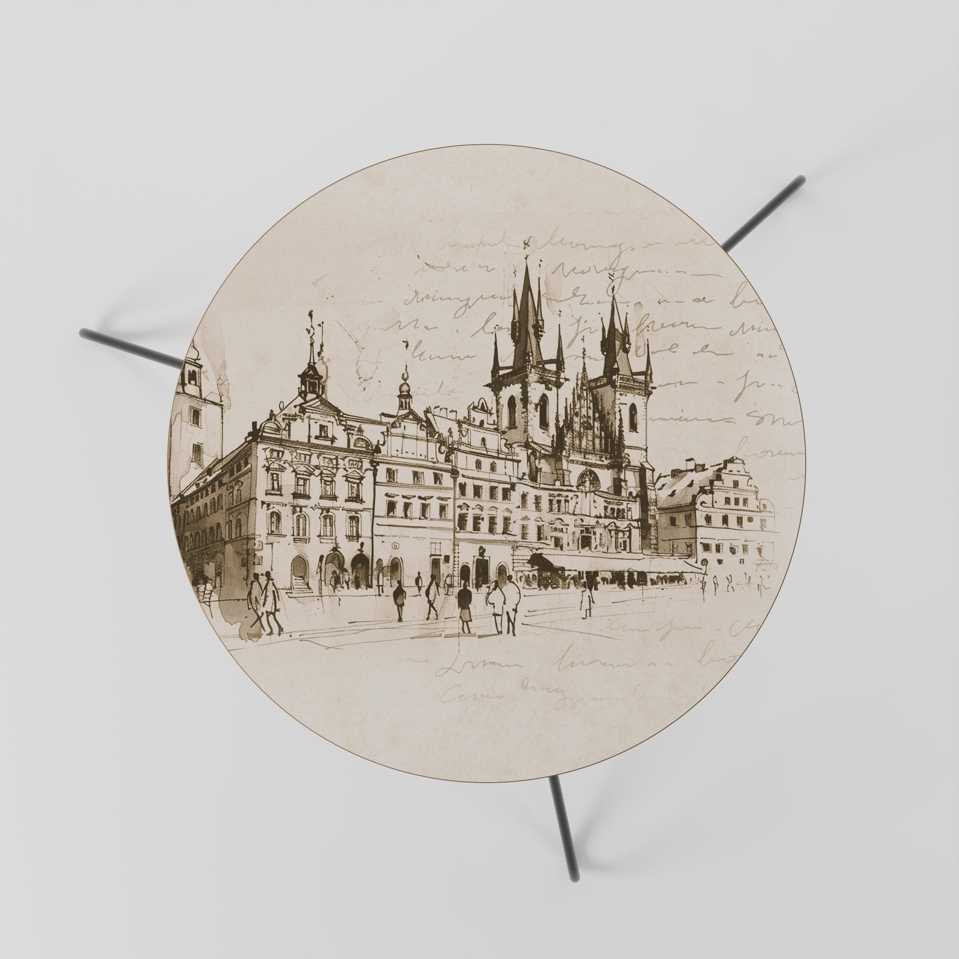 The tabletop features a high-quality printed motif, adding a distinctive artistic accent to your space. Crafted from durable chipboard covered with laminate, it ensures long-lasting use and resistance to daily wear.