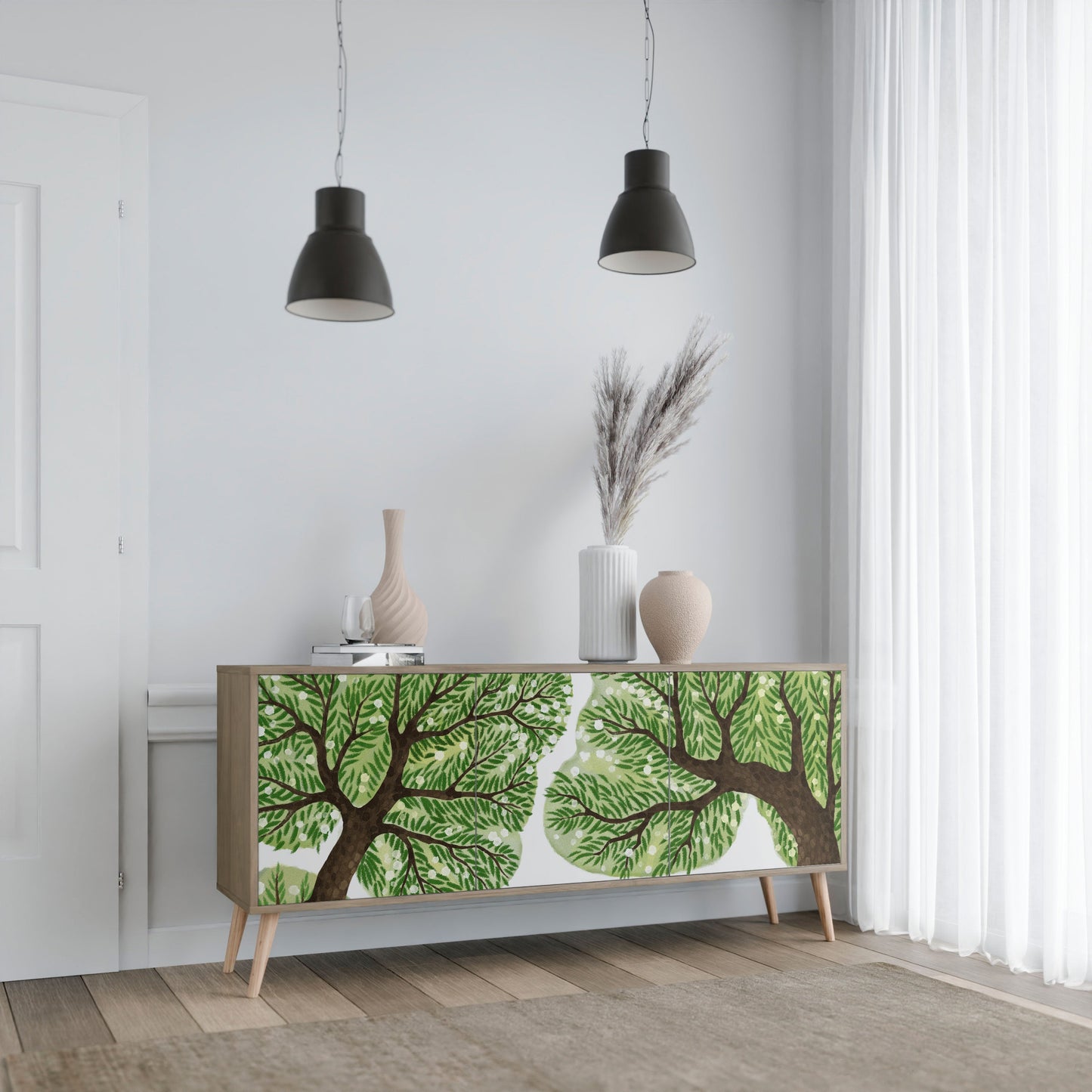 Discover the elegance and natural beauty of wood with our 3-door sideboard in oak finish. This stylish piece combines the sturdiness of a wooden body with the aesthetic detail of printed front doors, creating a cohesive and attractive design. Perfect for both the living room and bedroom, this sideboard adds a touch of class and functionality to any interior.