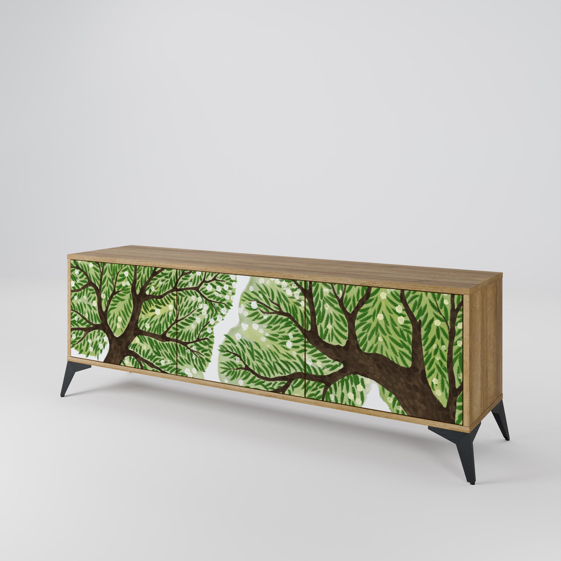 Discover the perfect solution for storage and organization with our 3-door TV stand. Crafted from durable materials, combining wooden legs with a laminated body, this cabinet is both stylish and functional. The wooden doors with an attractive print add a touch of elegance, making it an excellent choice for any interior.