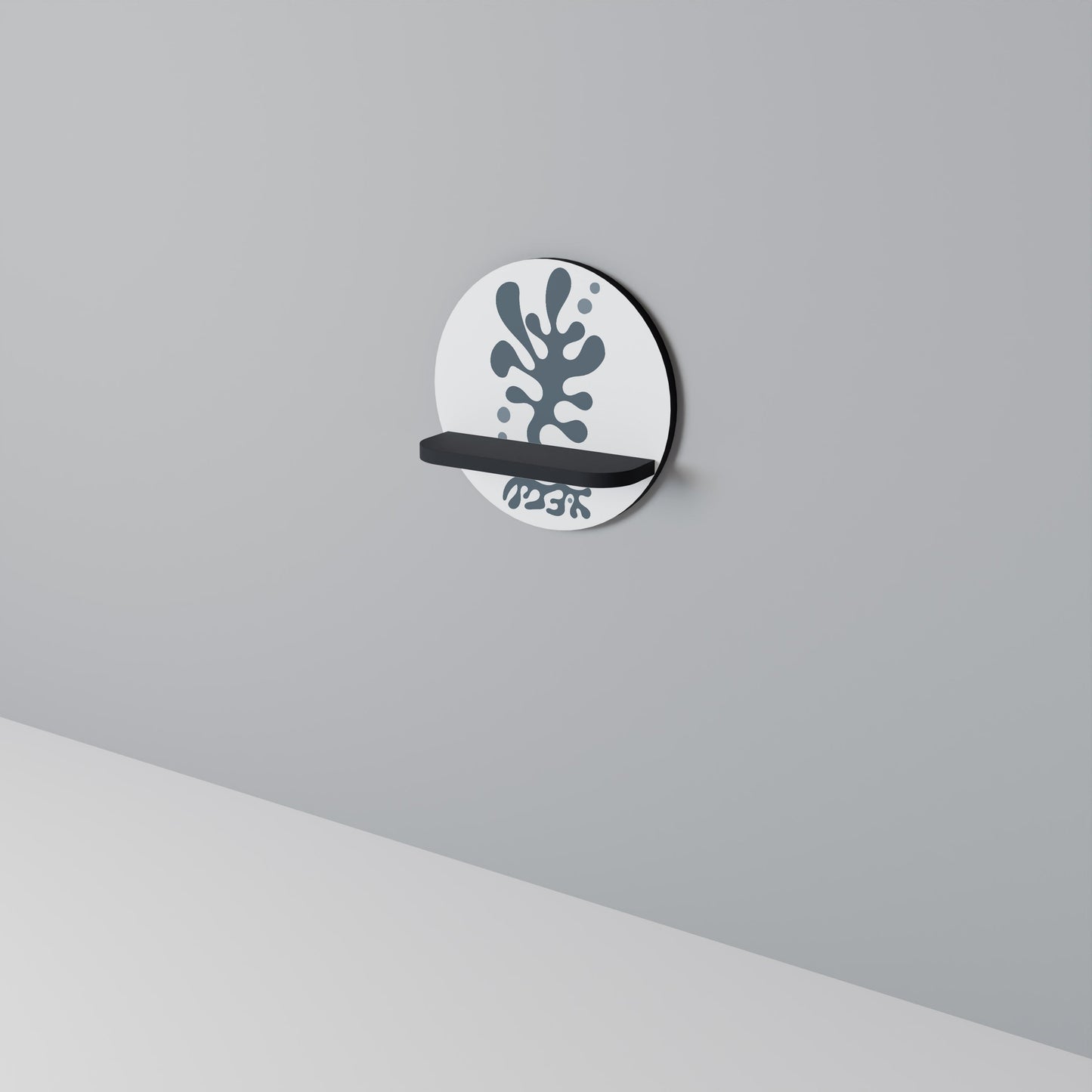 The shelf captivates with its smooth, round shape, adding a sense of balance and sophistication to any space. The deep black finish introduces a touch of contemporary elegance and visual contrast, making it a striking addition to both minimalist and industrial-style interiors.