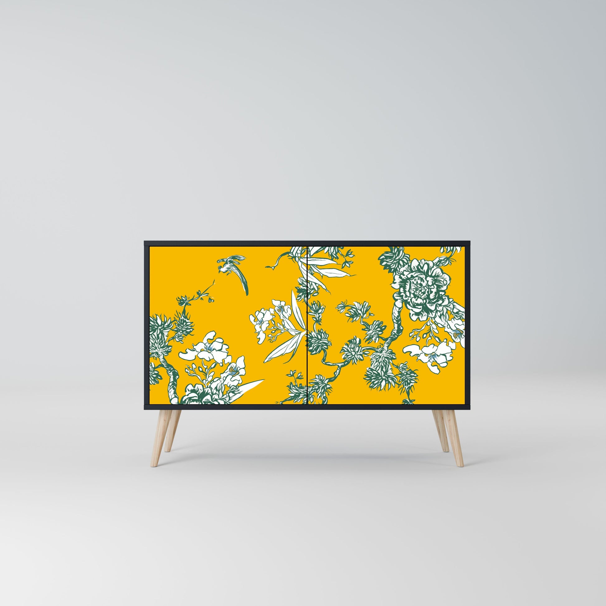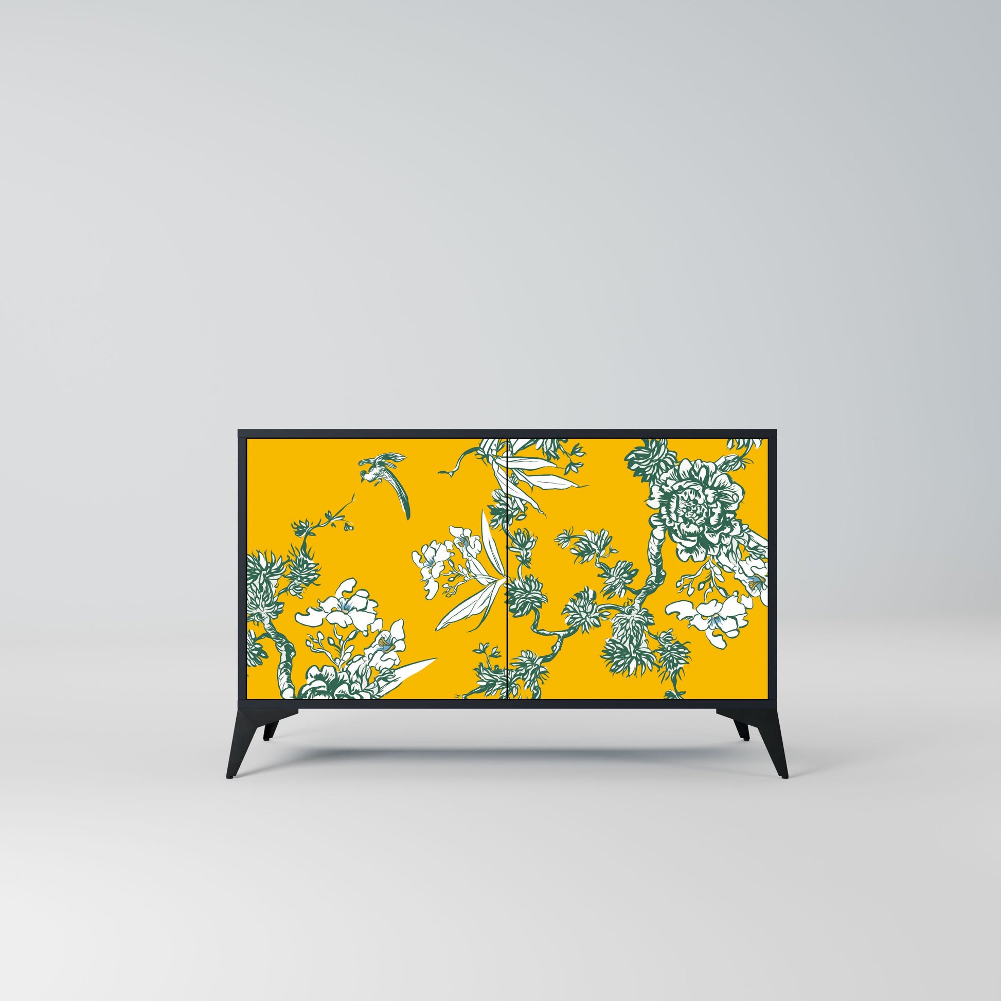 YELLOW CHINOISERIE 2-Door Sideboard in Black Finish