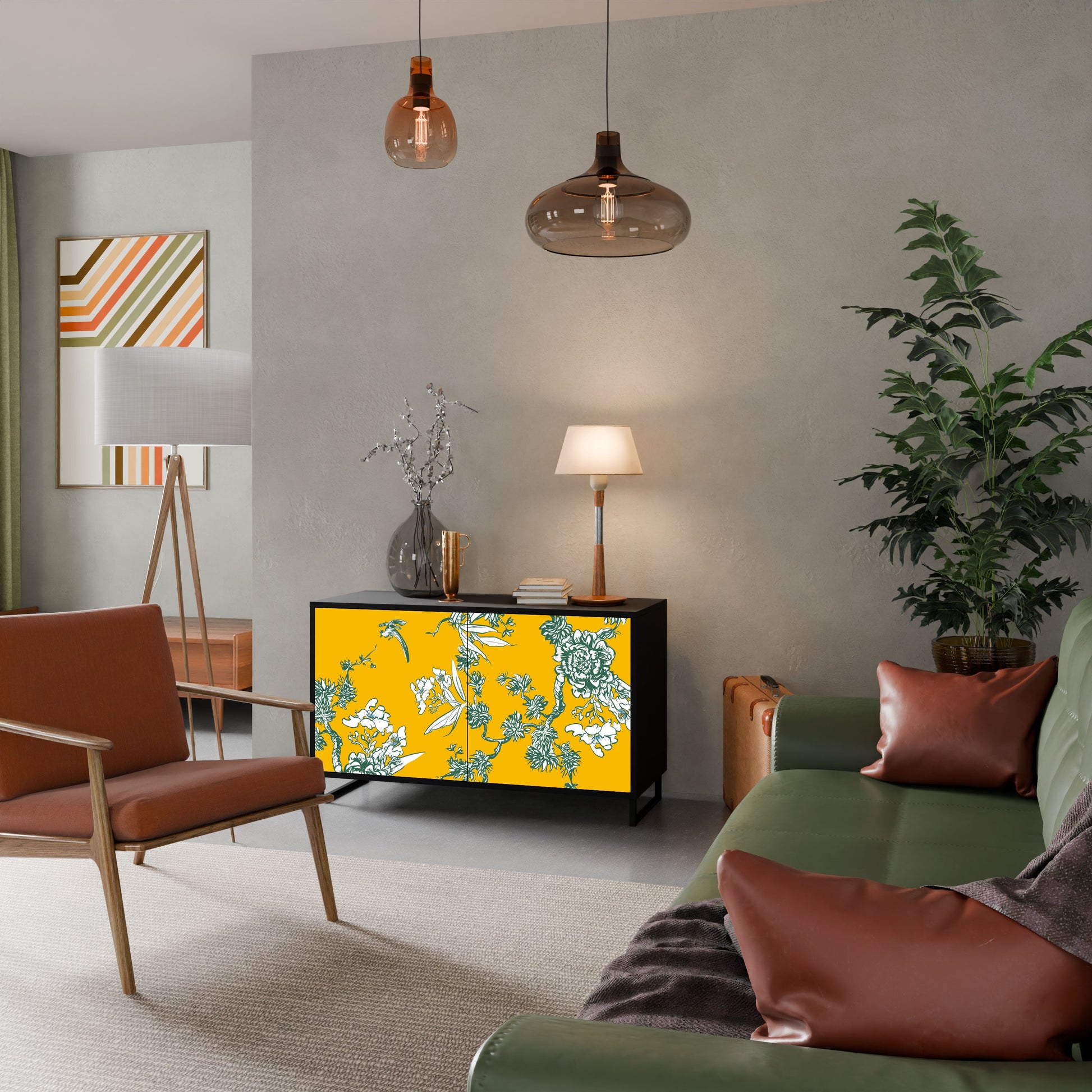 Elegance and functionality in a single piece of furniture – our 2-Door Sideboard with a black body is the perfect solution for lovers of stylish, modern interiors. The black body emphasizes the bold character of the furniture, while the fronts with a unique print add an artistic touch. It fits perfectly in the living room, bedroom, or office, complementing both modern and industrial arrangements.