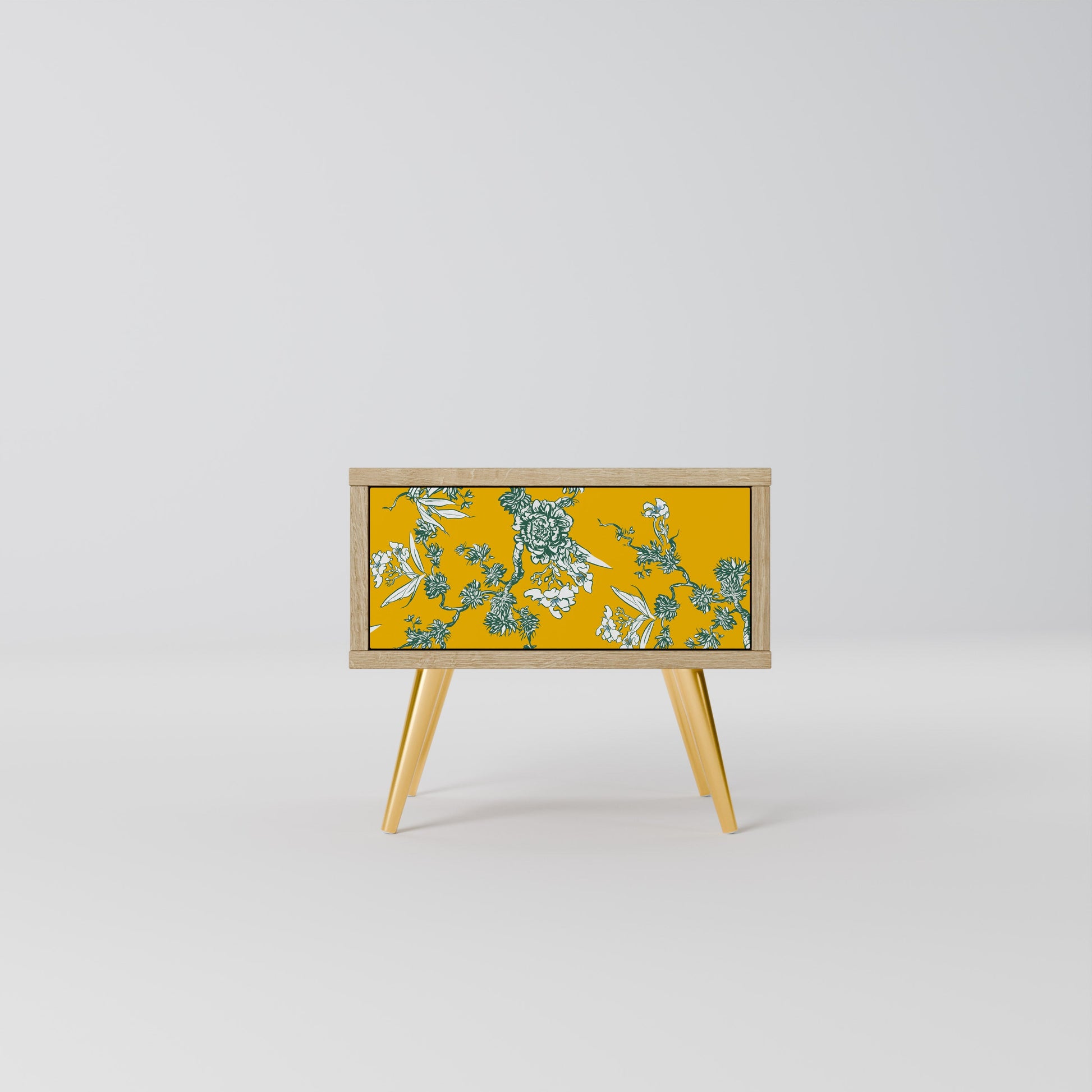 YELLOW CHINOISERIE Nightstand in Oak Effect