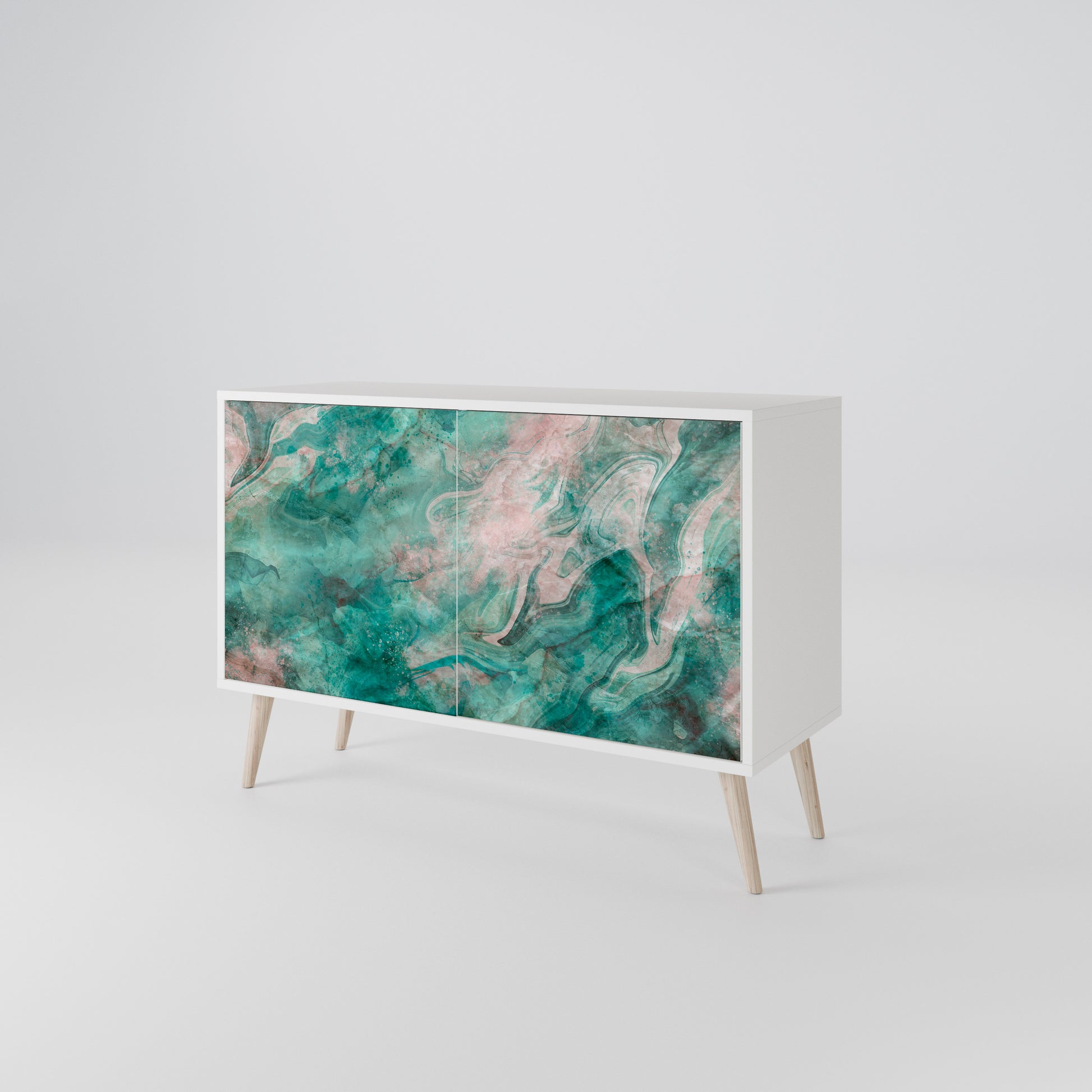 Eleganza e funzionalità in un unico mobile: la nostra madia a 2 ante con corpo bianco è la soluzione perfetta per gli amanti degli interni eleganti e moderni. Il corpo bianco sottolinea il carattere pulito e raffinato del mobile, mentre i frontali con una stampa unica aggiungono un tocco artistico. Si adatta perfettamente al soggiorno, alla camera da letto o all'ufficio, integrandosi con composizioni moderne e scandinave.