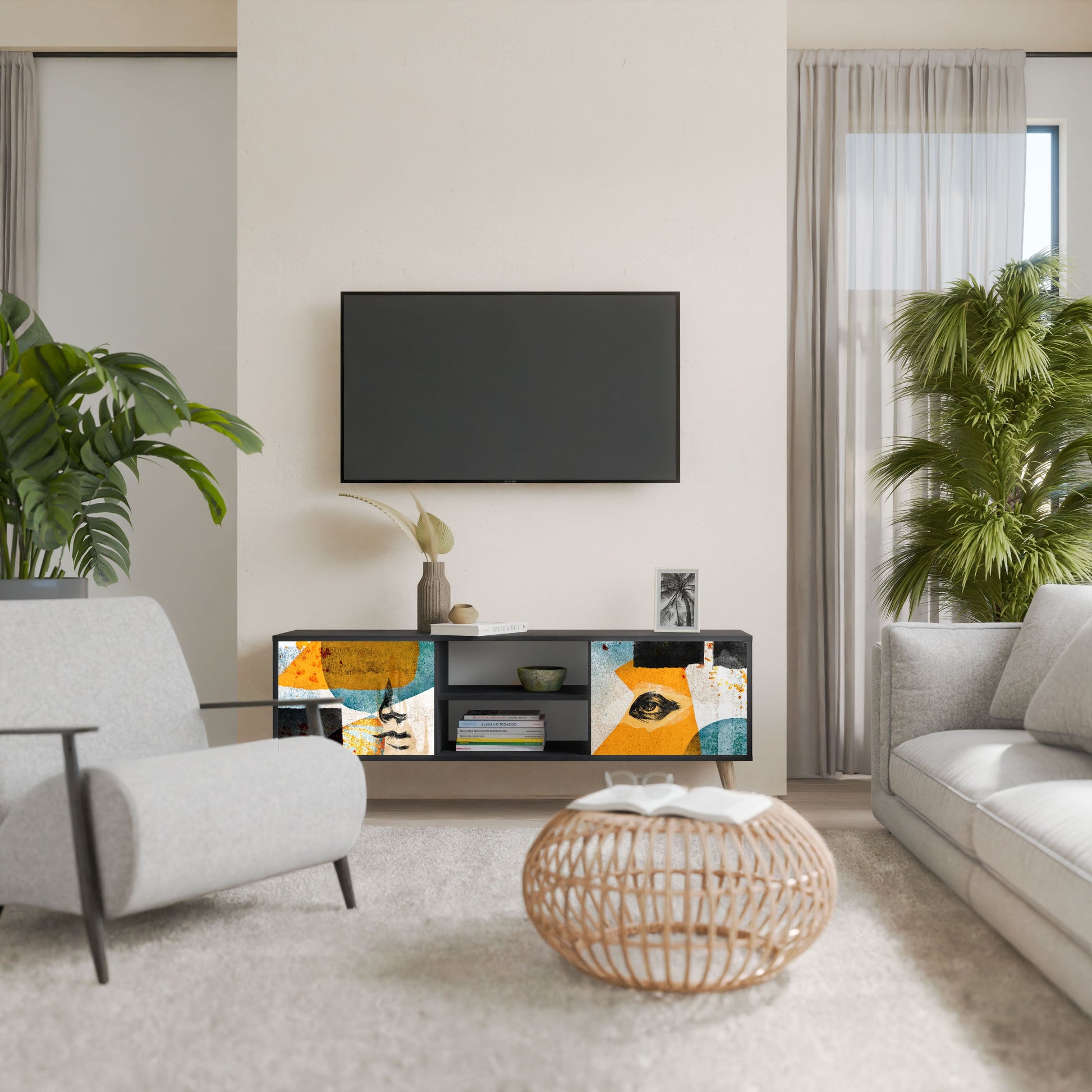 Mobile TV a 2 ante ABSTRACT FACES in finitura nera