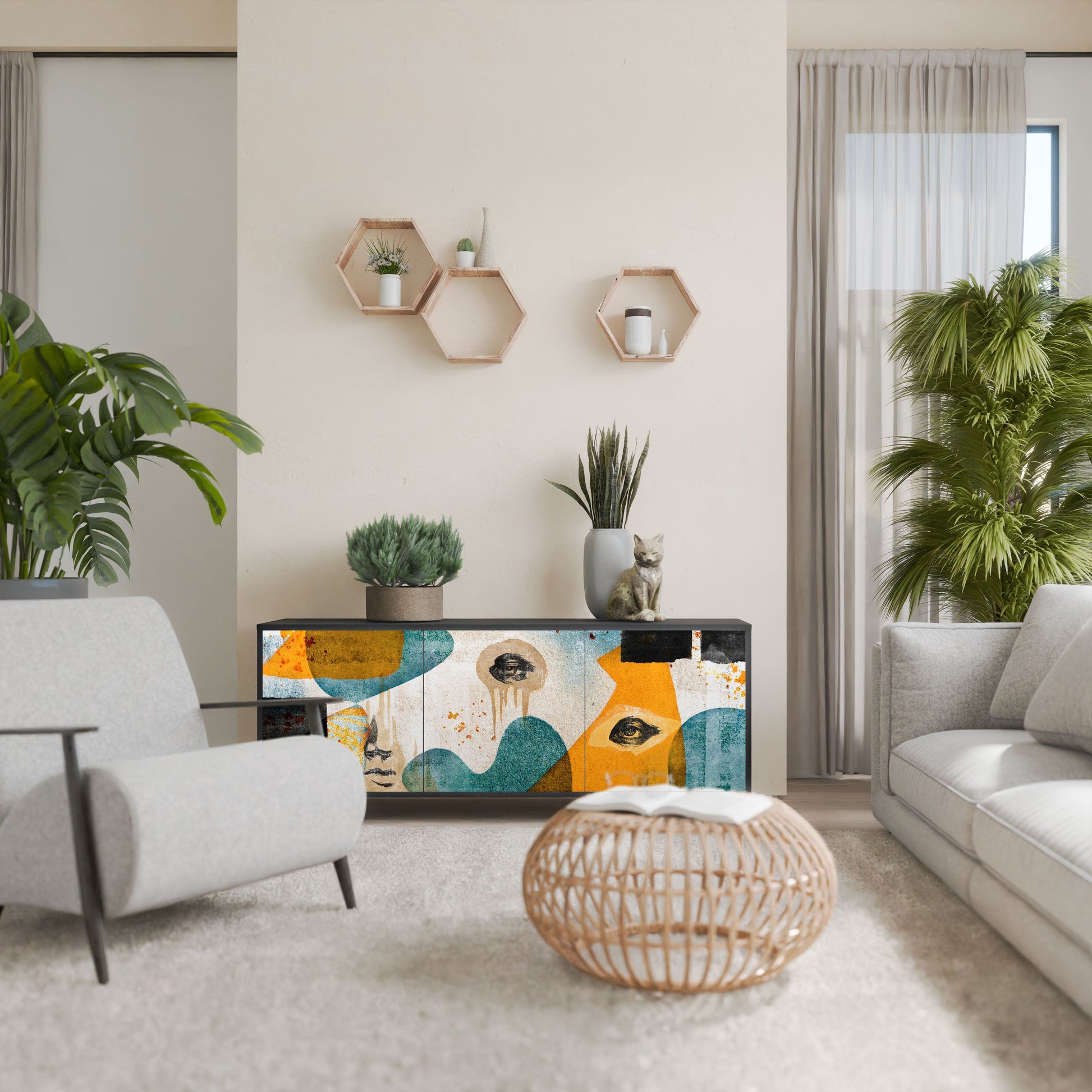 Credenza a 3 ante ABSTRACT FACES in finitura nera