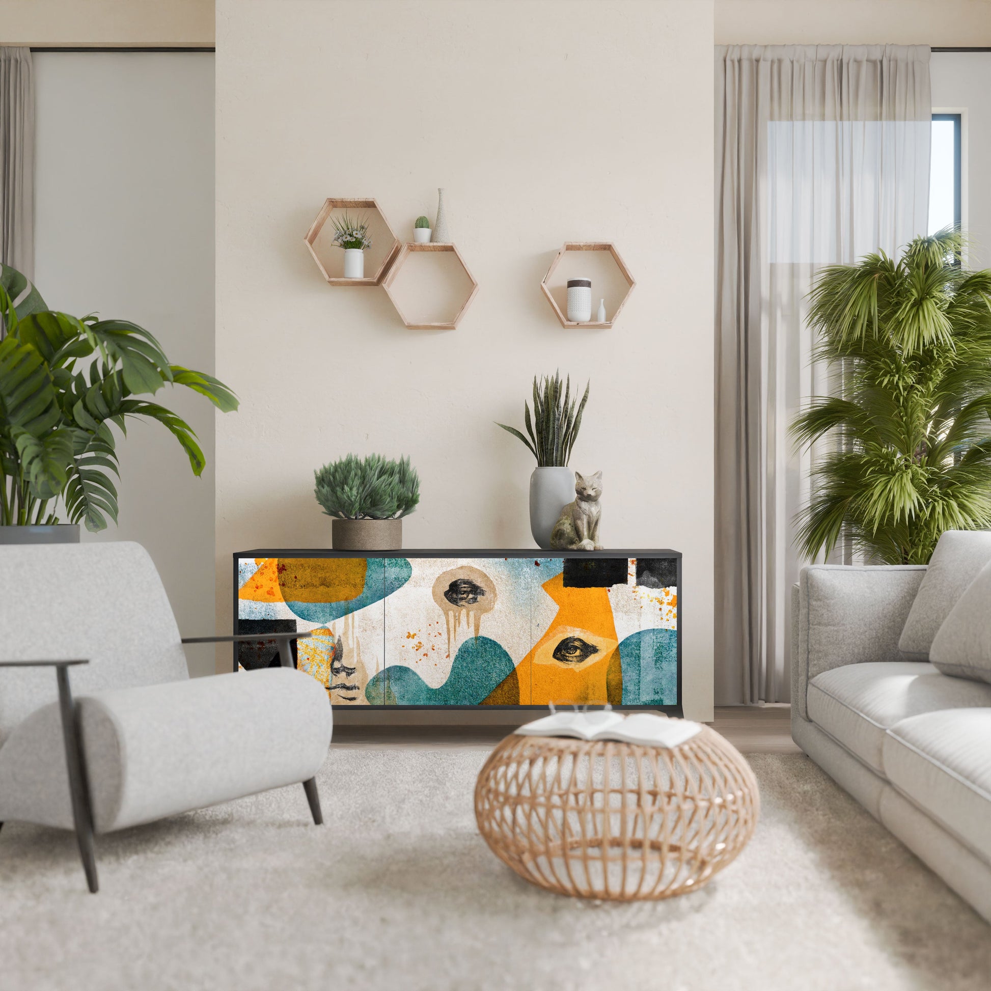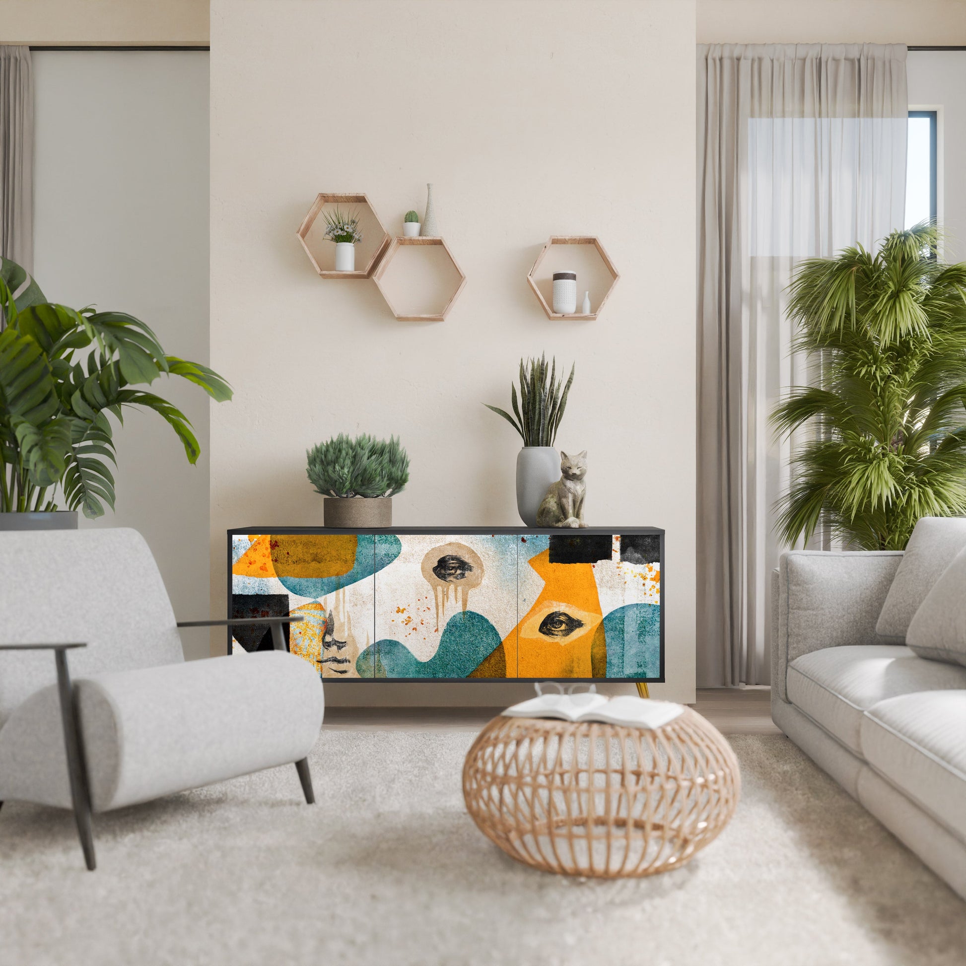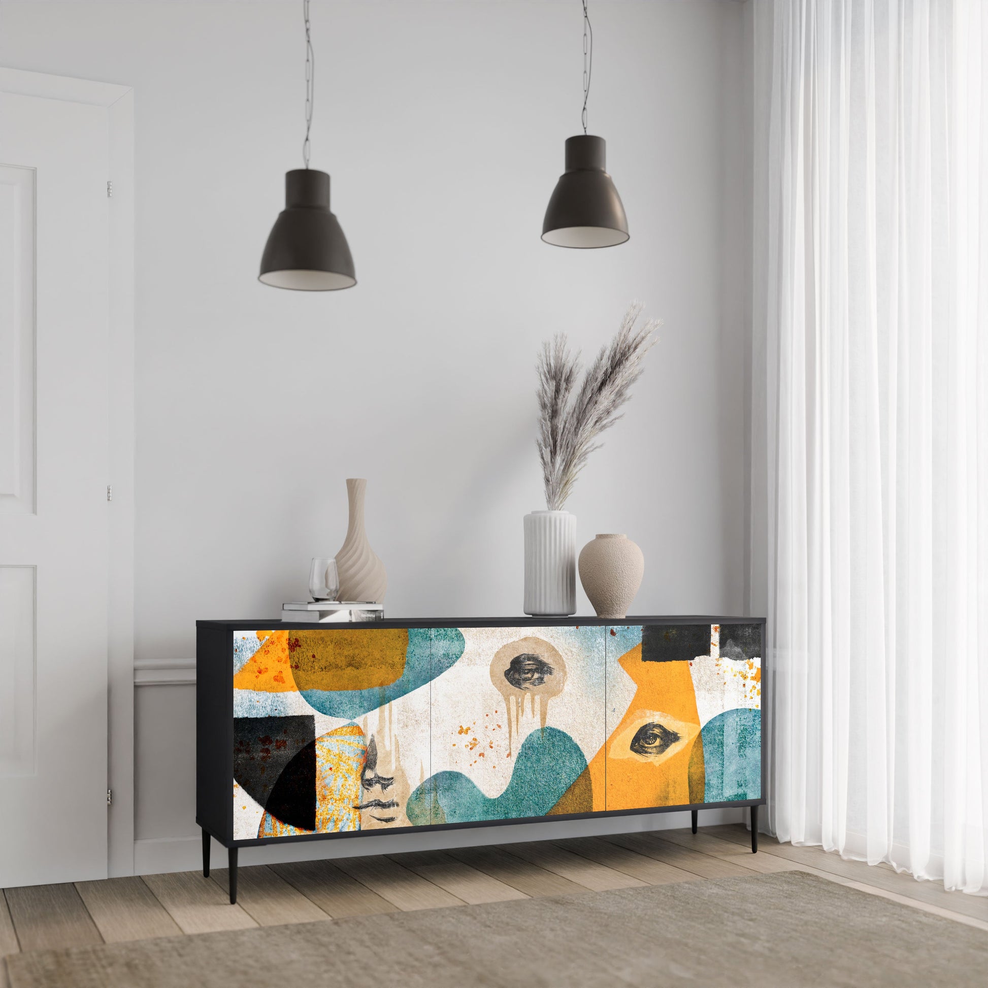 Eleganza e funzionalità in un unico mobile: la nostra credenza a 3 ante con corpo nero è la soluzione perfetta per gli amanti degli interni eleganti e moderni. Il corpo nero enfatizza il carattere audace del mobile, mentre i frontali con una stampa unica aggiungono un tocco artistico. Si adatta perfettamente al soggiorno, alla camera da letto o all'ufficio, completando sia gli arrangiamenti moderni che quelli industriali.